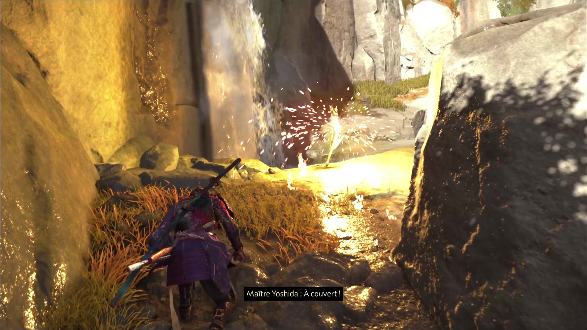 Collez-vous au mur pour permettre à Yoshida de monter, il vous hissera ensuite. Immédiatement après, un artilleur vous prendra pour cible avec son bō-hiya.