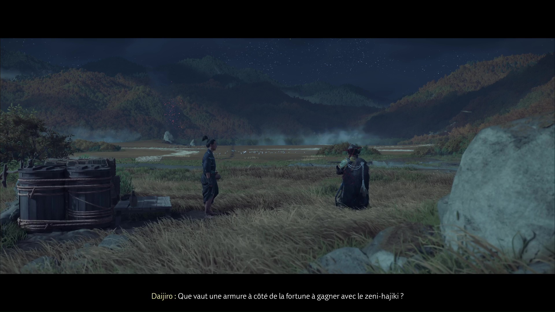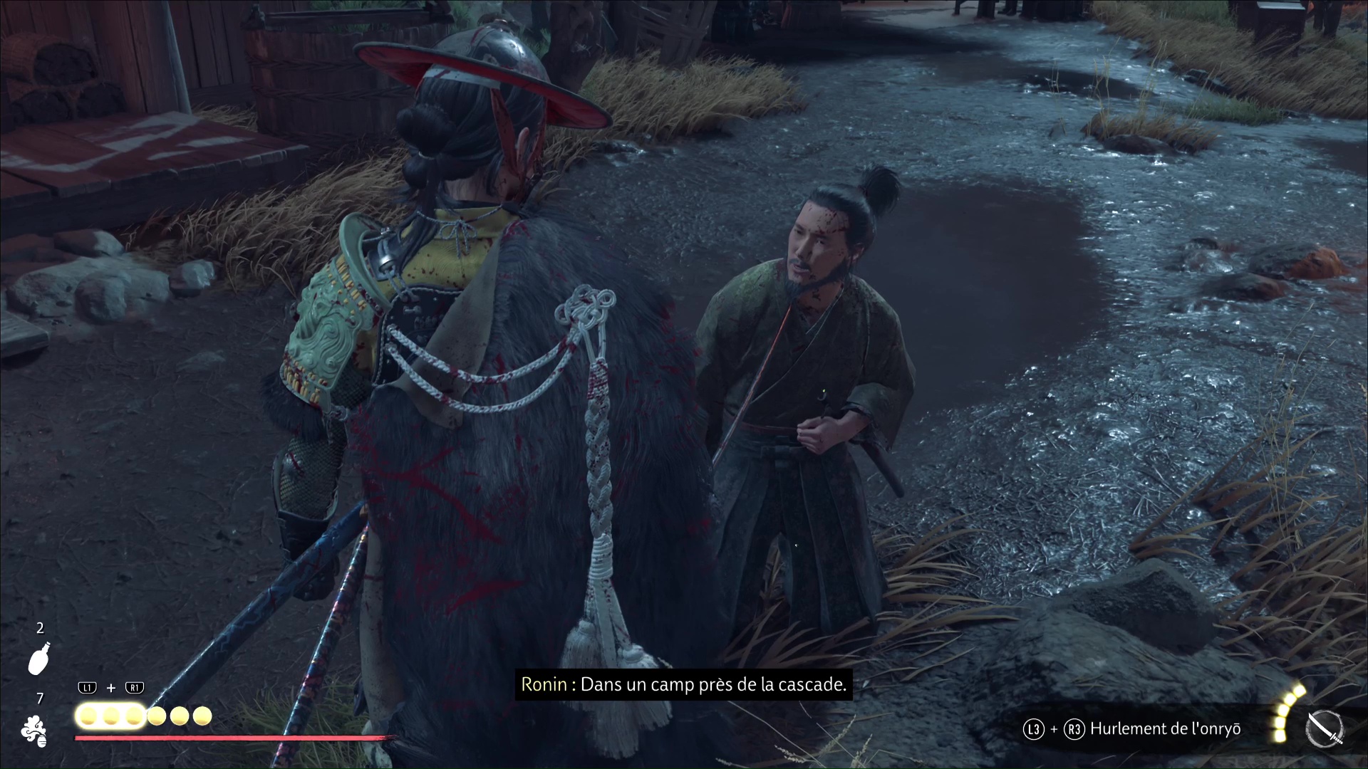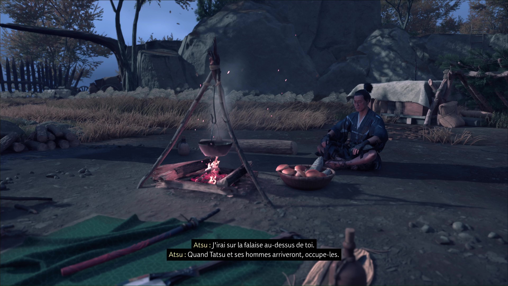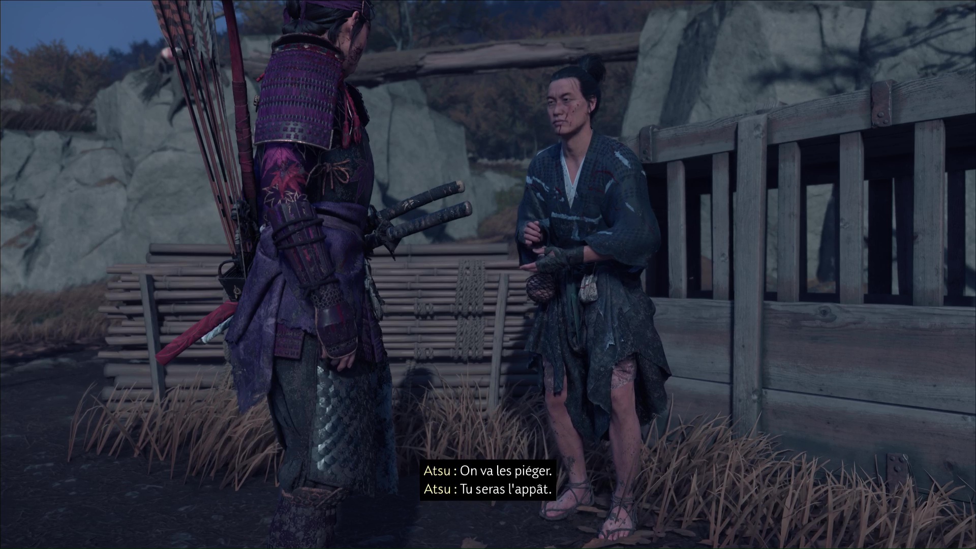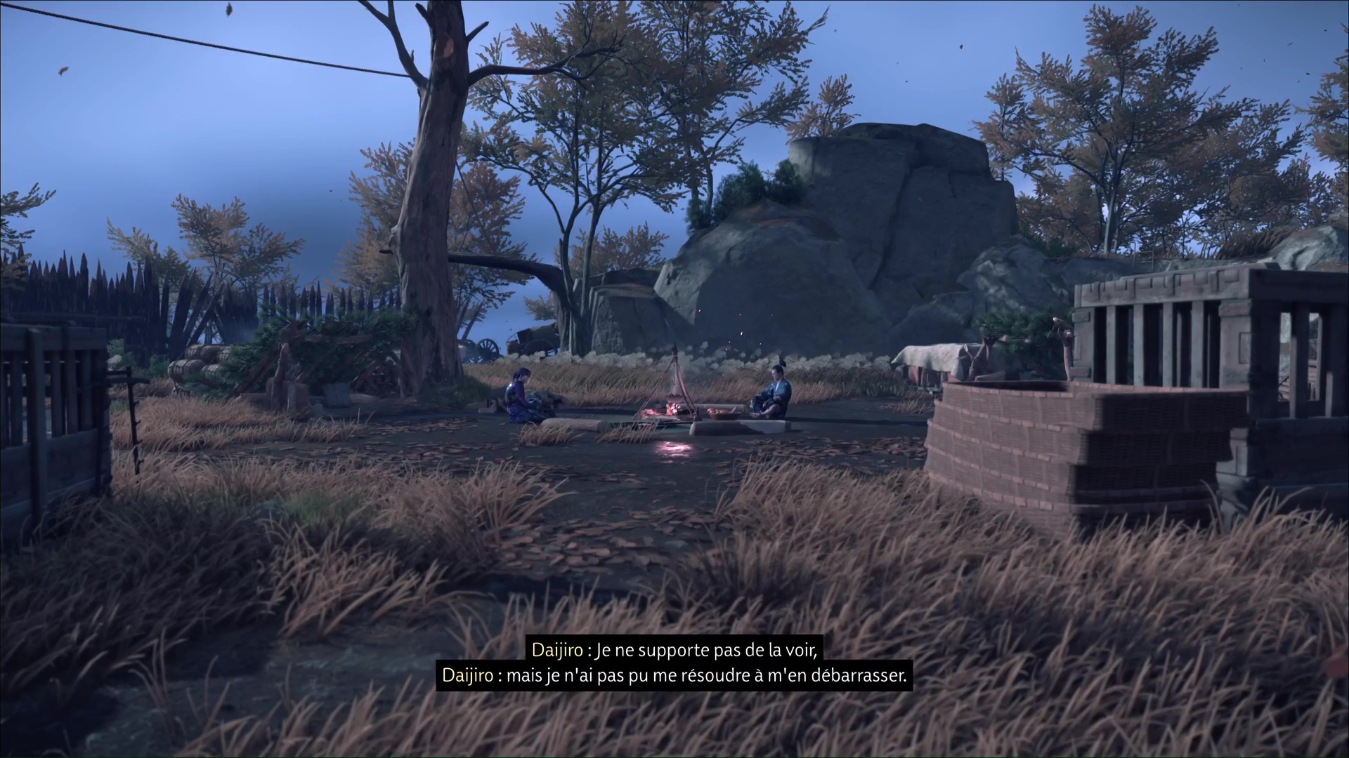 Se lance ensuite une Confrontation alors que le bougre se fait enlever. Réussissez-la puis tuer les autres ronin. Atsu se saisira du dernier survivant pour demander où a été emmené Daijiro. C’est dans un camp près de la cascade que vous allez vous rendre.