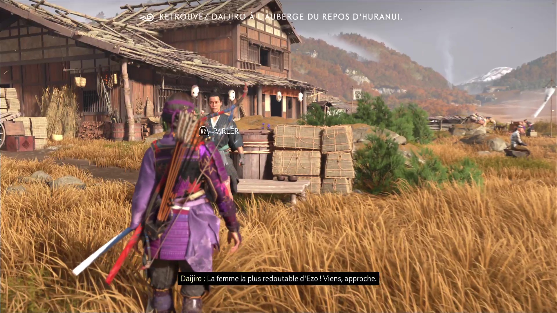 Allez ensuite voir comment va Daijiro. Ce dernier vous promet que, cette fois, c’est la bonne : l’armure vous attend à l’Auberge du Repos d’Huranui.