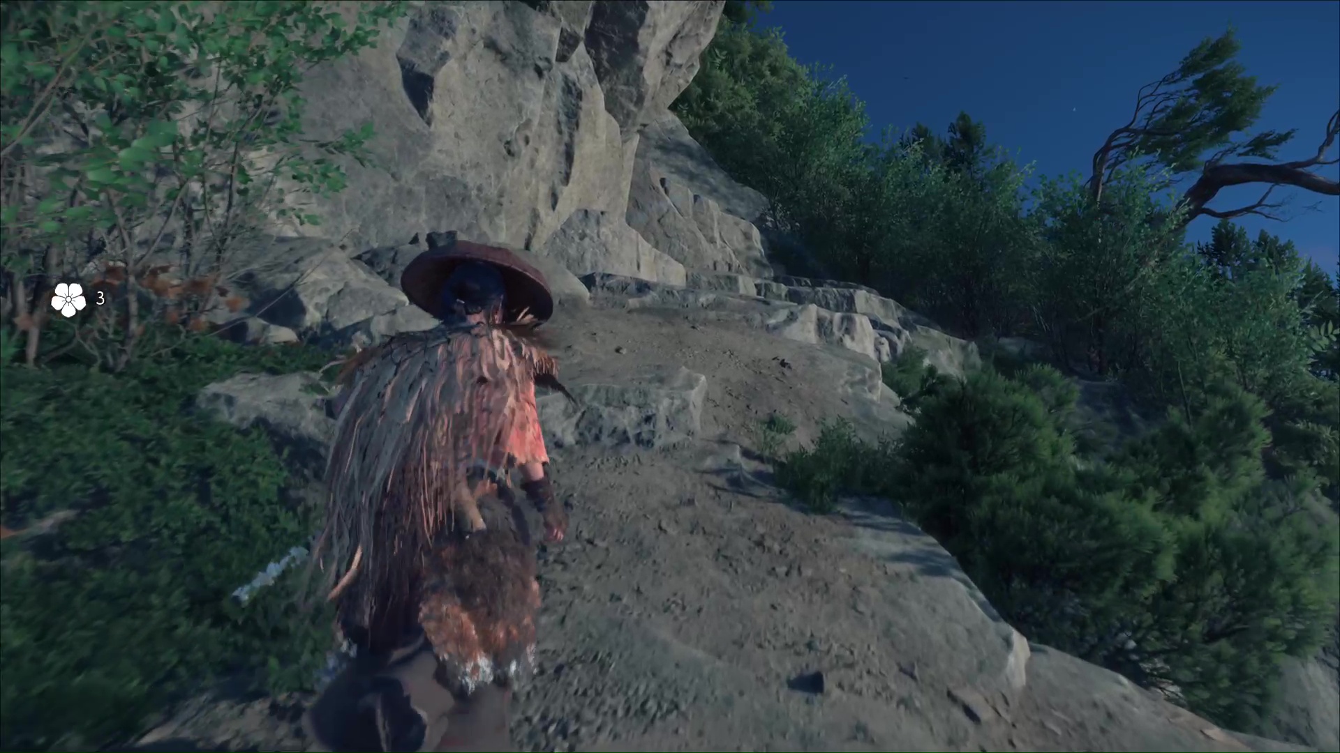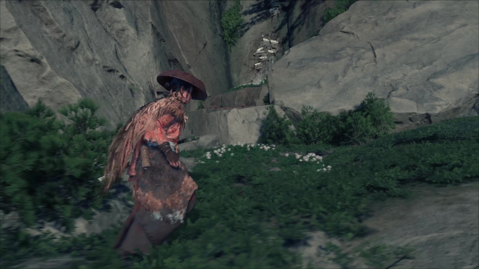 Continuez jusqu’à un nouveau piège, que l’on peut reconnaître avec le tas de feuilles mortes par-dessus. Quelques mètres plus loin, et après un saut, Atsu remarquera la maison d’Hanbei. Grimpez des prises rocheuses un peu plus loin et traversez un petit pont de bambous. D’autres prises d’escalade vous attendent ensuite sur votre gauche.