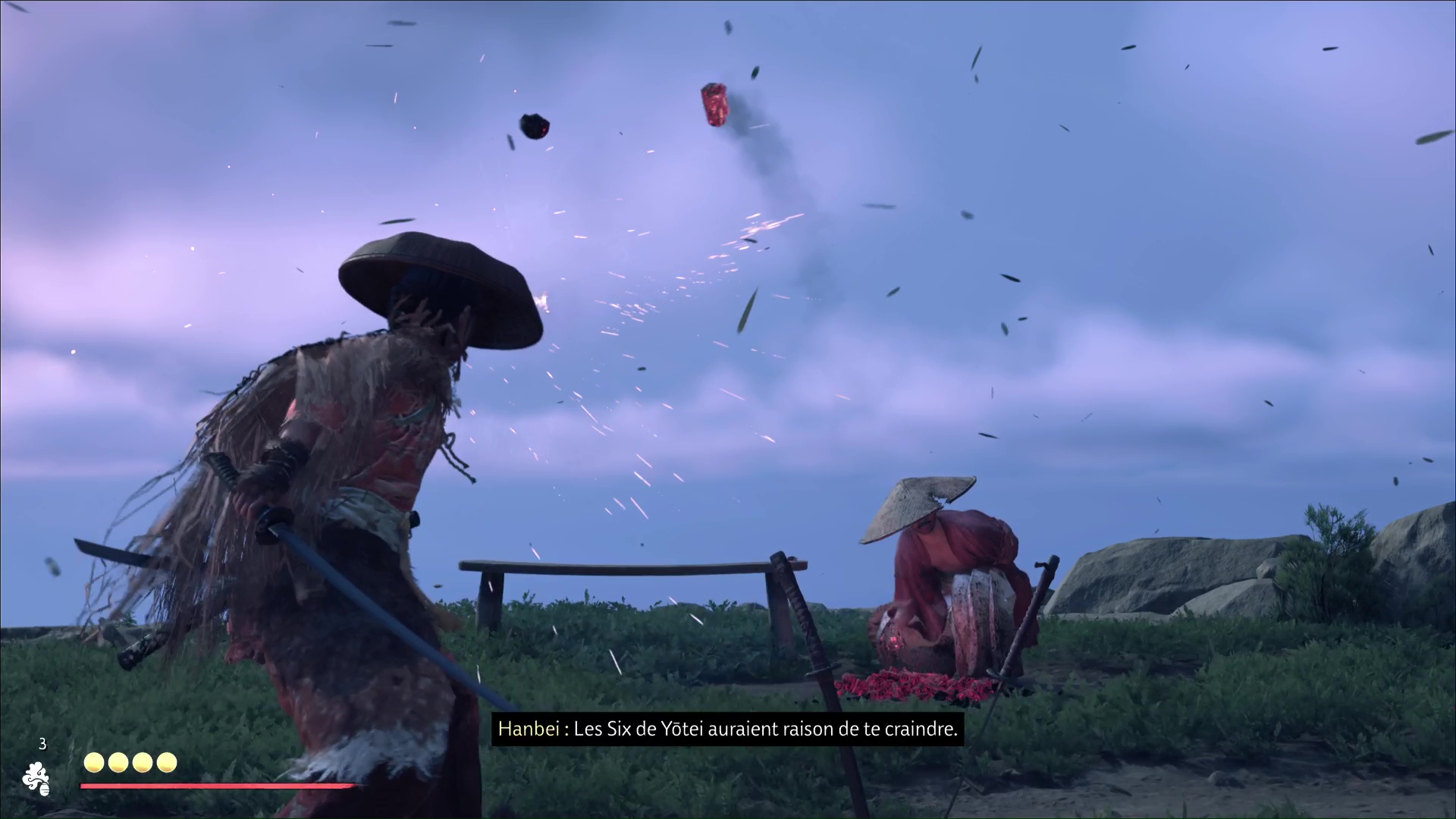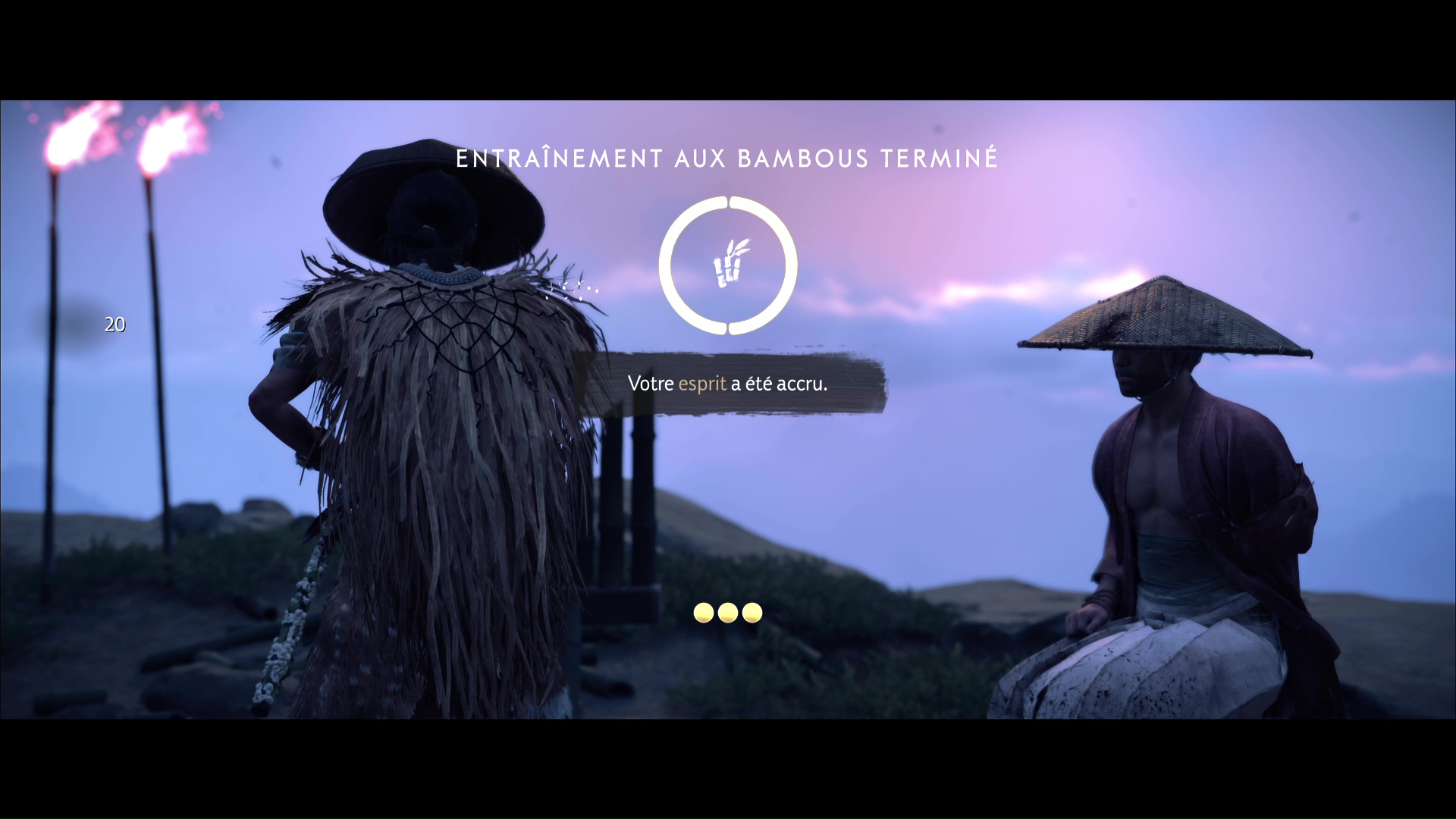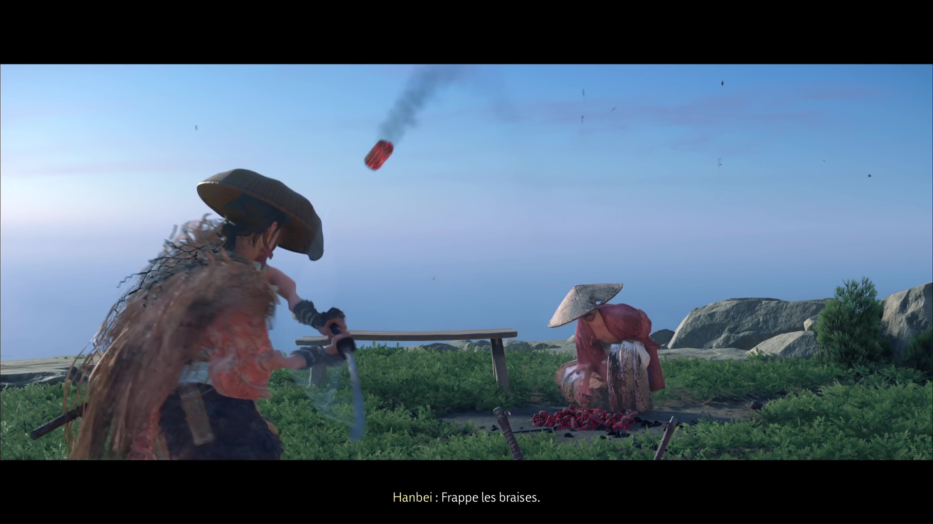 Comme premier test, Hanbei vous demandera de frapper des braises en plein vol, faites ce que vous pouvez, mais de manière scriptée, vous aurez du mal. L’entraînement reprendra le lendemain.