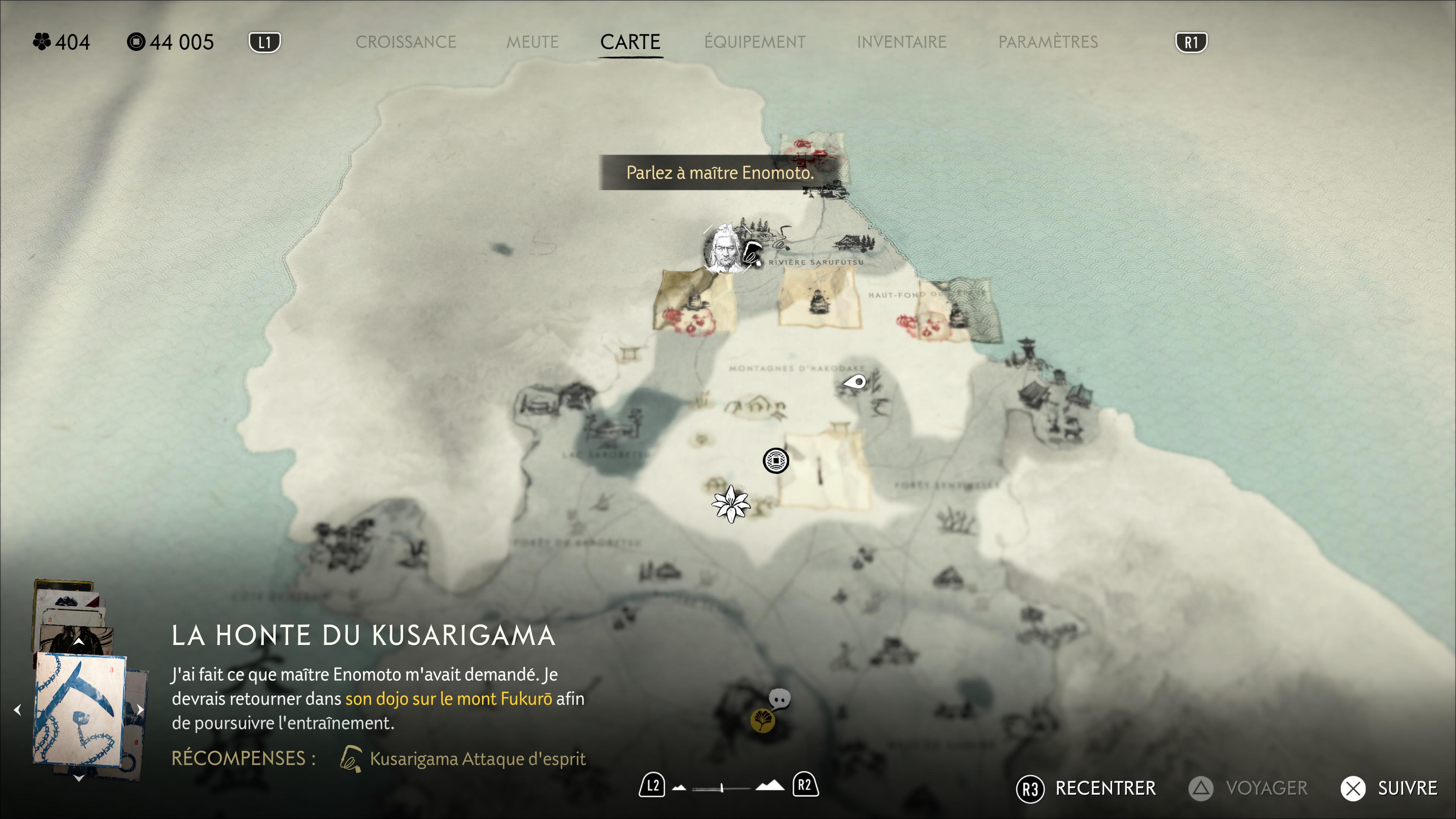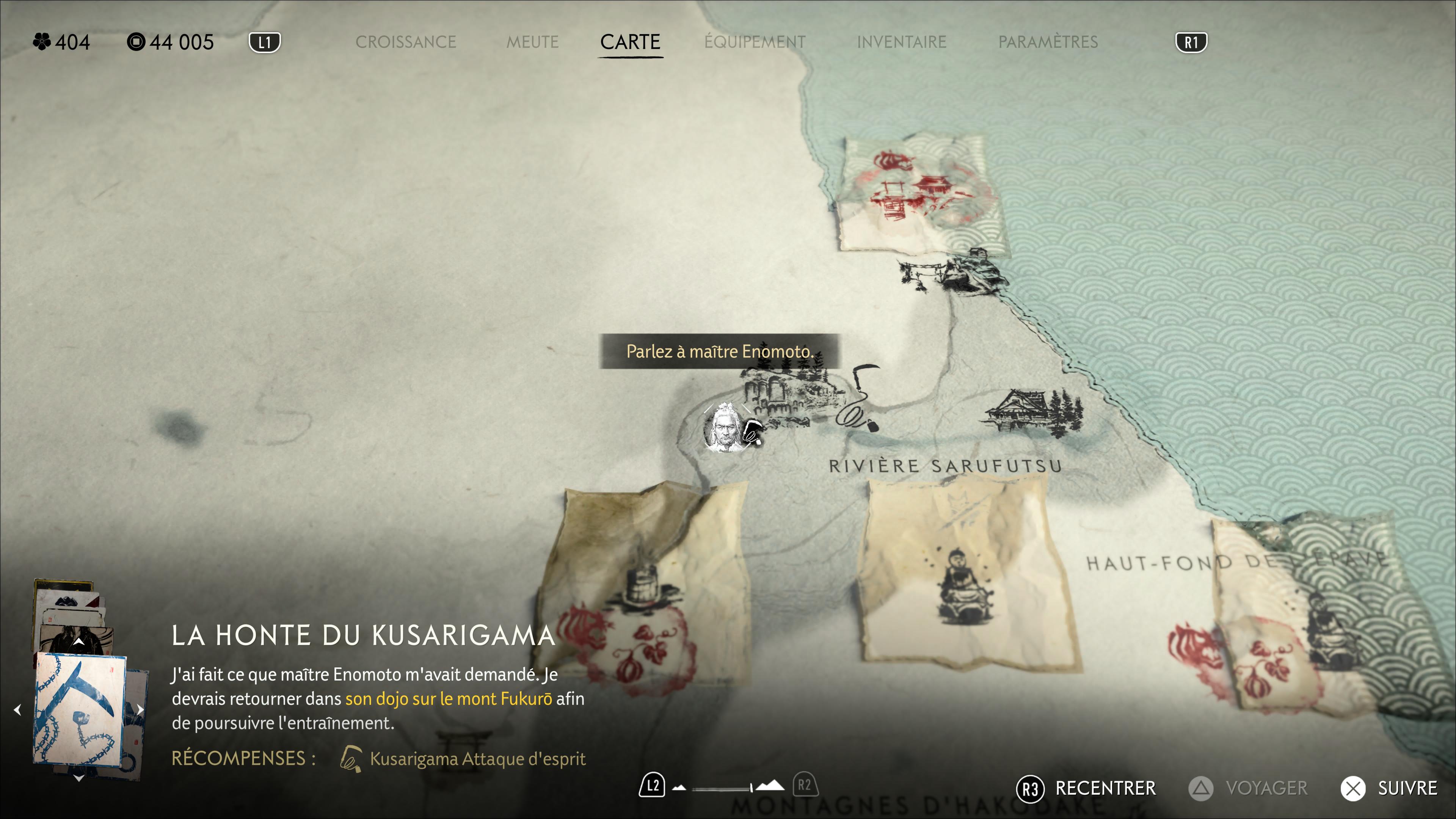 Aux côtés de ces deux gros objectifs, pensez à dépenser au moins un point dans l’arbre de compétences du kusarigama. Profitez des autels de réflexion que vous croiserez forcément au Port de Soya et/ou au Repaire des sources des congères. Sinon, référez-vous à notre guide des autels.