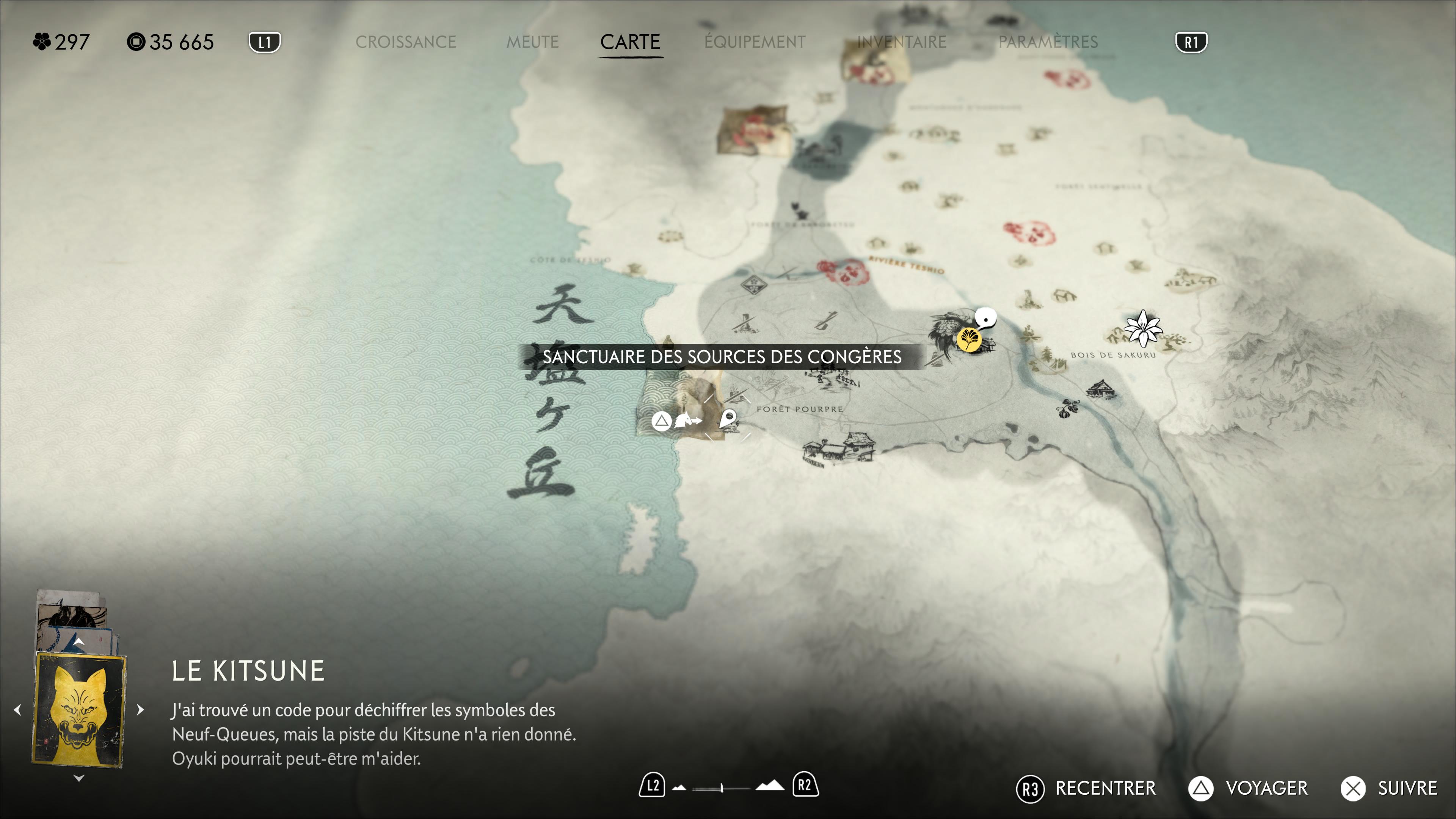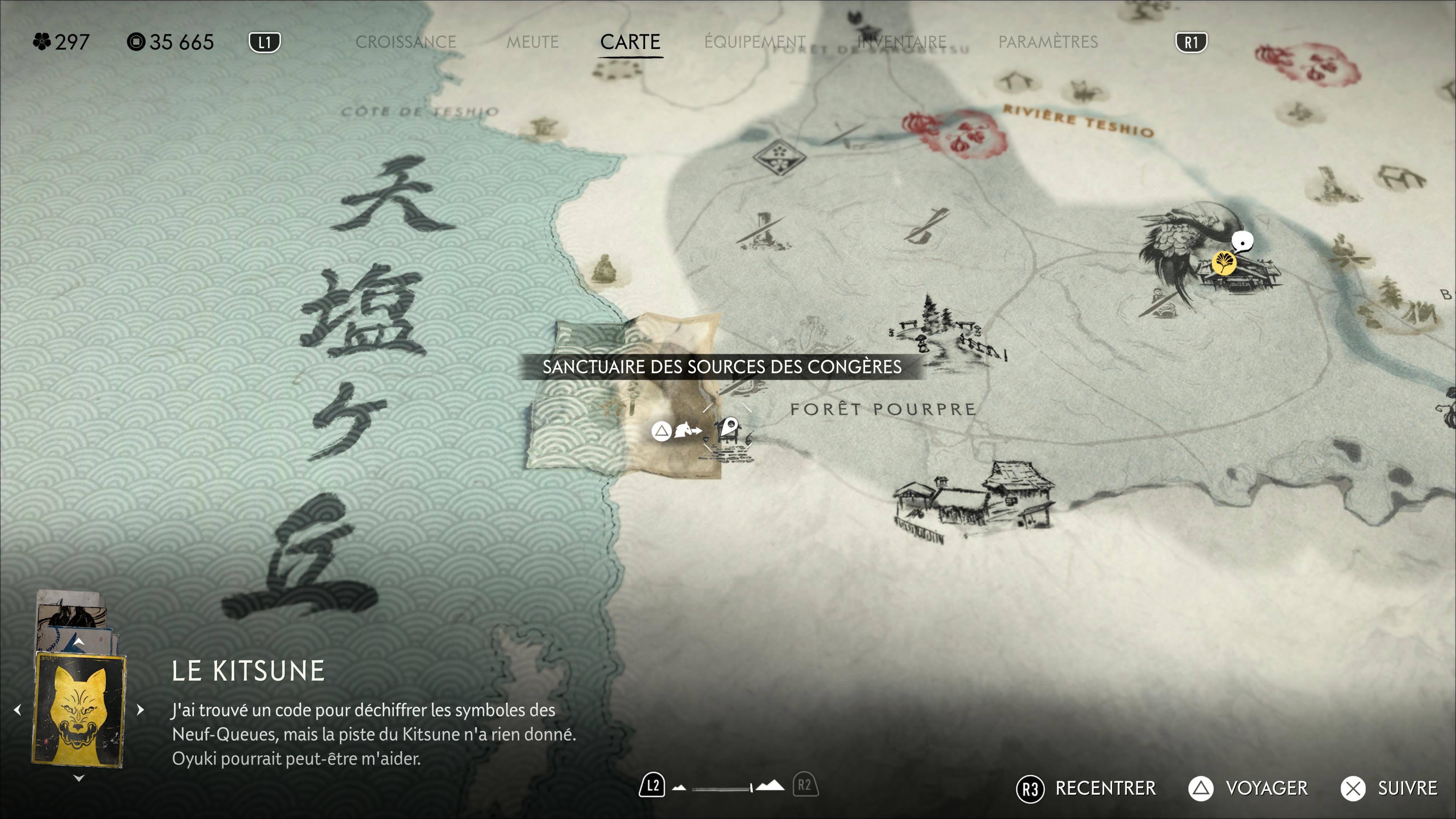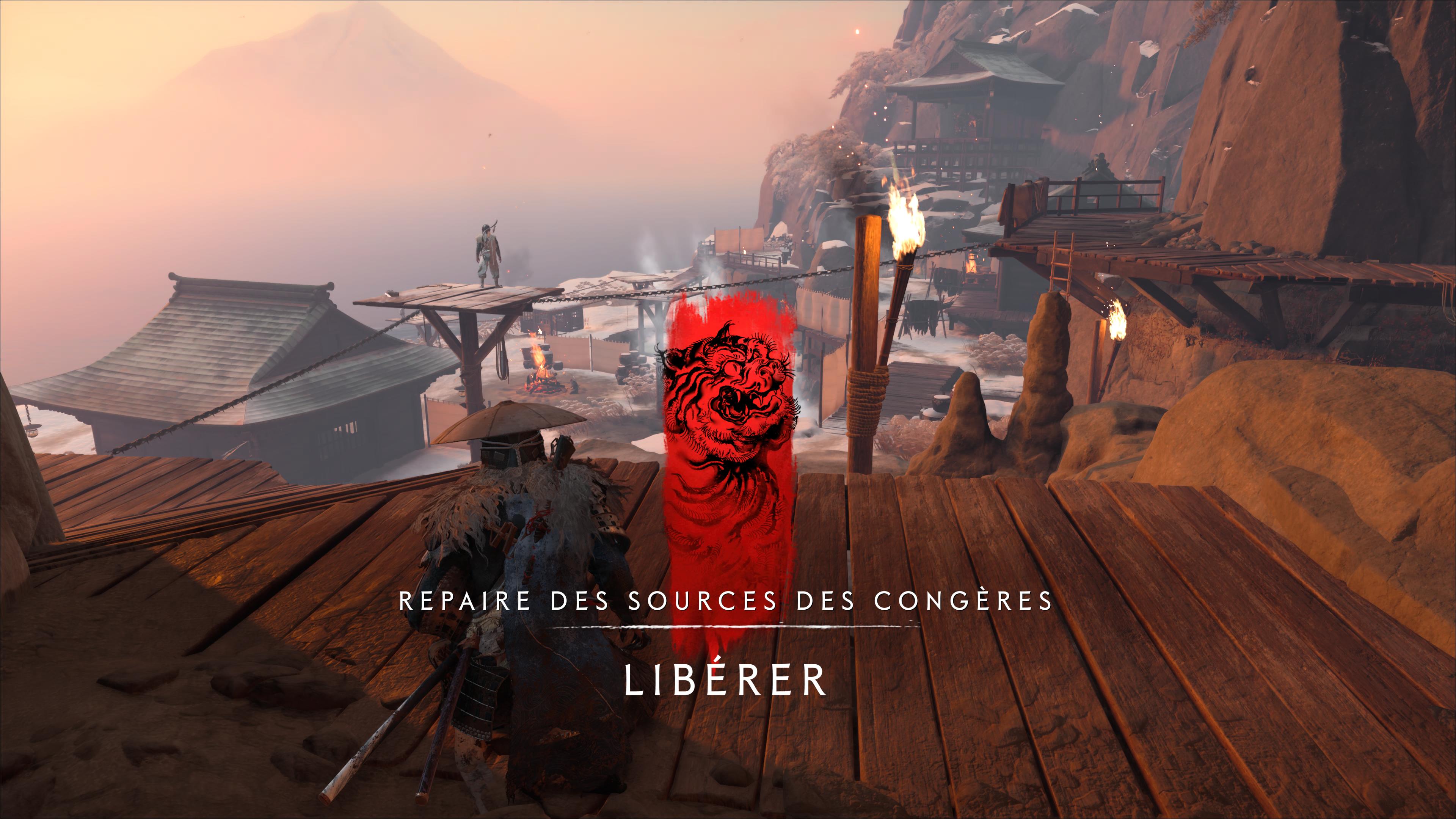 Le premier lieu à nettoyer est le Repaire des sources des congères, au sud-ouest de la Crête de Teshio. Il faudra d’abord passer par le Sanctuaire des sources des congères. Un cheminement que l’on vous détaille dans notre guide sur les camps des Six de Yōtei.