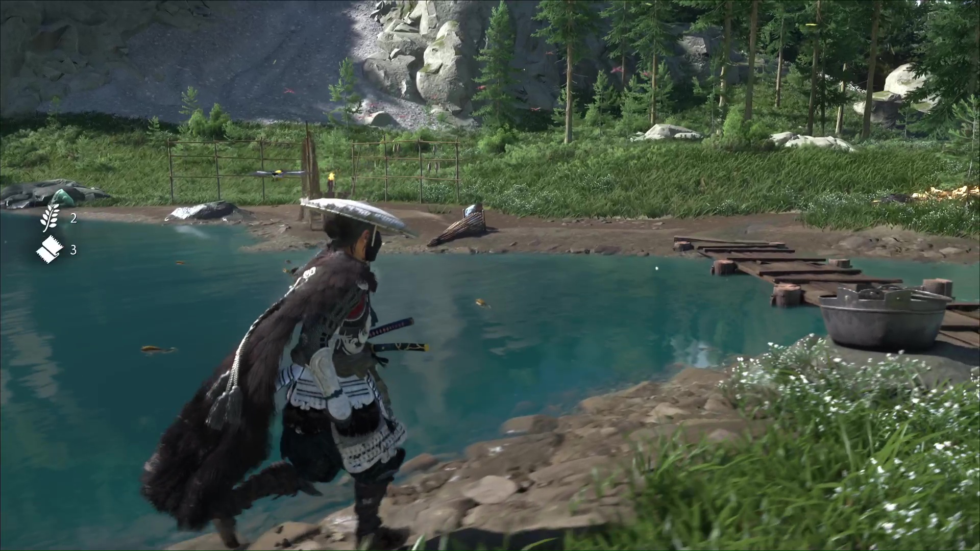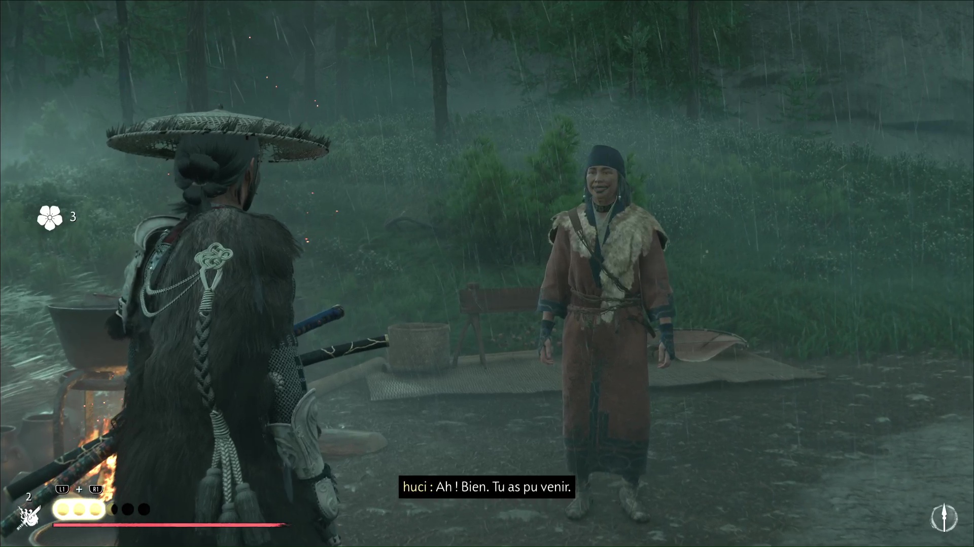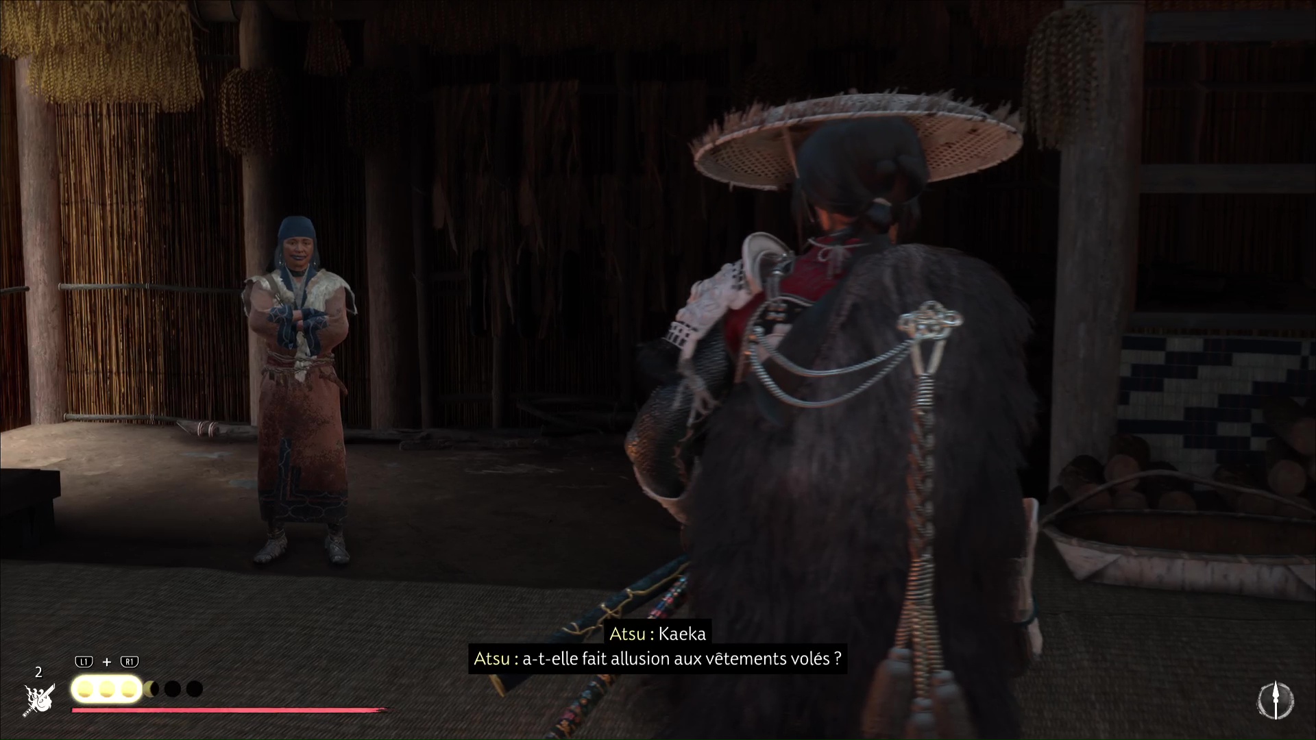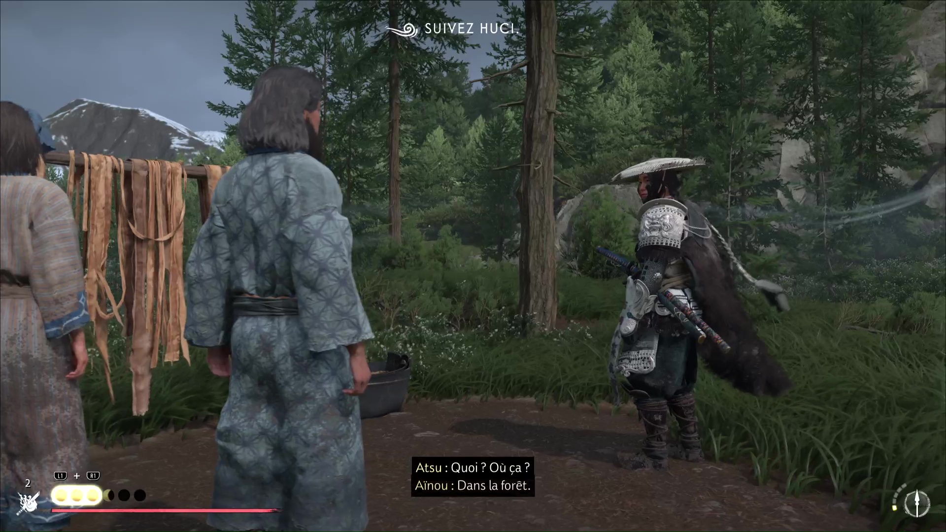 Vous arriverez ensuite à une maison dans la zone du Bois de l’Iwor. Atsu va aller interroger le mari de kaeka. Vous le trouverez de l’autre côté du pont en bois.