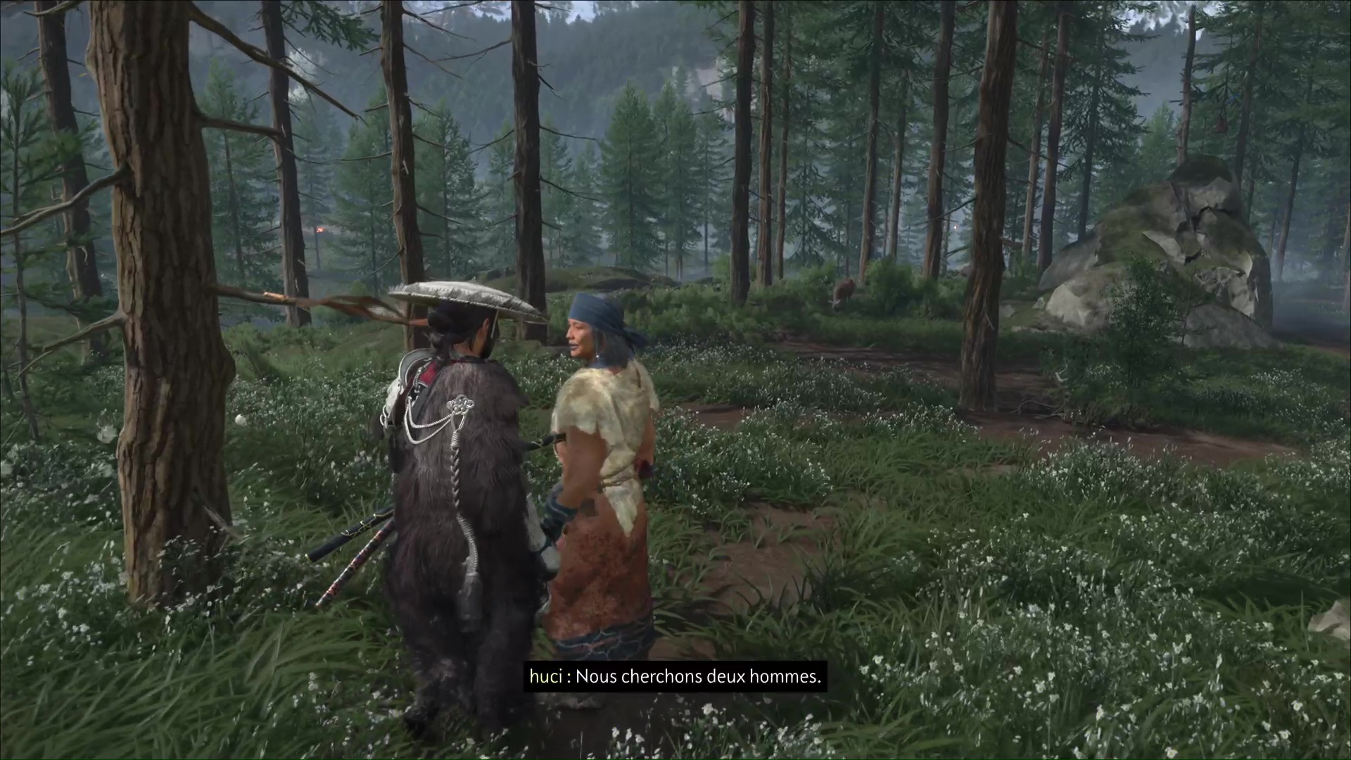 Ce récit peut se lancer dès vos premiers pas dans les Terres sauvages de Nayoro. Rappelons que vous y accédez en vous adressant à huci tout au nord des Monts Tokachi, au Bac central. C’est grâce à elle, d’ailleurs, que vous avez pu traverser.