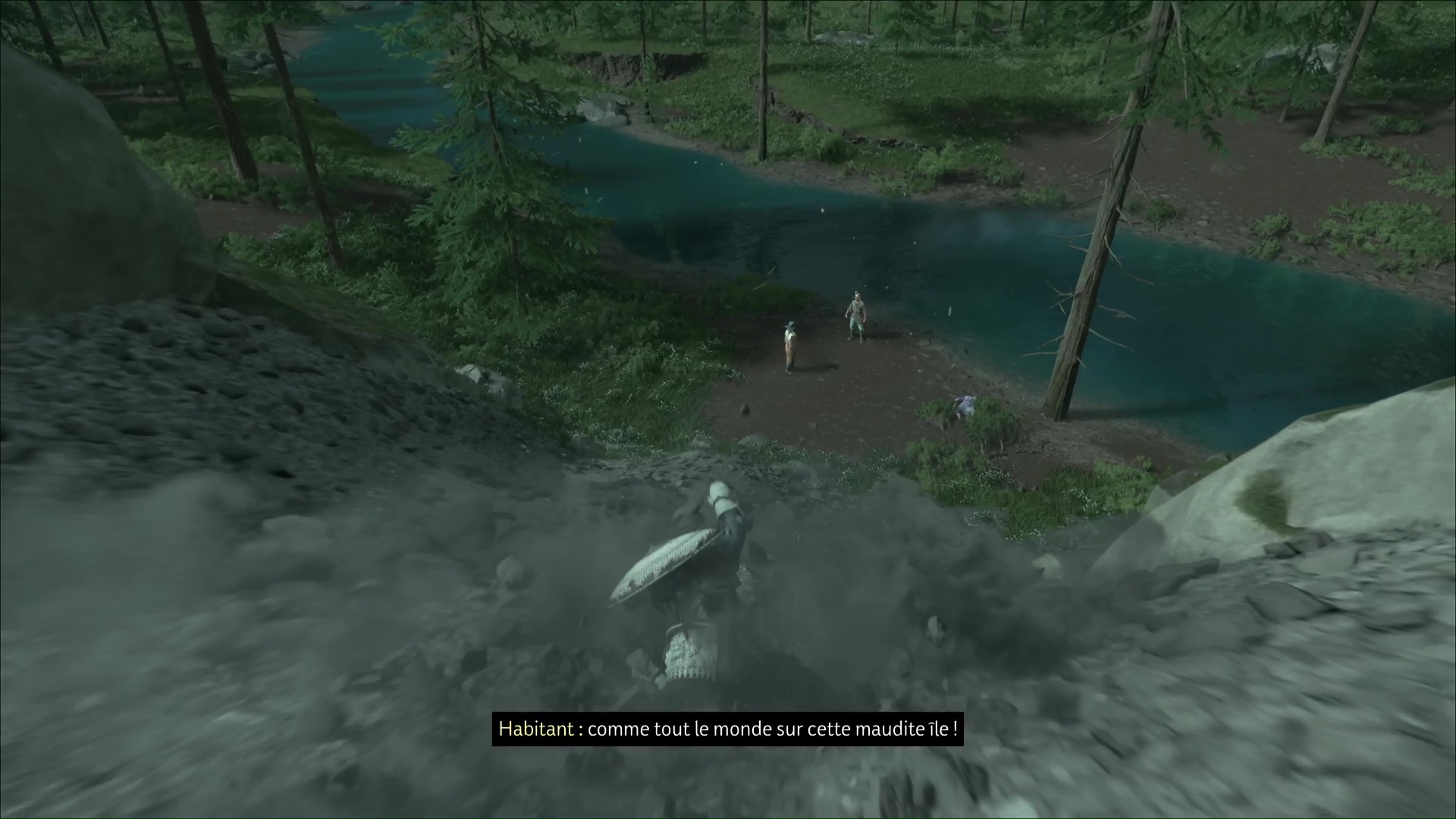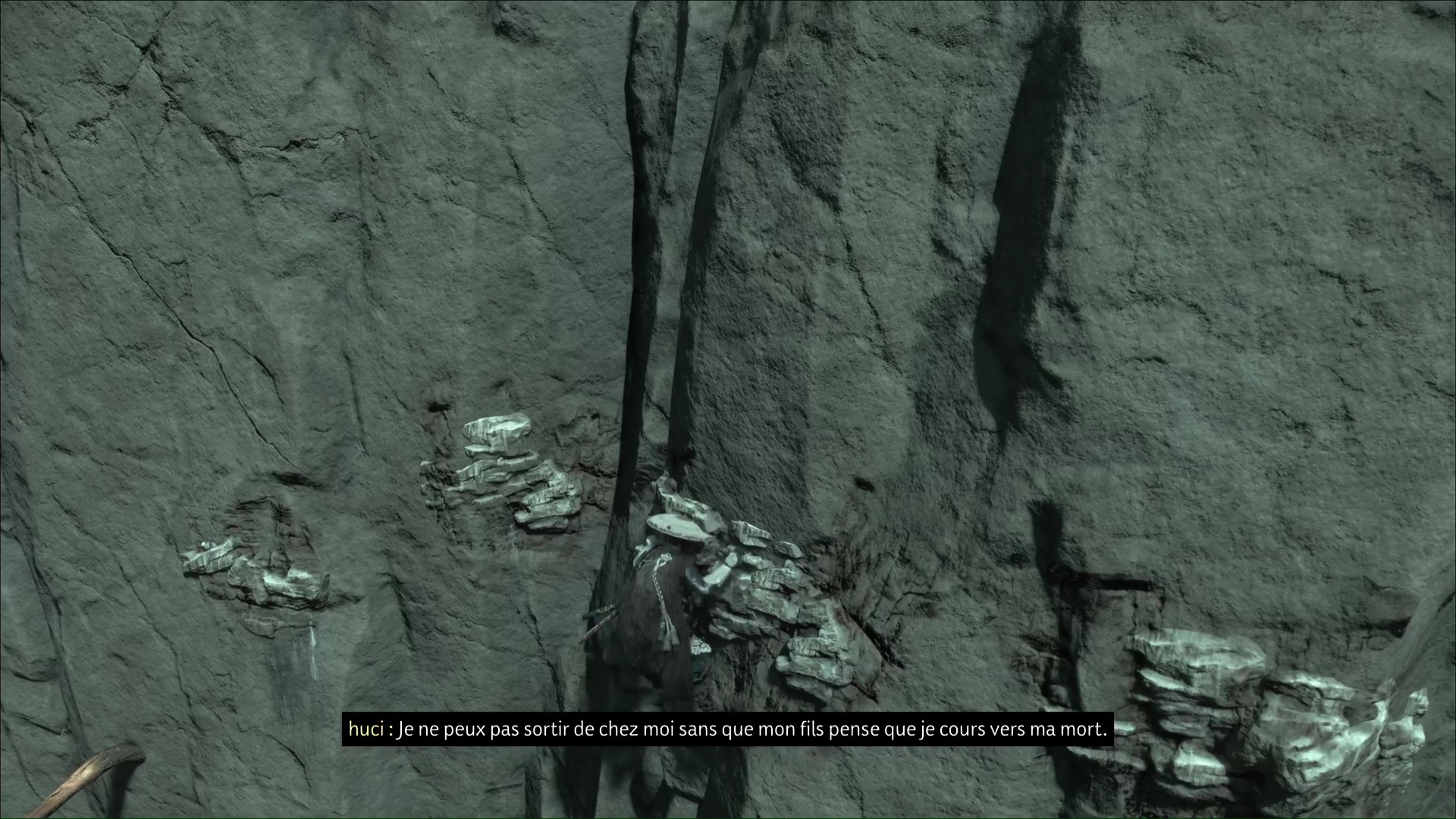 Descendez la pente, une cinématique se lance et vous voyez un homme apeuré. huci a deviné que lui et sa femme attendaient un enfant, et ses paroles finissent par l’apaiser.