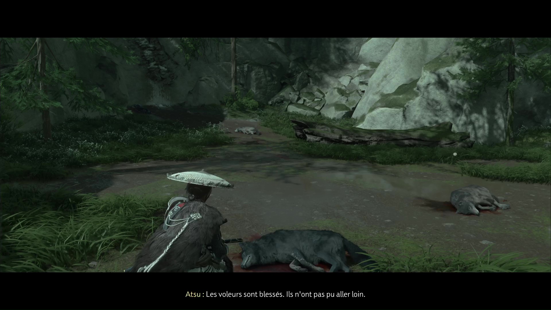 Atsu tombe sur des cadavres de loups, tandis que huci semble avoir repéré les voleurs. Partez donc immédiatement la rejoindre en grimpant sur une paroi rocheuse. Suivez les traces de sang jusqu’à une pente glissante.