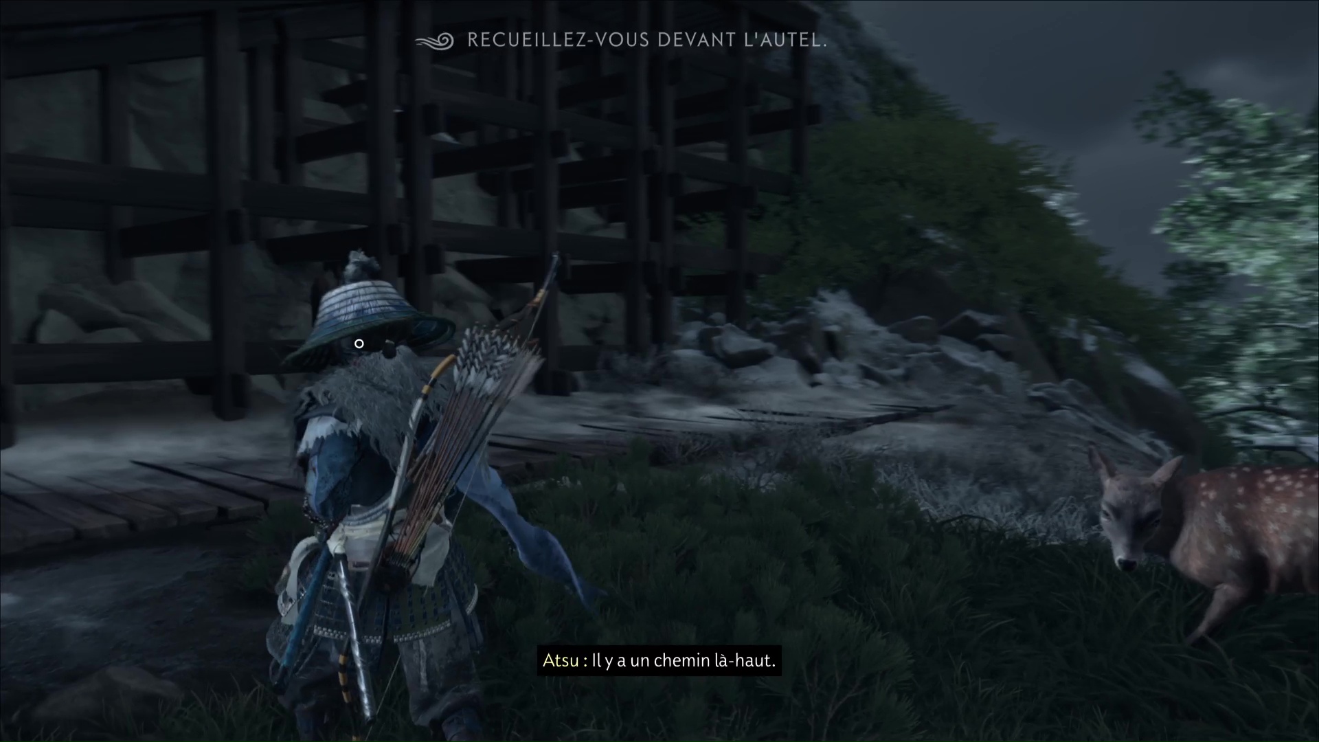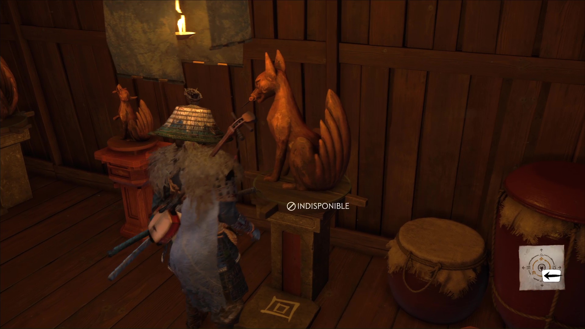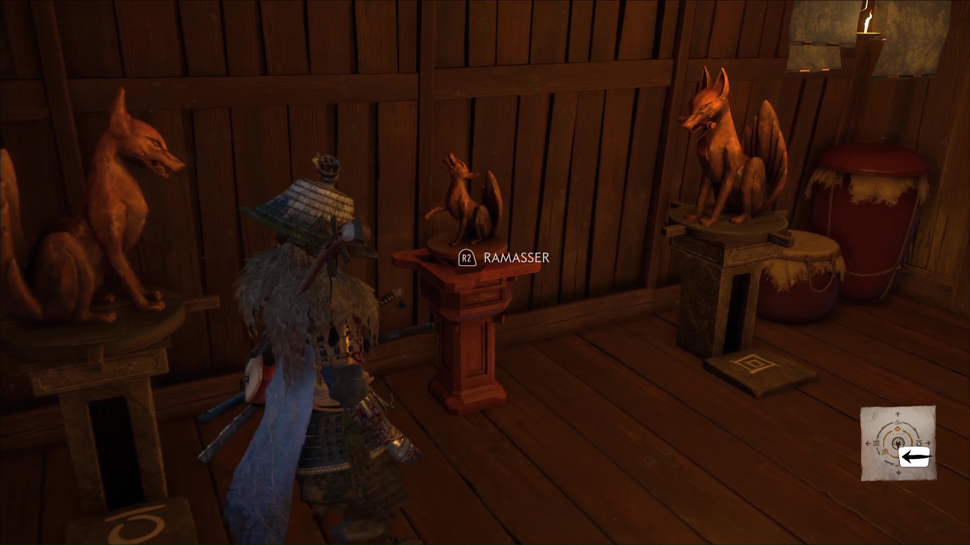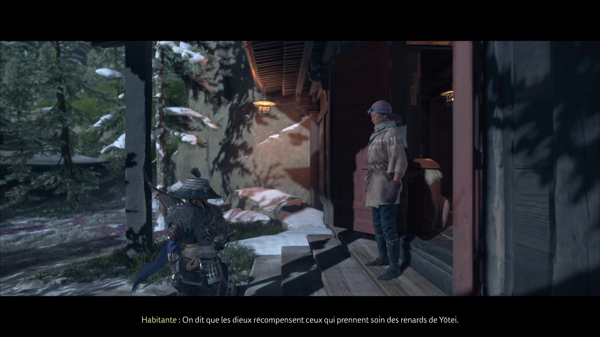 L’habitante vous demande ensuite de prendre soin des renards, qui viendront trouver refuge ici. D’ailleurs, lorsque vous aurez complété tous les terriers de renards, vous débloquerez un masque en vous adressant à la gardienne de ces lieux. Terminez le récit en quittant le bâtiment par la droite.