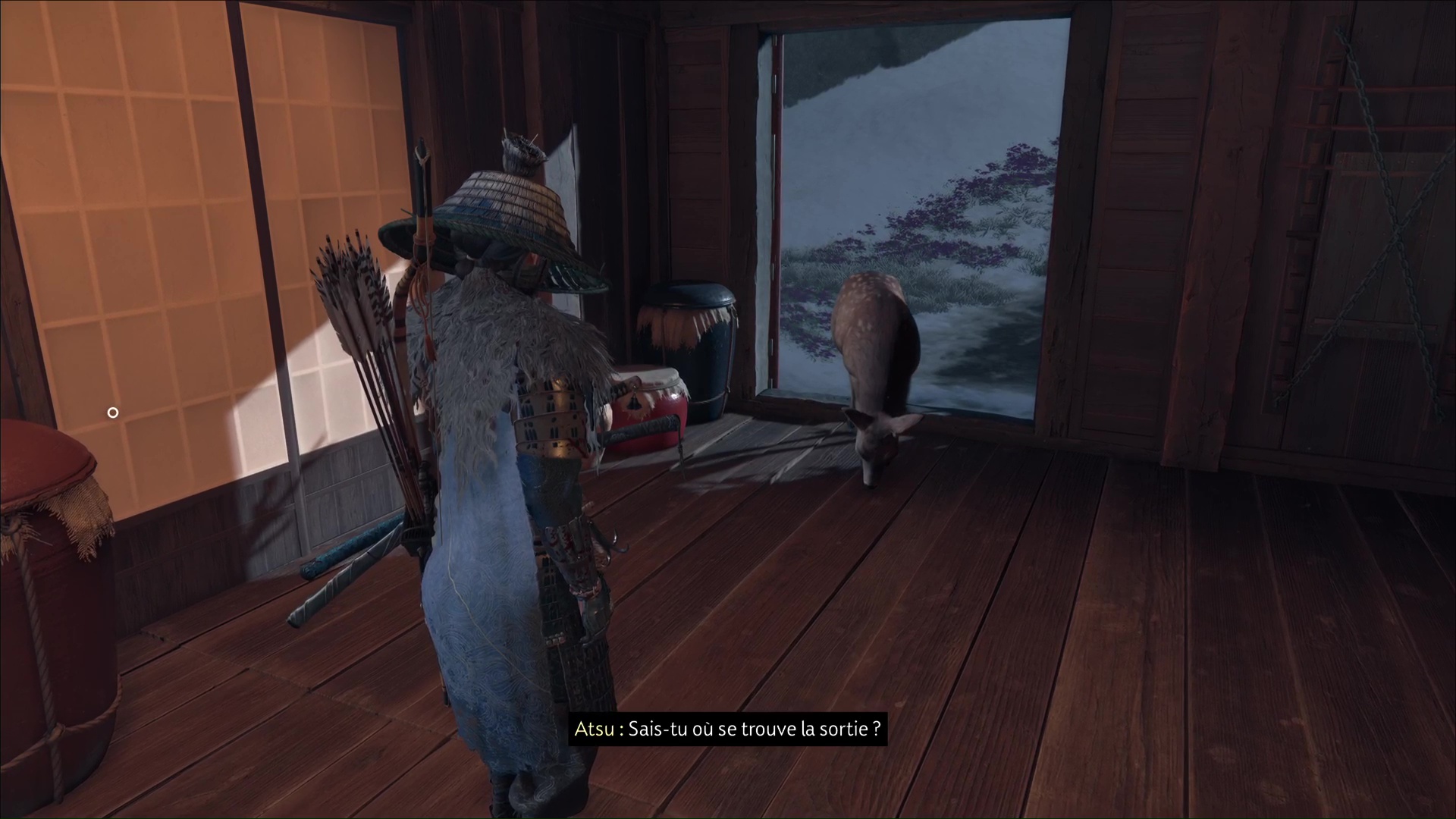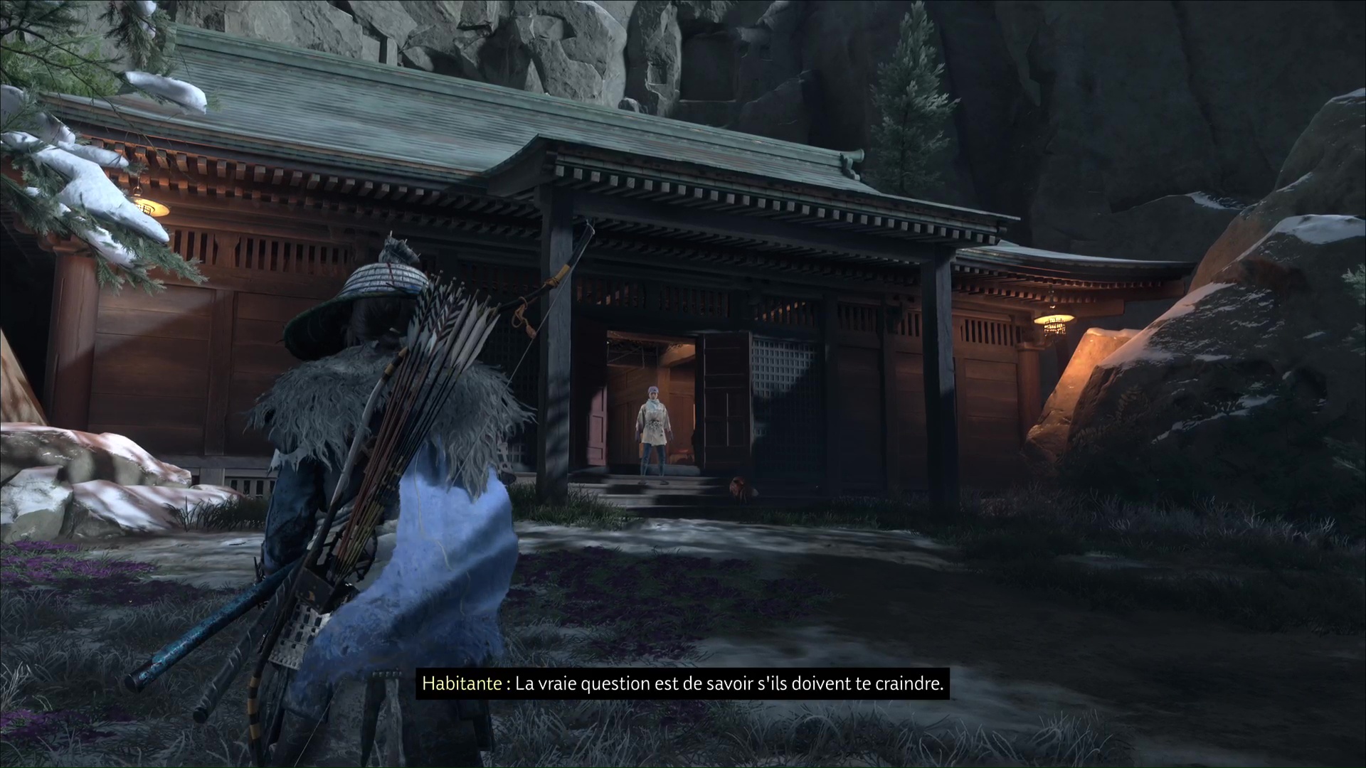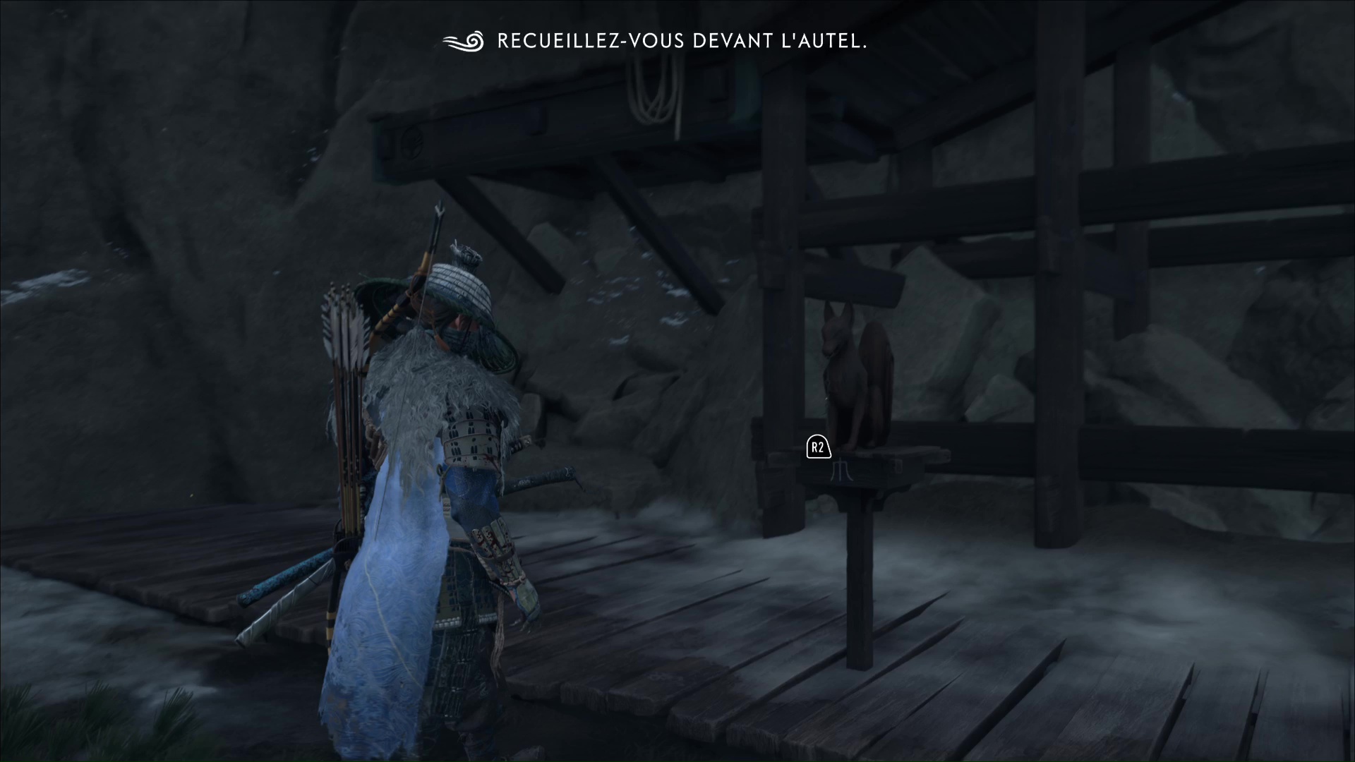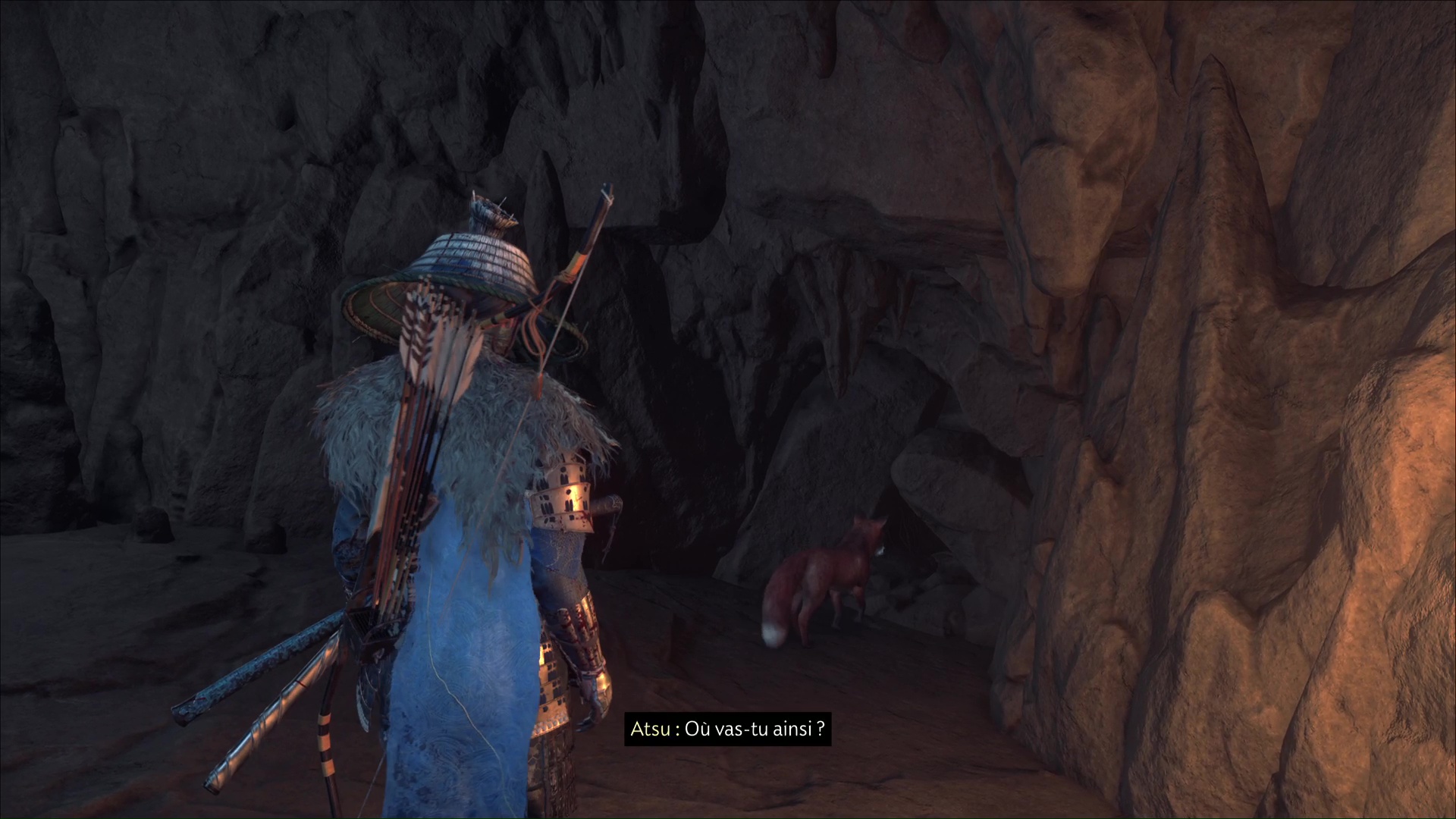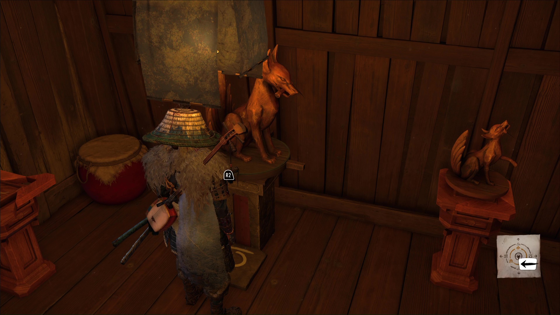 L’habitante vous demande ensuite de prendre soin des renards, qui viendront trouver refuge ici. D’ailleurs, lorsque vous aurez complété tous les terriers de renards, vous débloquerez un masque en vous adressant à la gardienne de ces lieux. Terminez le récit en quittant le bâtiment par la droite.