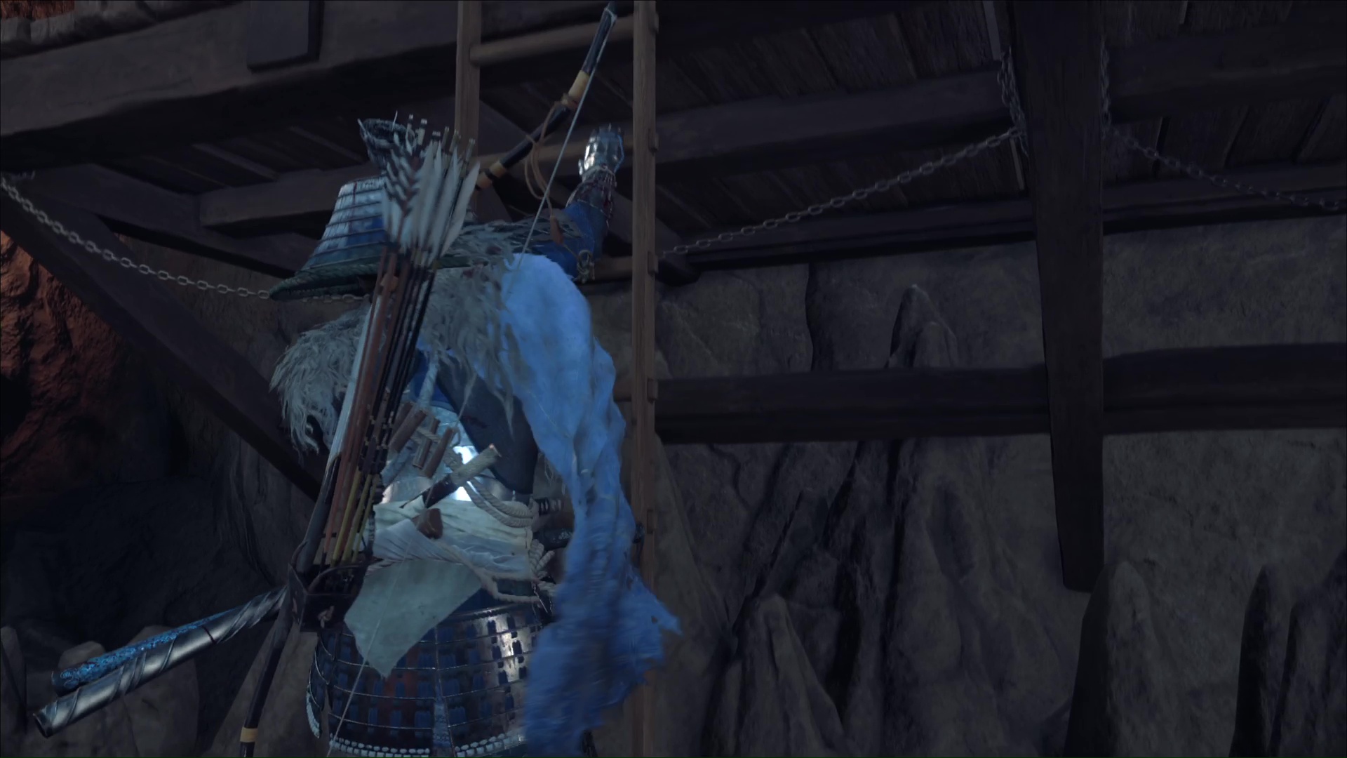 Continuez de suivre le renard et celui-ci ira se faufiler dans un trou. Montez à l’échelle juste à côté pour passer au niveau supérieur, puis marchez sur une corde et grimpez aux prises rocheuses au bout du chemin pour vous hisser finalement à un tronc à grappin.