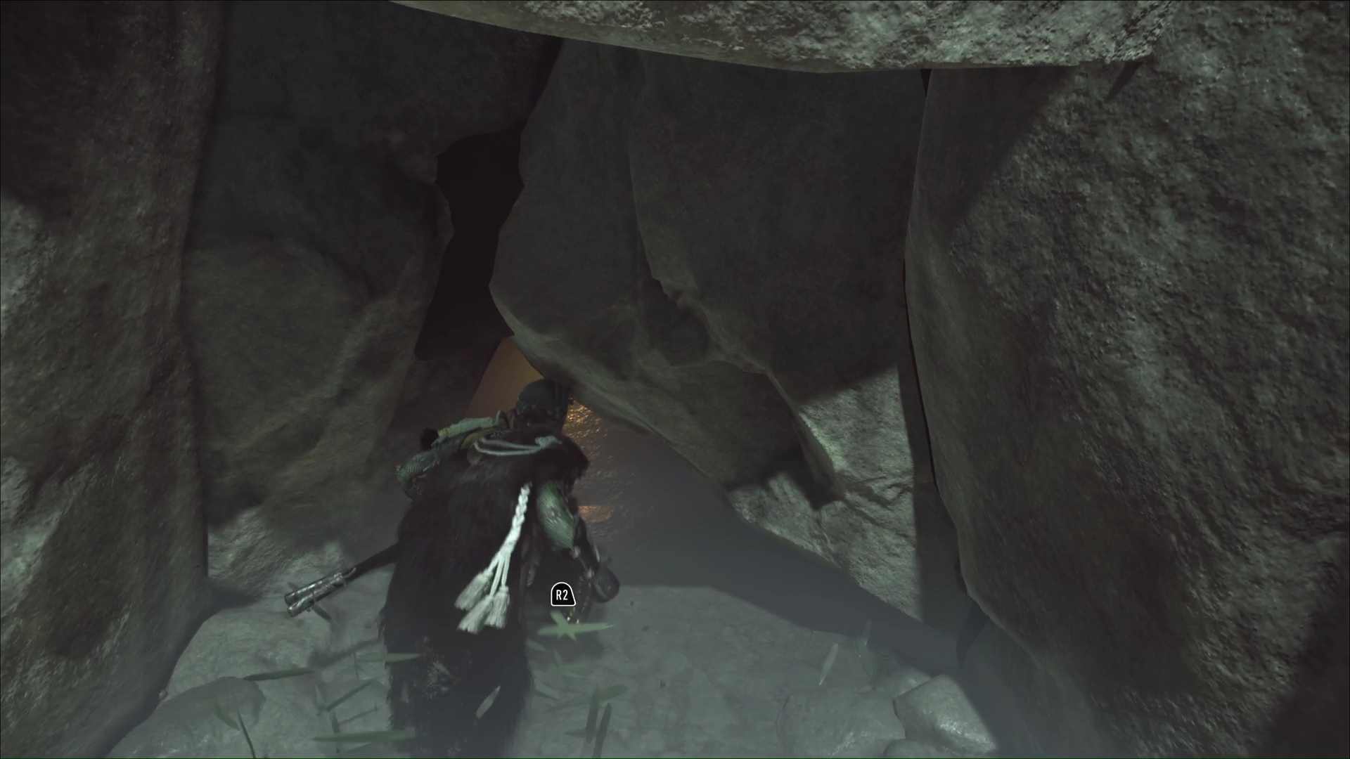 De nouveau dans une grotte, avancez un peu pour arriver à un tronc couché. Marchez dessus et, arrivé en face, faufilez-vous à travers une ouverture.