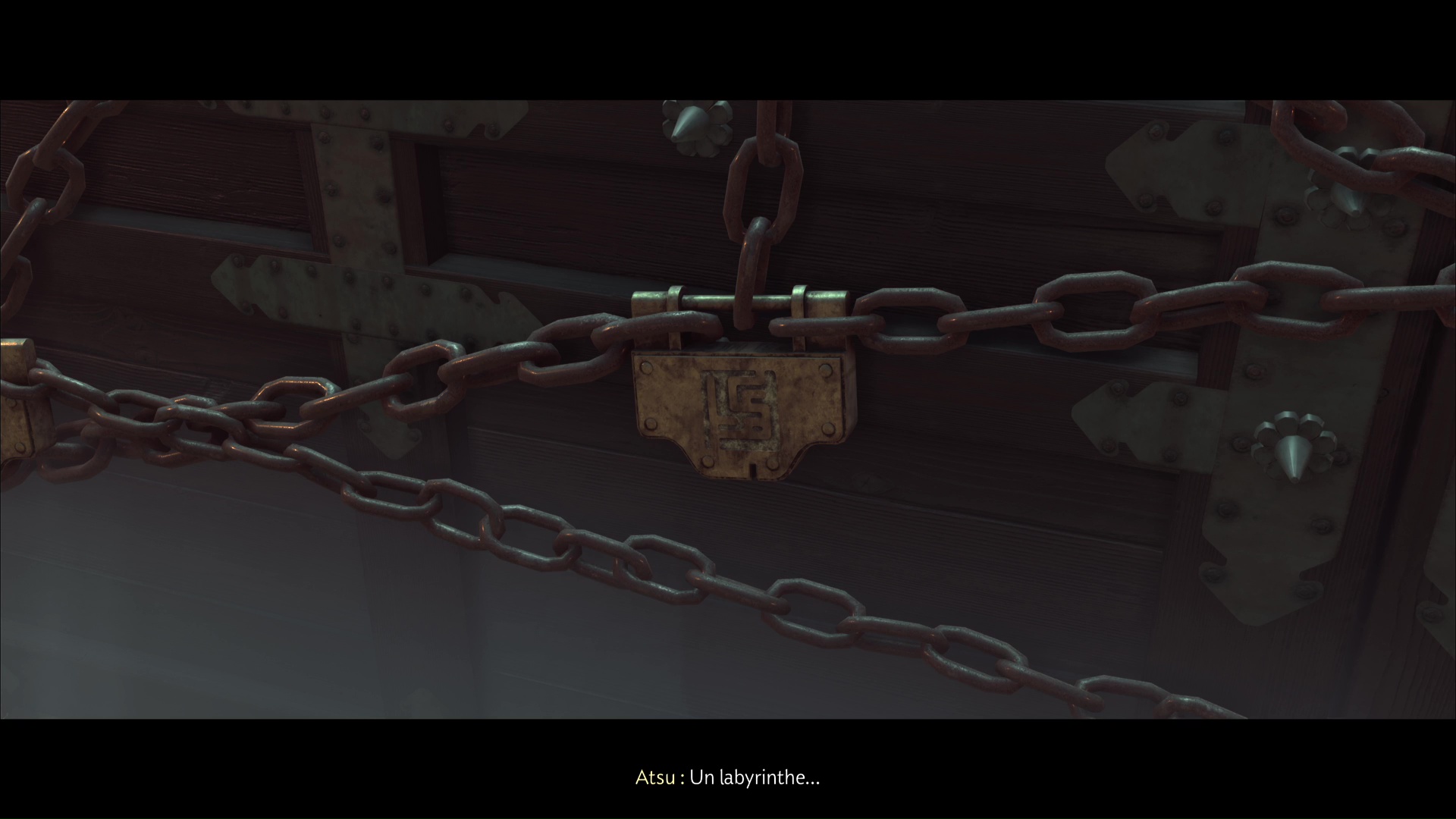 Au loin, devant vous, une porte est scellée par plusieurs cadenas. Chaque cadenas correspond à une clé bien précise que vous allez devoir trouver en fouillant les différentes zones du Domaine.