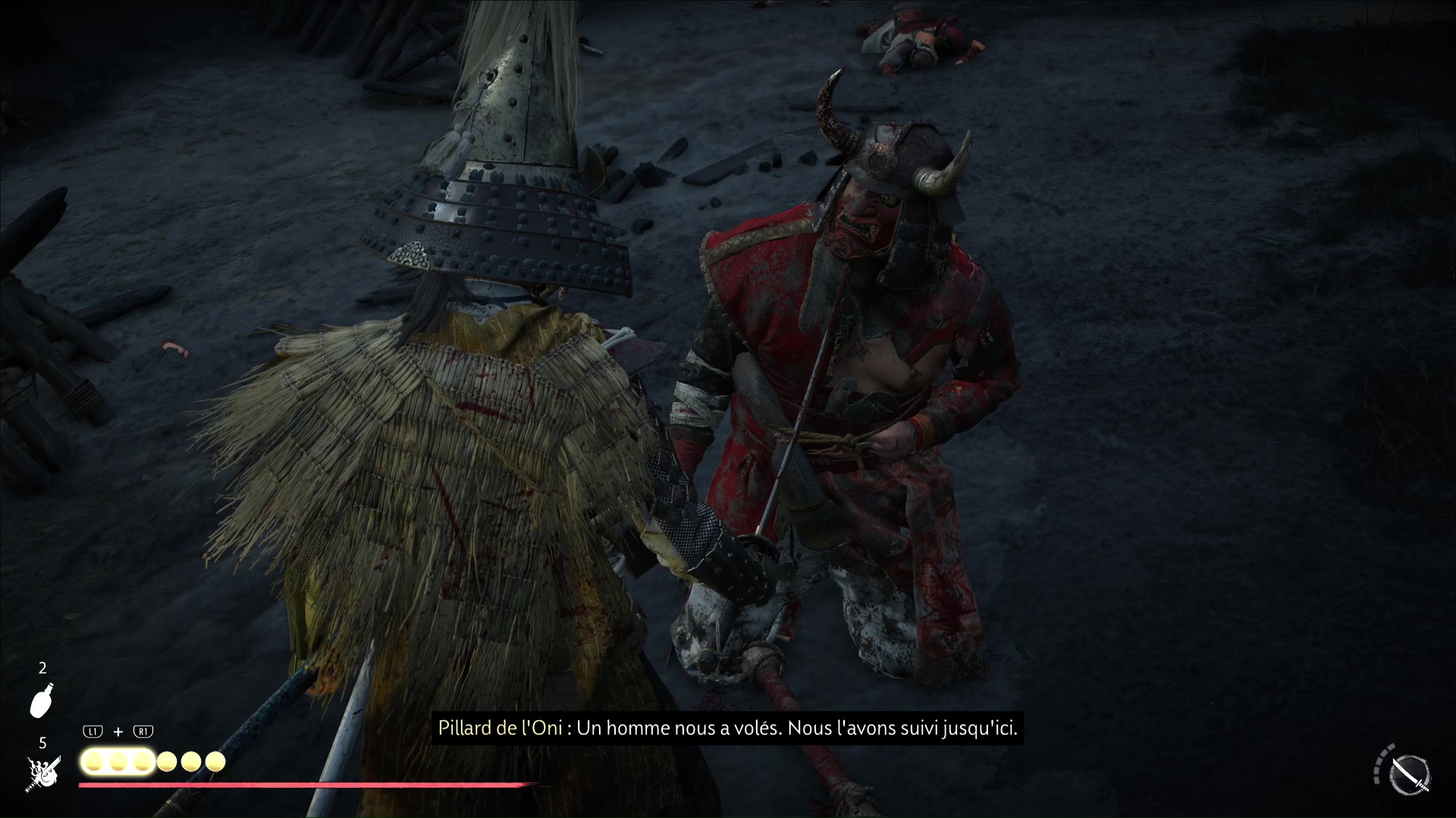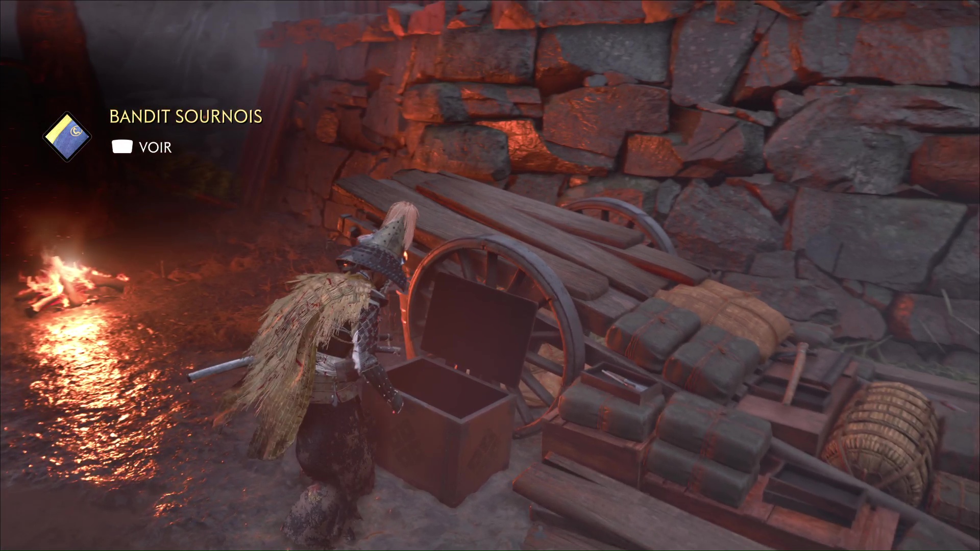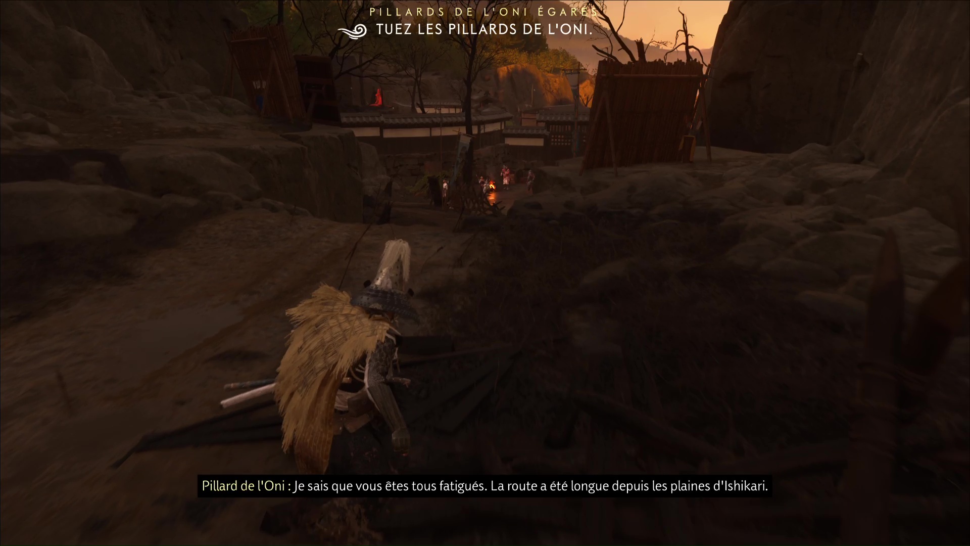 Pour rejoindre ces pillards, il va falloir tout simplement rejoindre l’entrée de la région par là où vous êtes passé en compagnie d’Oyuki et Jubei. Sur place, il y a effectivement un joli groupe de pillards auprès d’un feu.