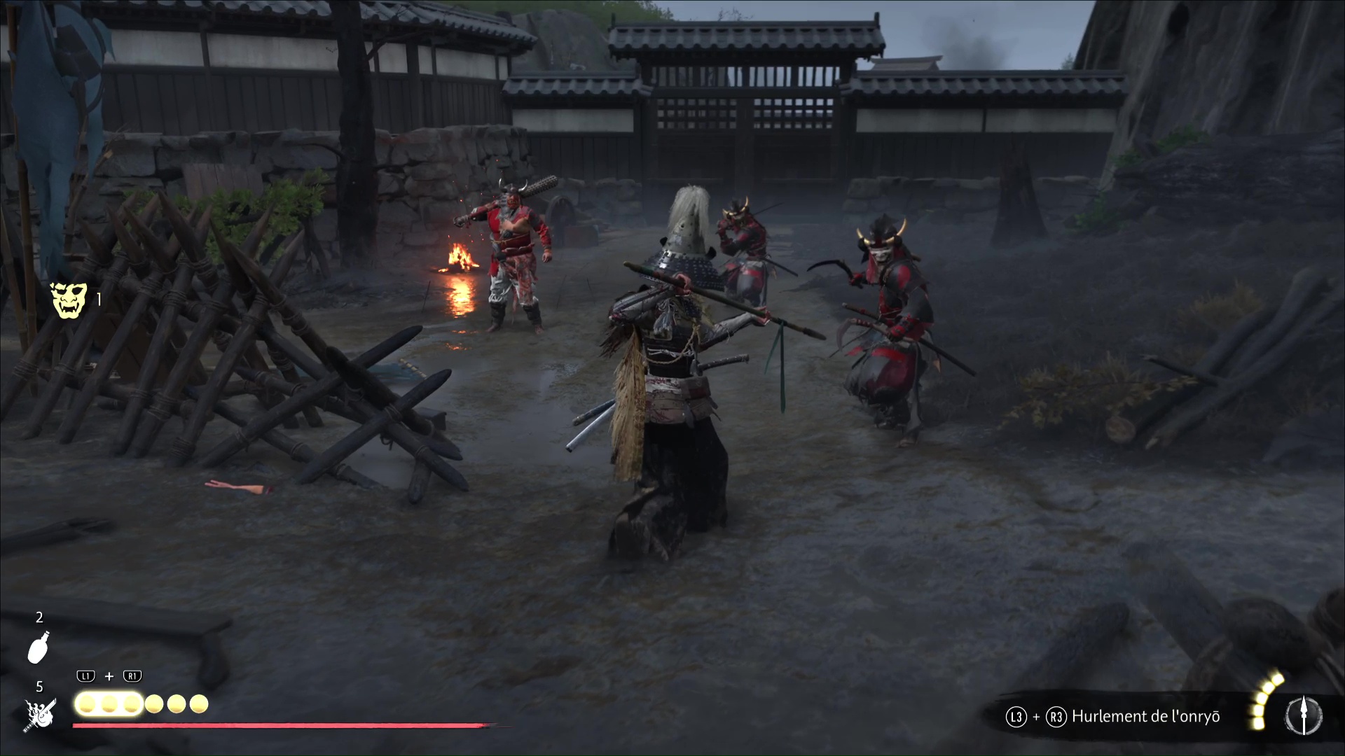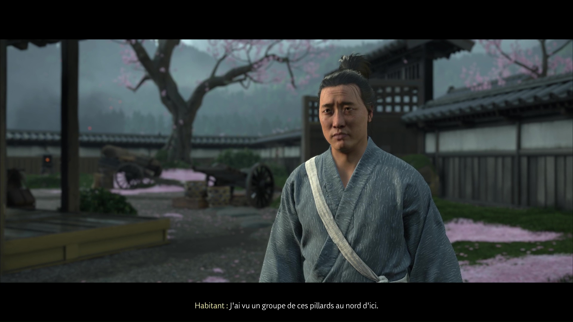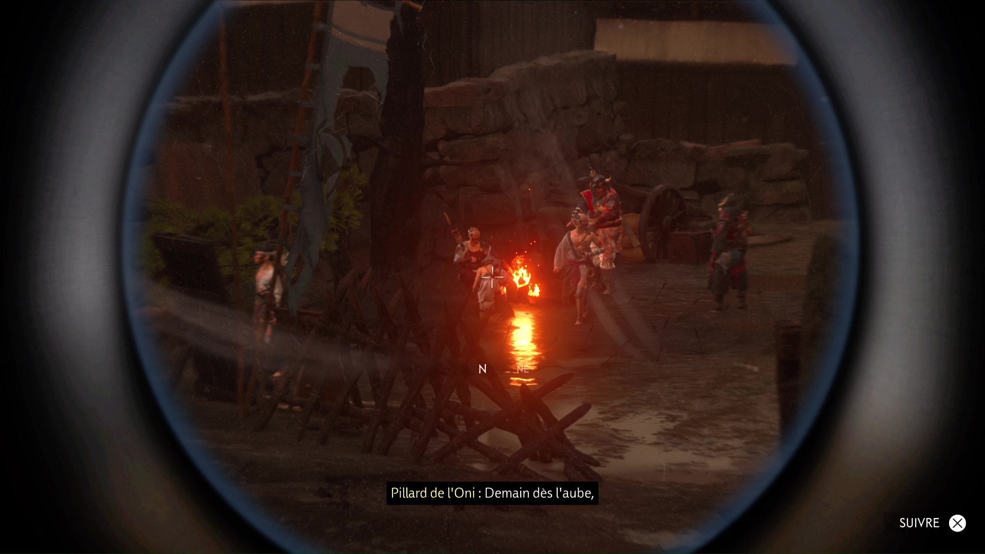 Pour rejoindre ces pillards, il va falloir tout simplement rejoindre l’entrée de la région par là où vous êtes passé en compagnie d’Oyuki et Jubei. Sur place, il y a effectivement un joli groupe de pillards auprès d’un feu.