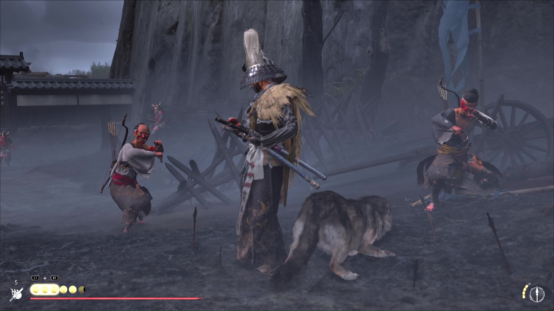 Appelez la louve avec sa mélodie de shamisen, si vous l’avez et que votre lien est puissant avec la bête, et lancez une Confrontation. Éliminez les autres ennemis en choisissant autant que possible la meilleure arme.