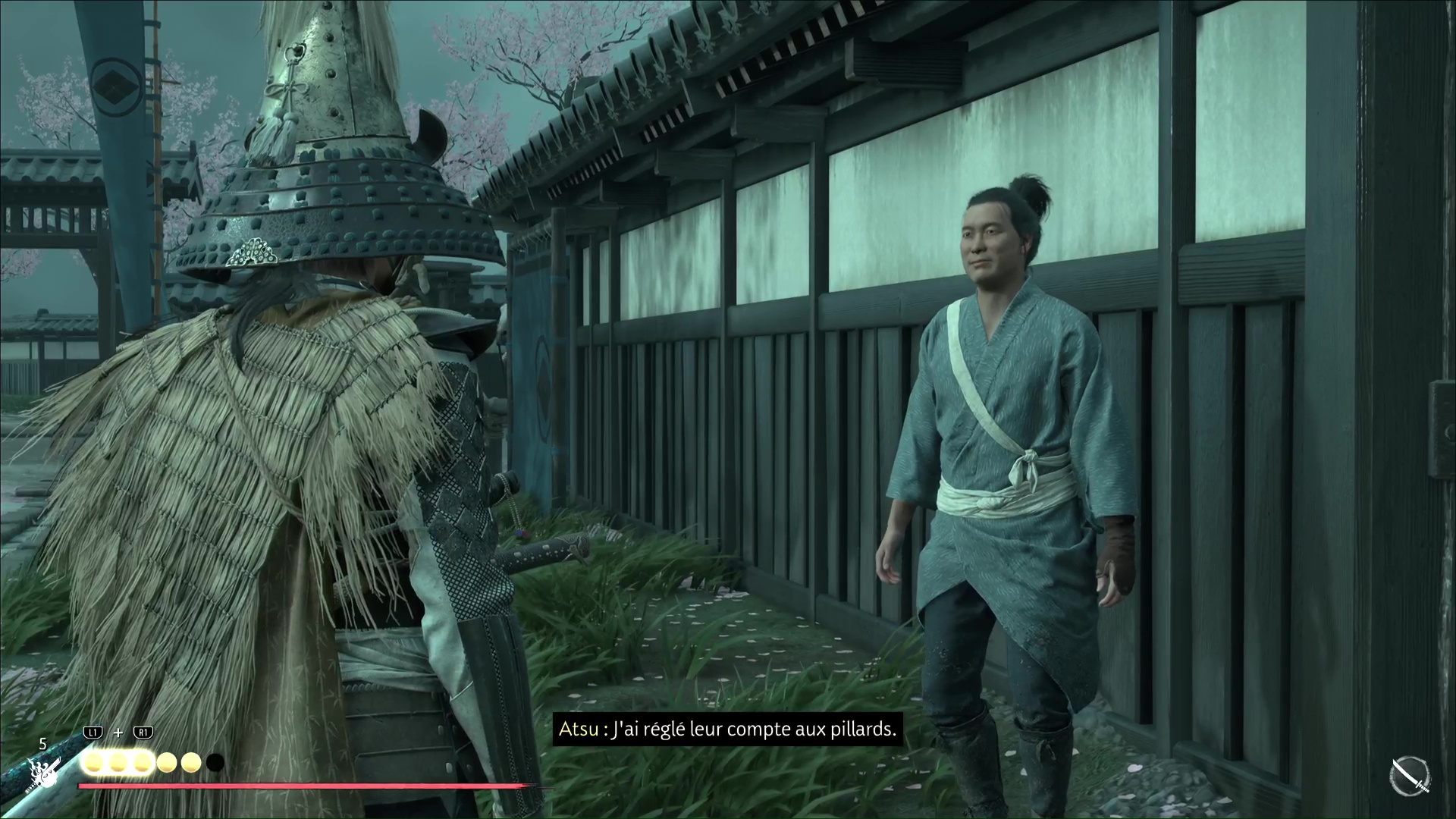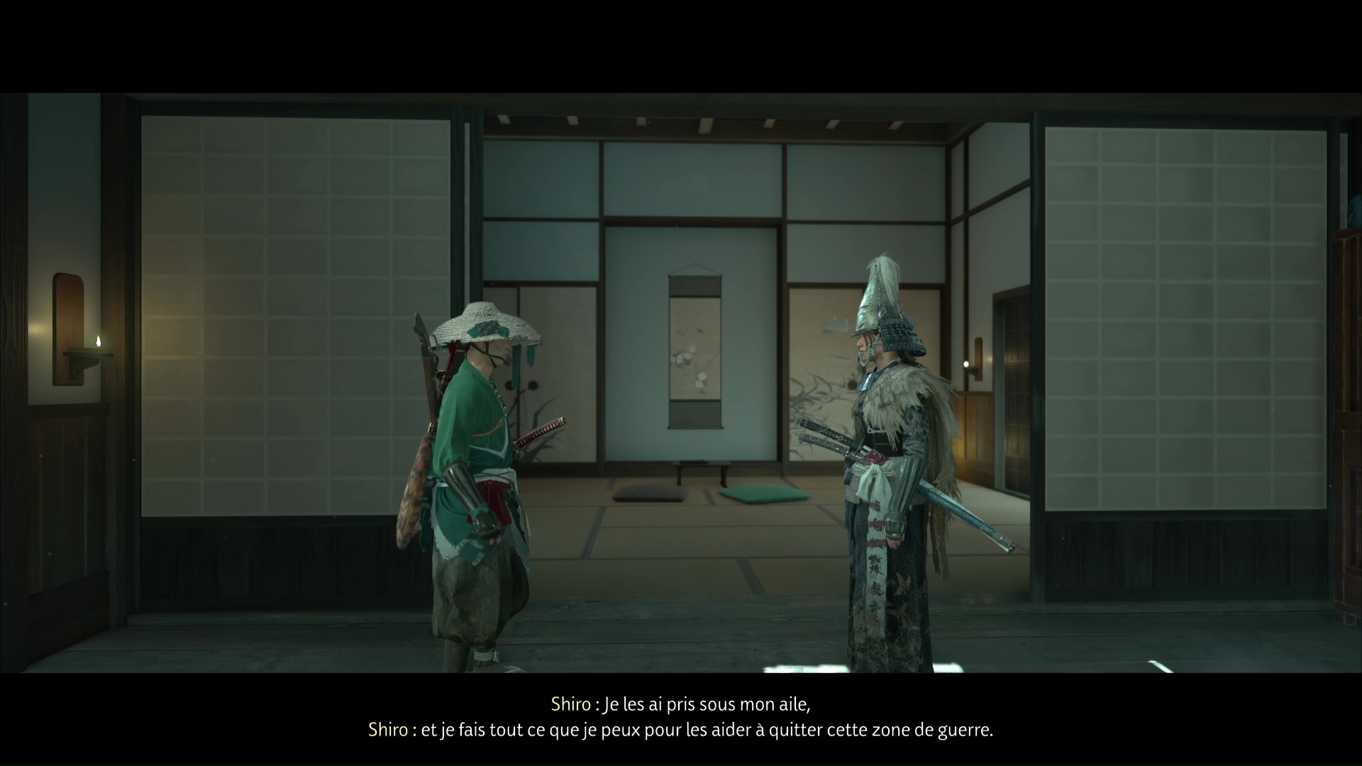 Shiro s’apprête alors à se rendre, mais Atsu a été touché par son dévouement envers les réfugiés. Elle le laisse donc partir et Shiro la remercie en lui donnant 750 pièces. Vous récupérez également le Chapeau de paille de Shiro.