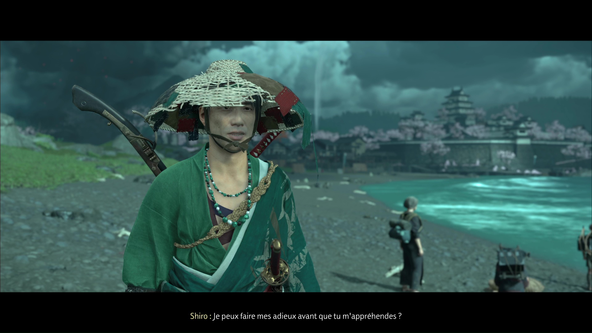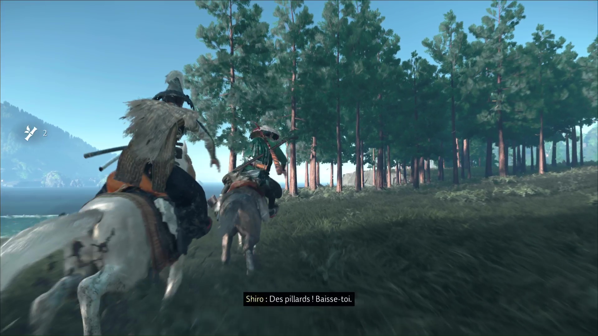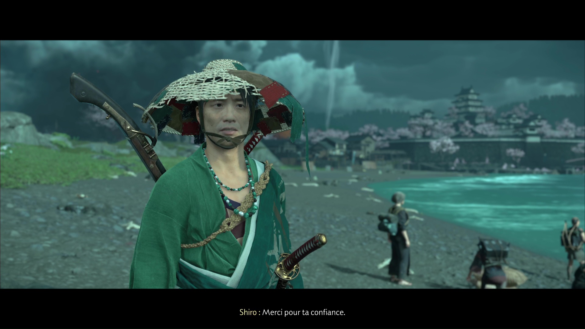 Sur le chemin, il explique que c’est pour ces gens que l’argent a servi. Après une balade à cheval, vous atteignez la mer alors que des pillards ne sont pas loin. Ensemble, vous allez les éliminer. Shiro va vous couvrir avec son arme à feu.