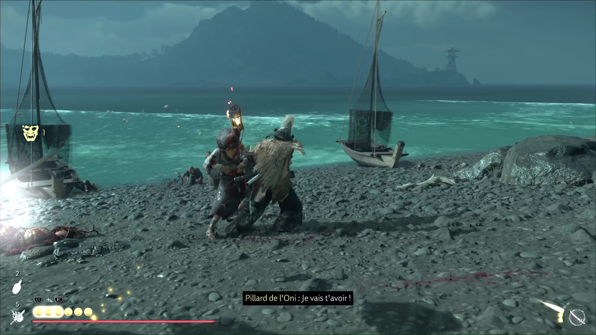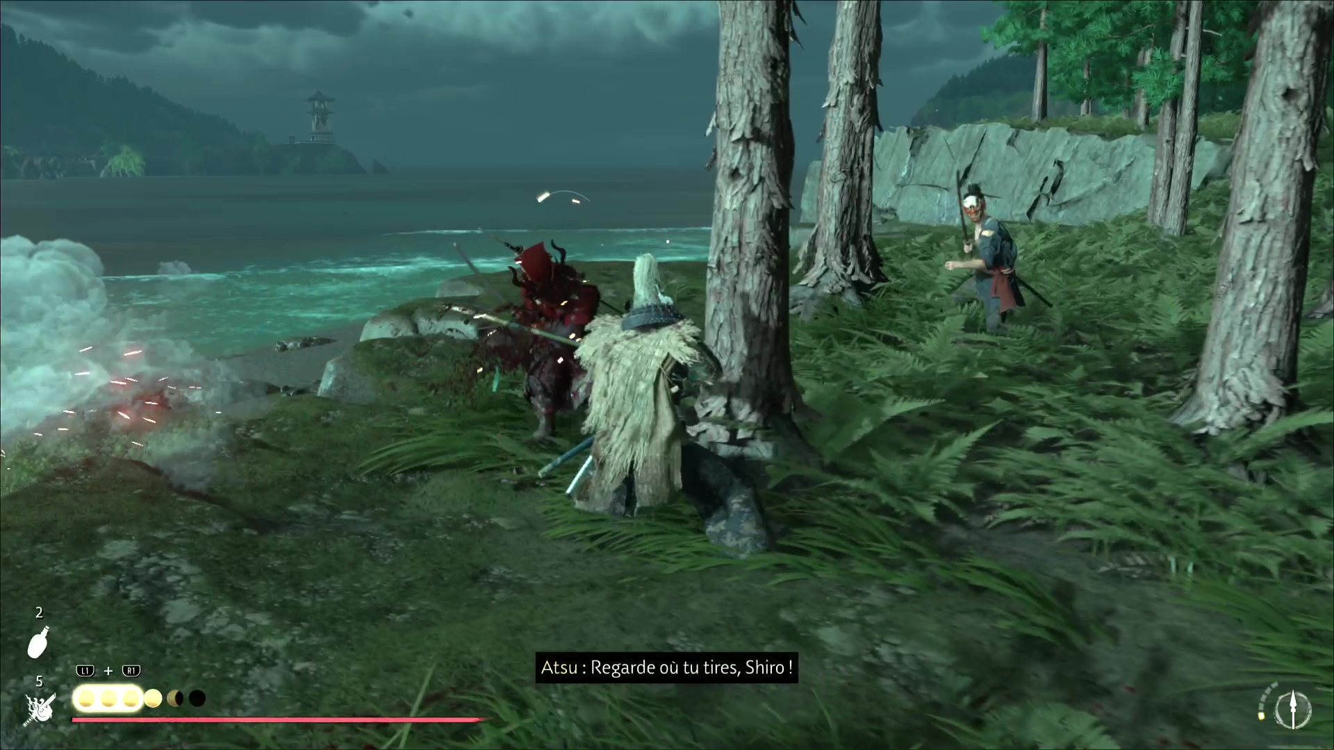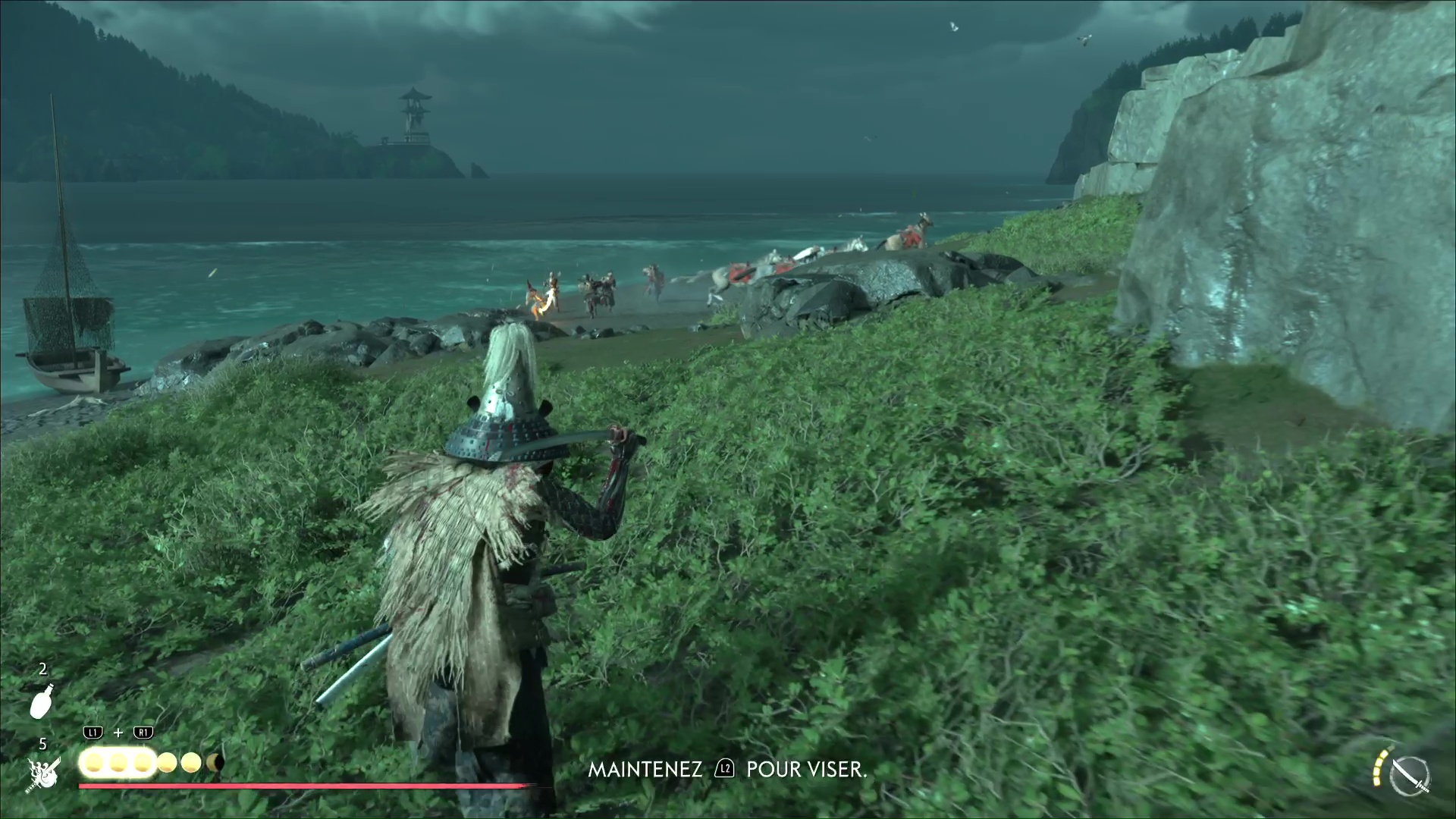 Sur le chemin, il explique que c’est pour ces gens que l’argent a servi. Après une balade à cheval, vous atteignez la mer alors que des pillards ne sont pas loin. Ensemble, vous allez les éliminer. Shiro va vous couvrir avec son arme à feu.
