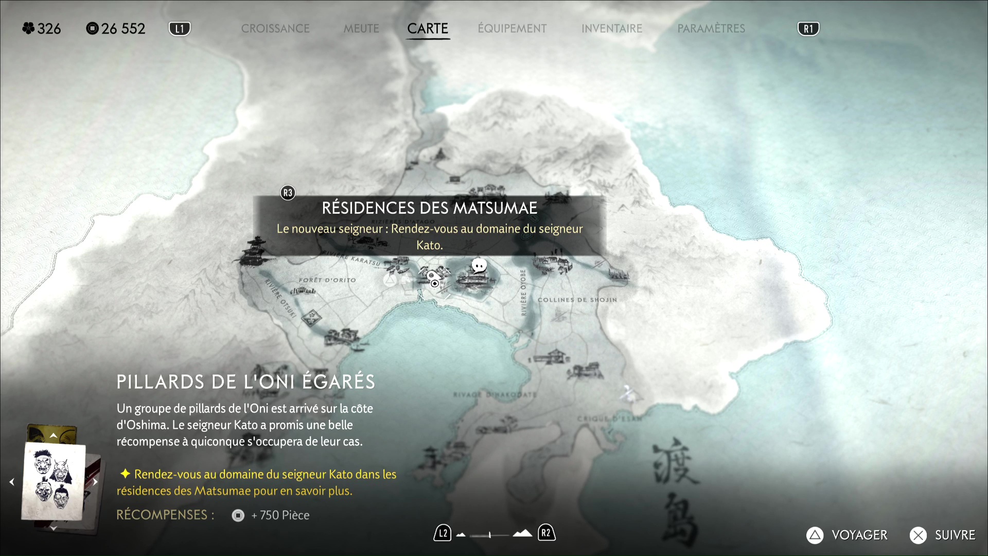 Ce récit de Ghost of Yōtei démarrera en vous rendant auprès du seigneur Kato, dans le cadre de la prime Pillards de l’Oni égarés de la Côte d’Oshima. Rendez-vous à l’ouest du Château Matsumae, dans les Résidences des Matsumae, la zone entourant ledit château, pour rejoindre le seigneur.