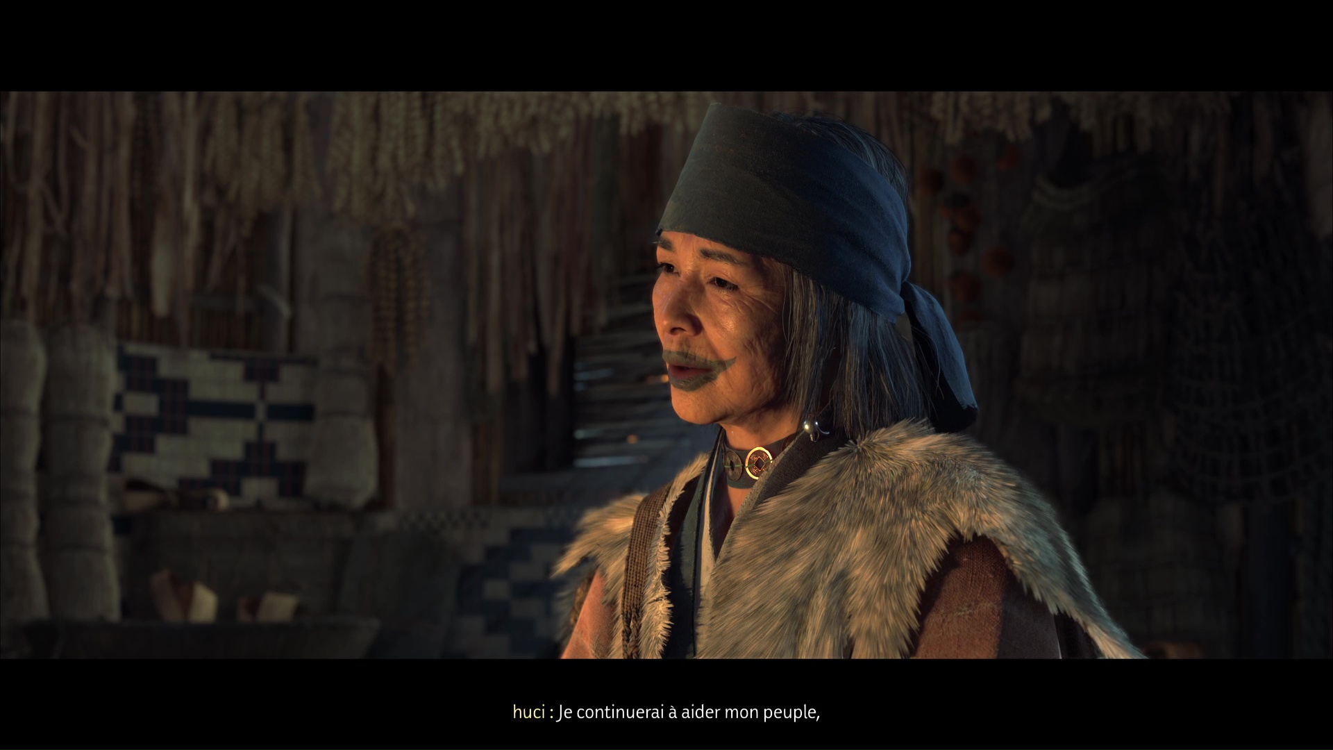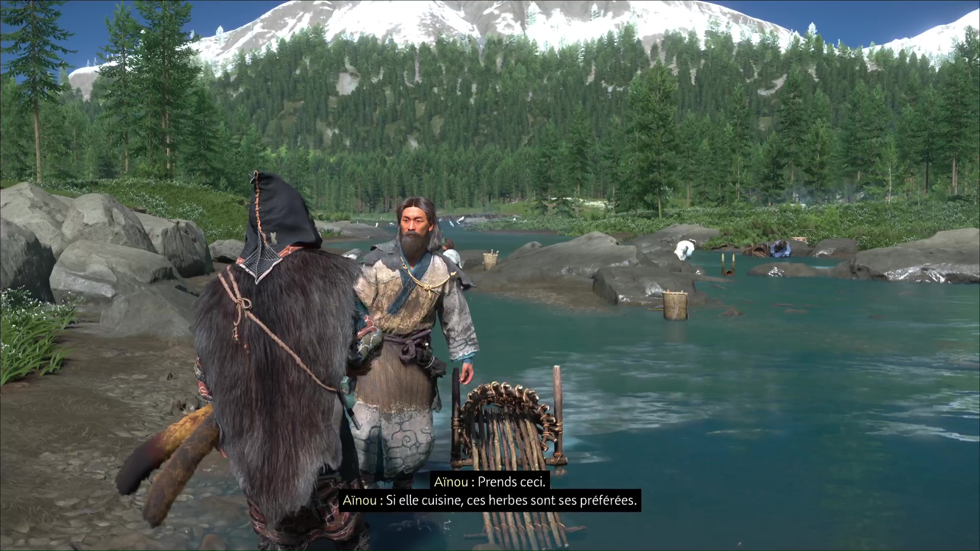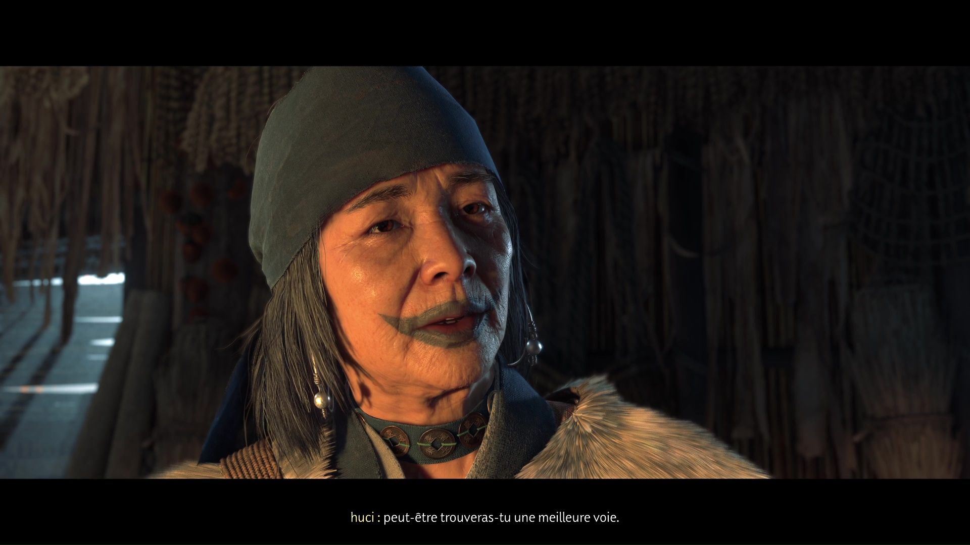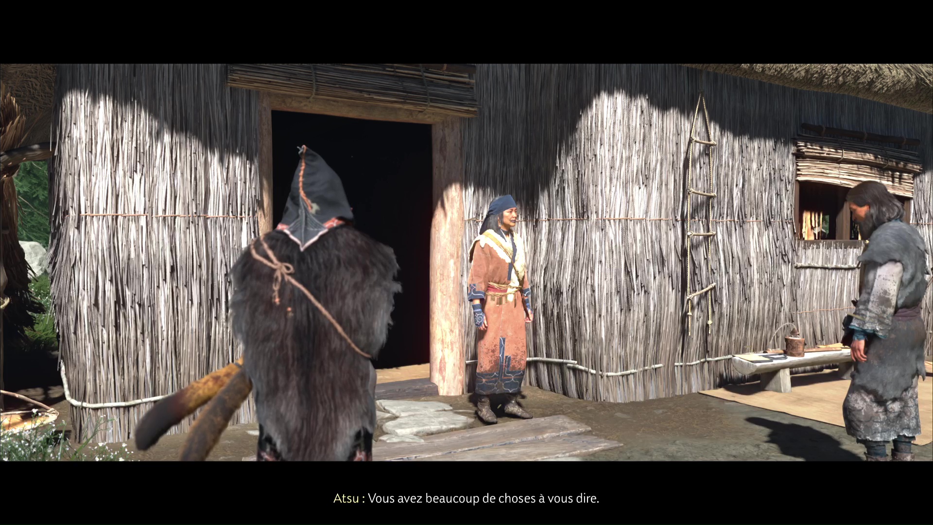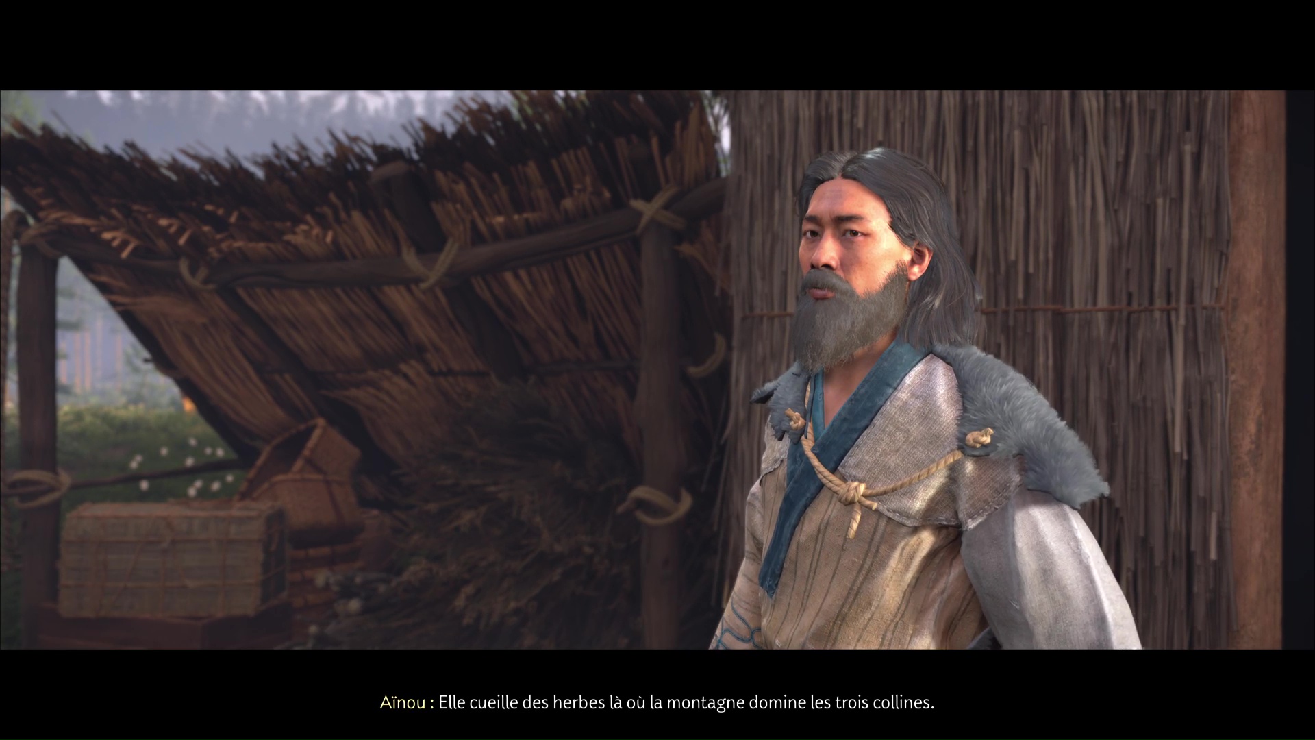 Votre arrivée dans les Terres sauvages de Nayoro de Ghost of Yōtei fut l’occasion de lancer le récit « Le cœur d’une aïnoue », en compagnie de huci, une femme aïnoue soucieuse de son peuple. Au terme de ce récit, elle a invité Atsu à venir partager un repas avec elle. Notre héroïne va donc s’adresser à son fils pour honorer cette invitation,