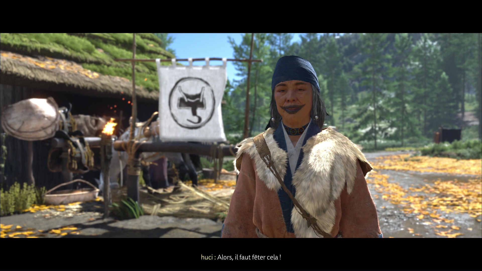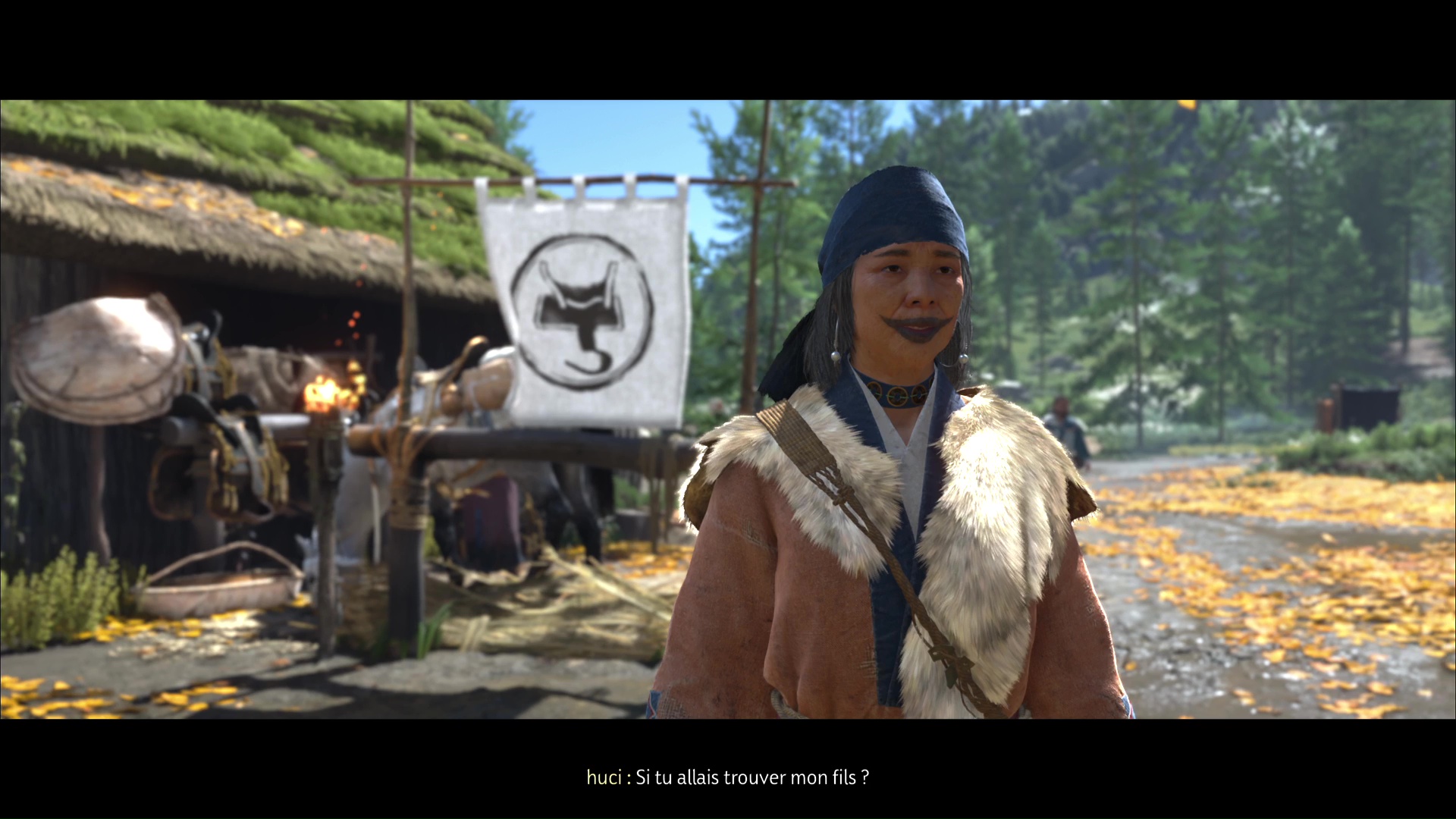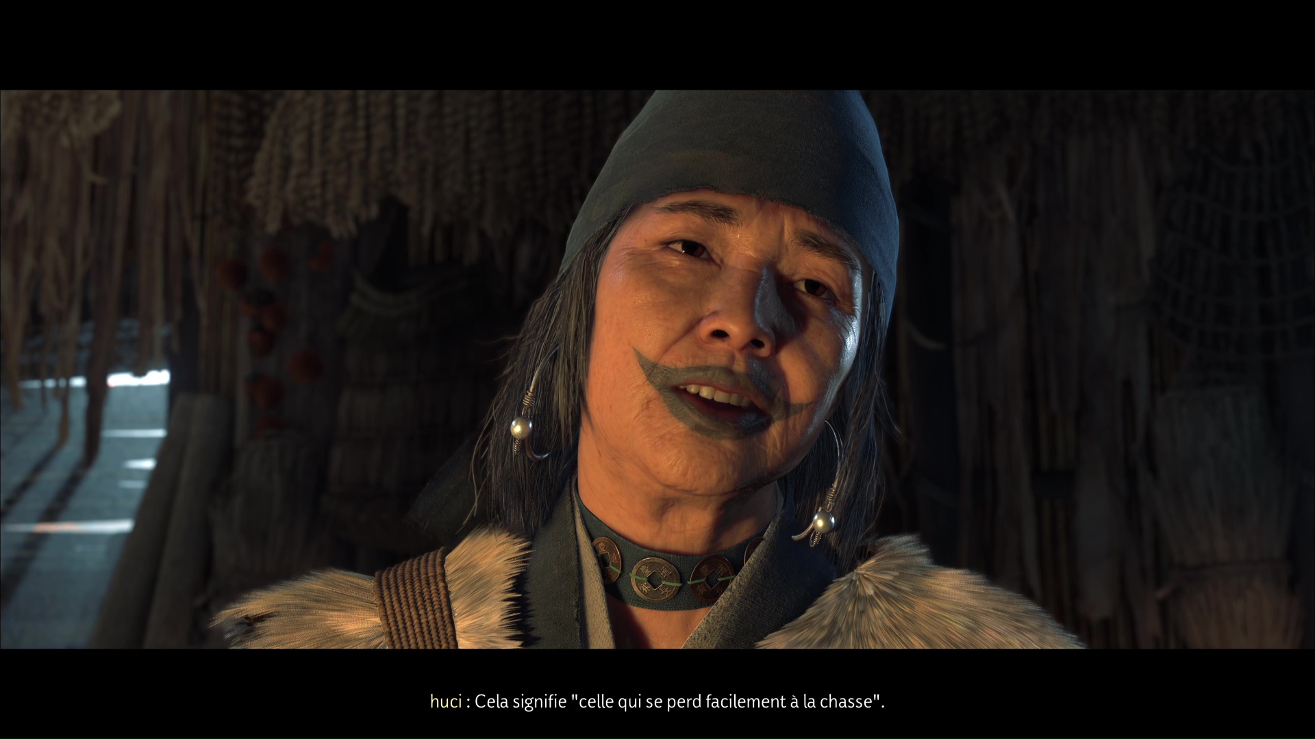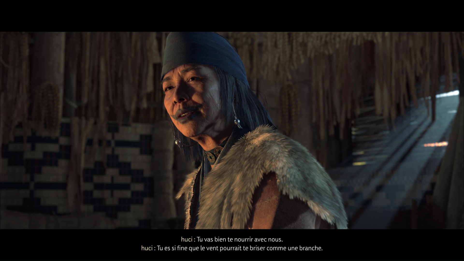 Votre arrivée dans les Terres sauvages de Nayoro de Ghost of Yōtei fut l’occasion de lancer le récit « Le cœur d’une aïnoue », en compagnie de huci, une femme aïnoue soucieuse de son peuple. Au terme de ce récit, elle a invité Atsu à venir partager un repas avec elle. Notre héroïne va donc s’adresser à son fils pour honorer cette invitation,