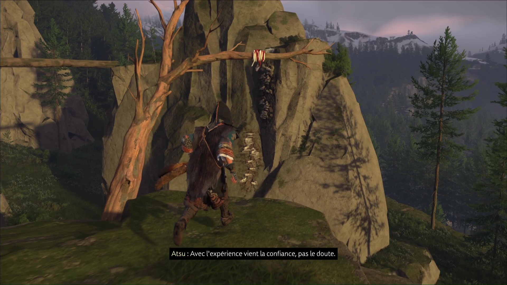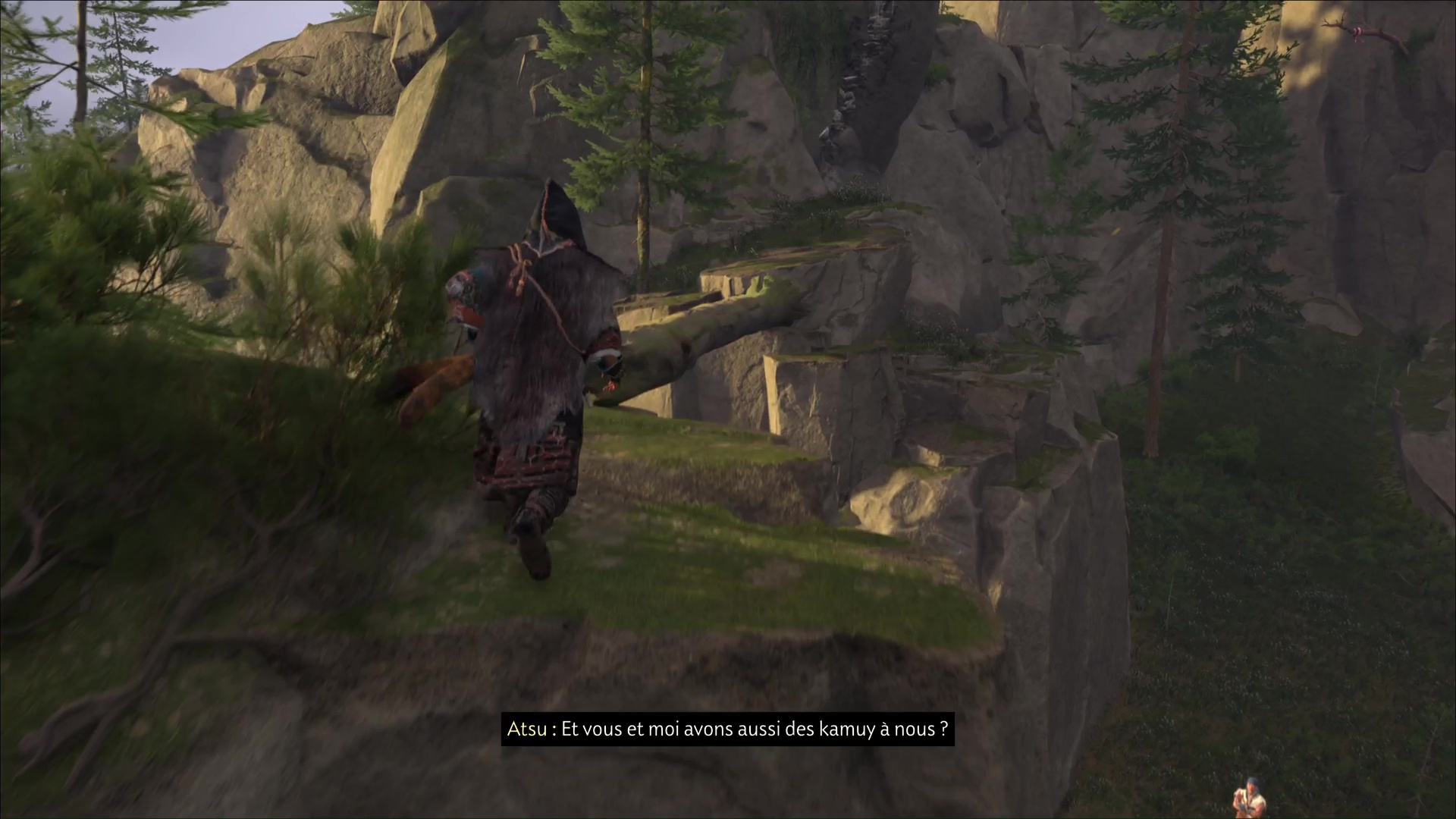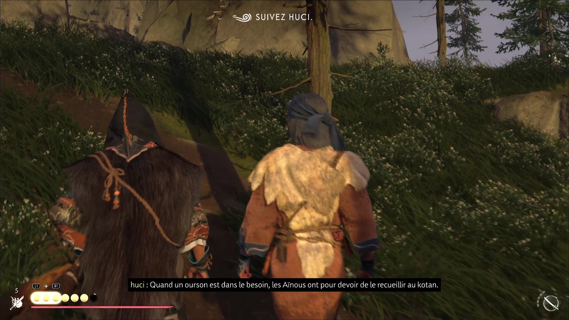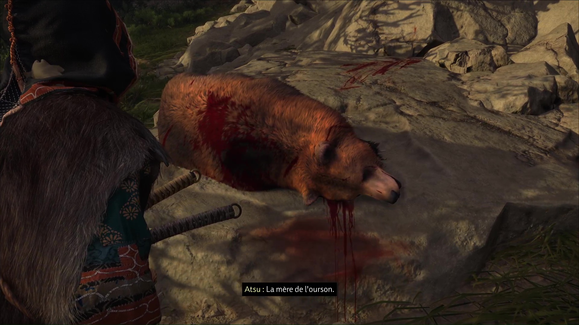Elle s’est blessée en suivant le son d’un cri. Il s’agit d’un ourson, et les aïnous doivent les recueillir lorsque l’un d’entre eux est en danger. Faites quelques pas et vous laisserez huci en retrait pour aller voir ce qu’il en est par vous-même.
