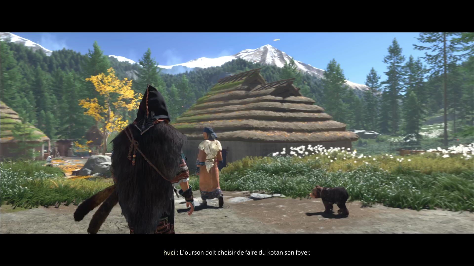 Le lendemain, vous êtes de retour au village, à accompagner huci et l’ourson, dans une sorte de rituel où le petit doit découvrir le village pour en faire son foyer, avant d’être sacrifié une fois adulte.