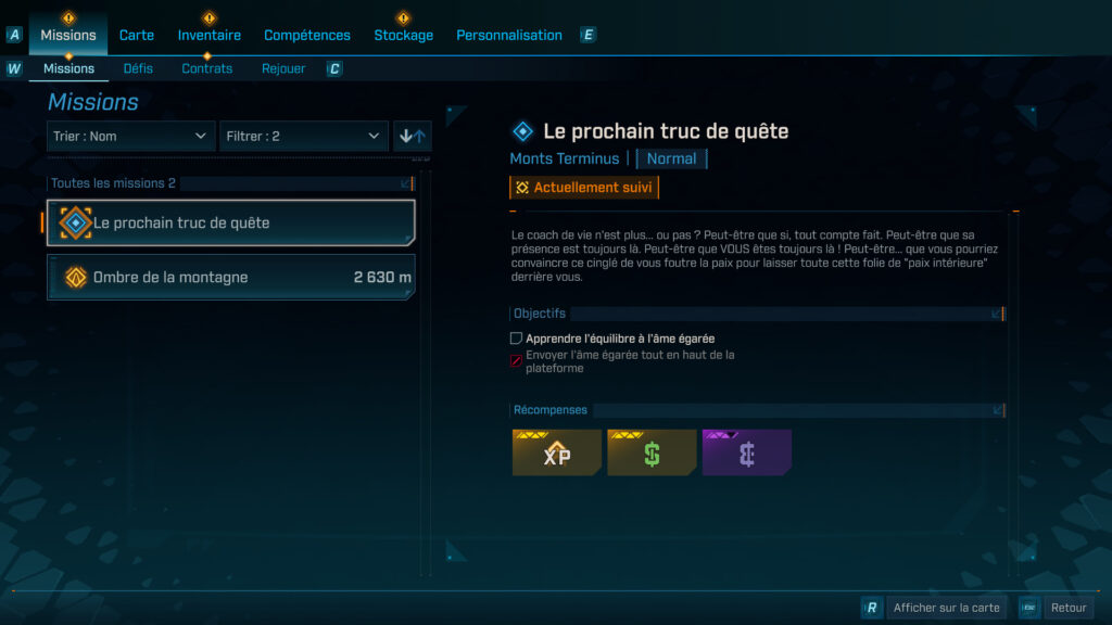 Point de départ : Âme égarée, juste après avoir terminé la mission secondaire « Sagesse contre machine »