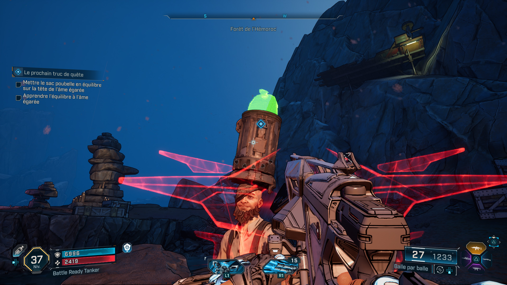 Retournez dans la Forêt de l’Hémoroc pour lui parler alors qu’il est en train d’observer un camp de Déconnectés. Ramassez alors le caillou sur votre droite, c qui fera office de pierre d’humeur, et jetez-lui dessus sans même qu’il sache le rattraper.