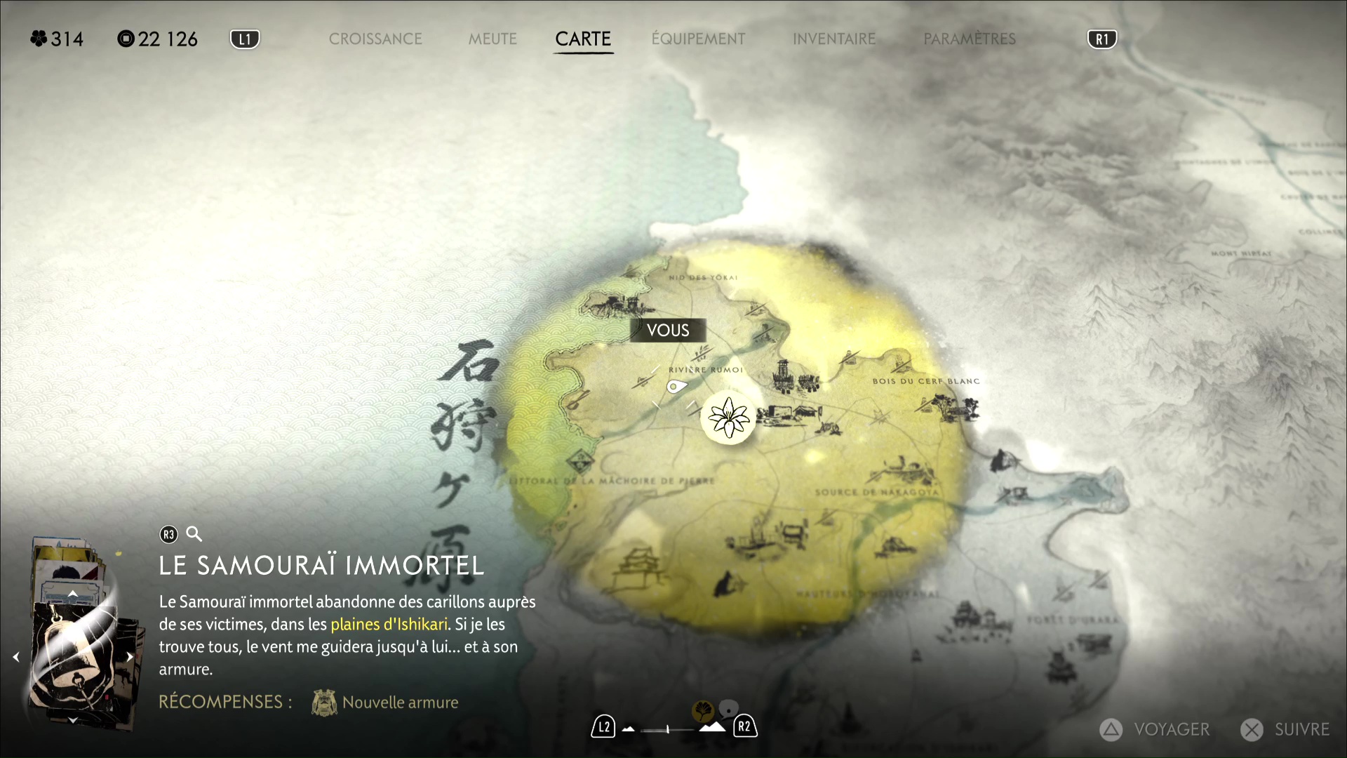 Ugestu vous y attend évidemment, et va vous raconter l’histoire du samouraï immortel, qui serait présent quelque part dans les plaines.