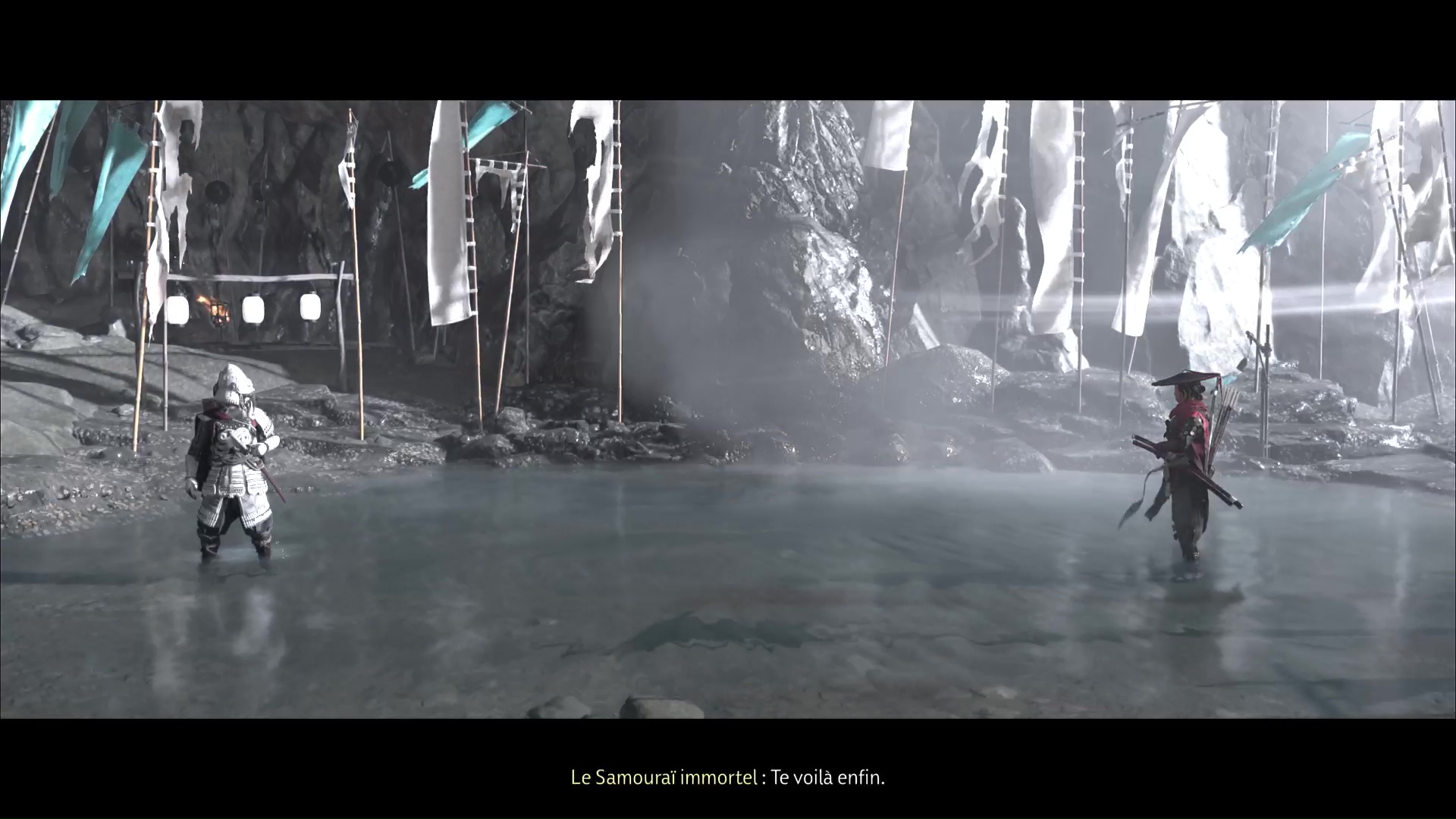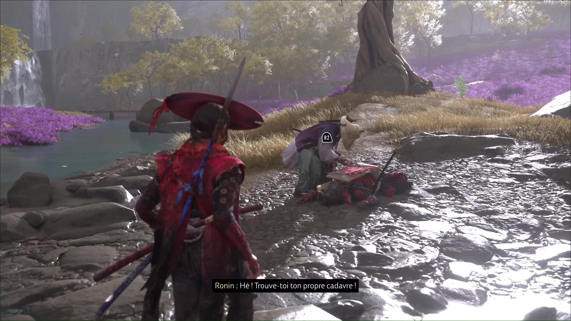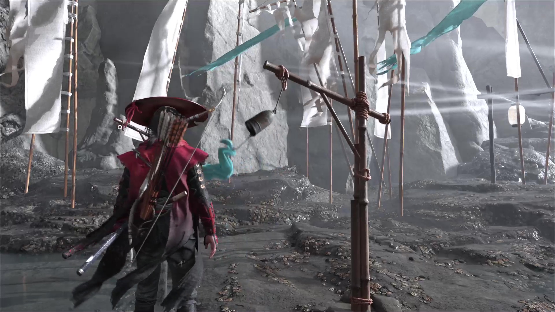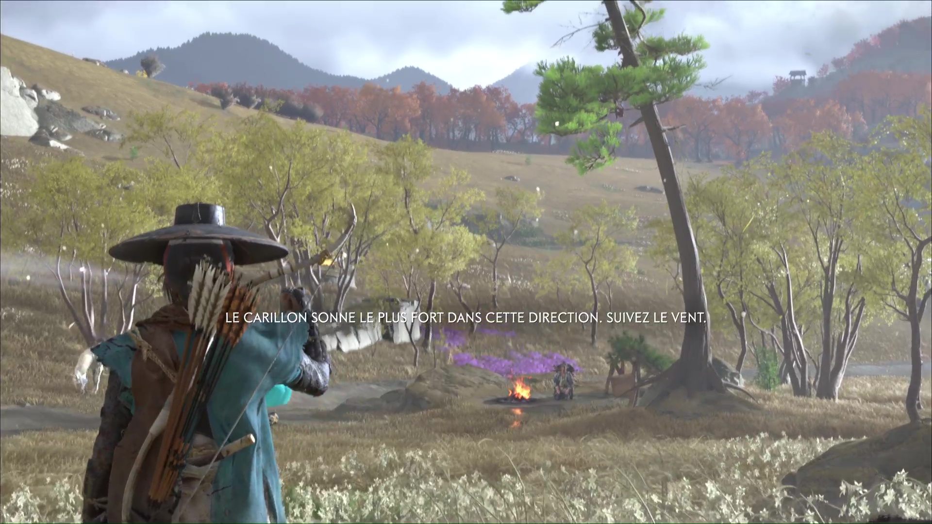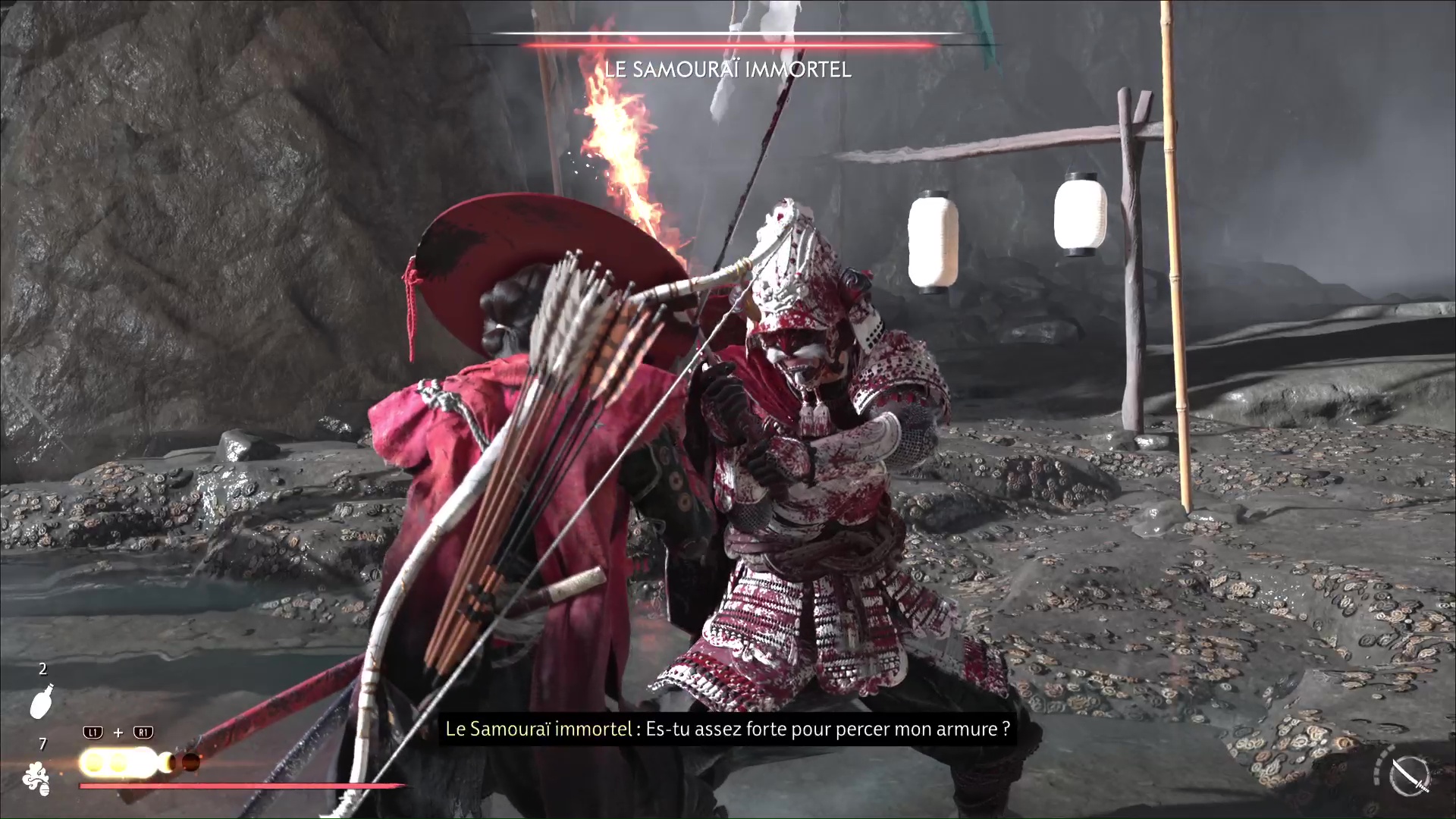 Allez au fond de la zone pour accrocher les quatre carillons aux quatre emplacements dédiés. Le samouraï va alors se manifester et vous provoquer directement en duel.