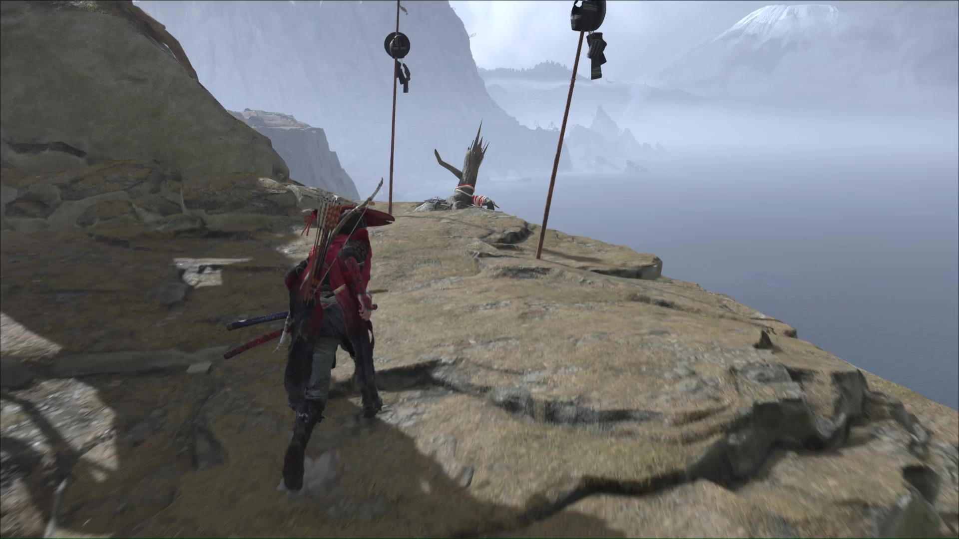 Maintenant que vous avez en votre possession les quatre carillons, rendez-vous au bord de la côte nord-ouest de la région. Partez du point d’intérêt Entraînement au shamisen et sortez le carillon pour vous indiquer la direction du vent à suivre. Vous verrez qu’elle vous mène à la pointe rocheuse en face.
