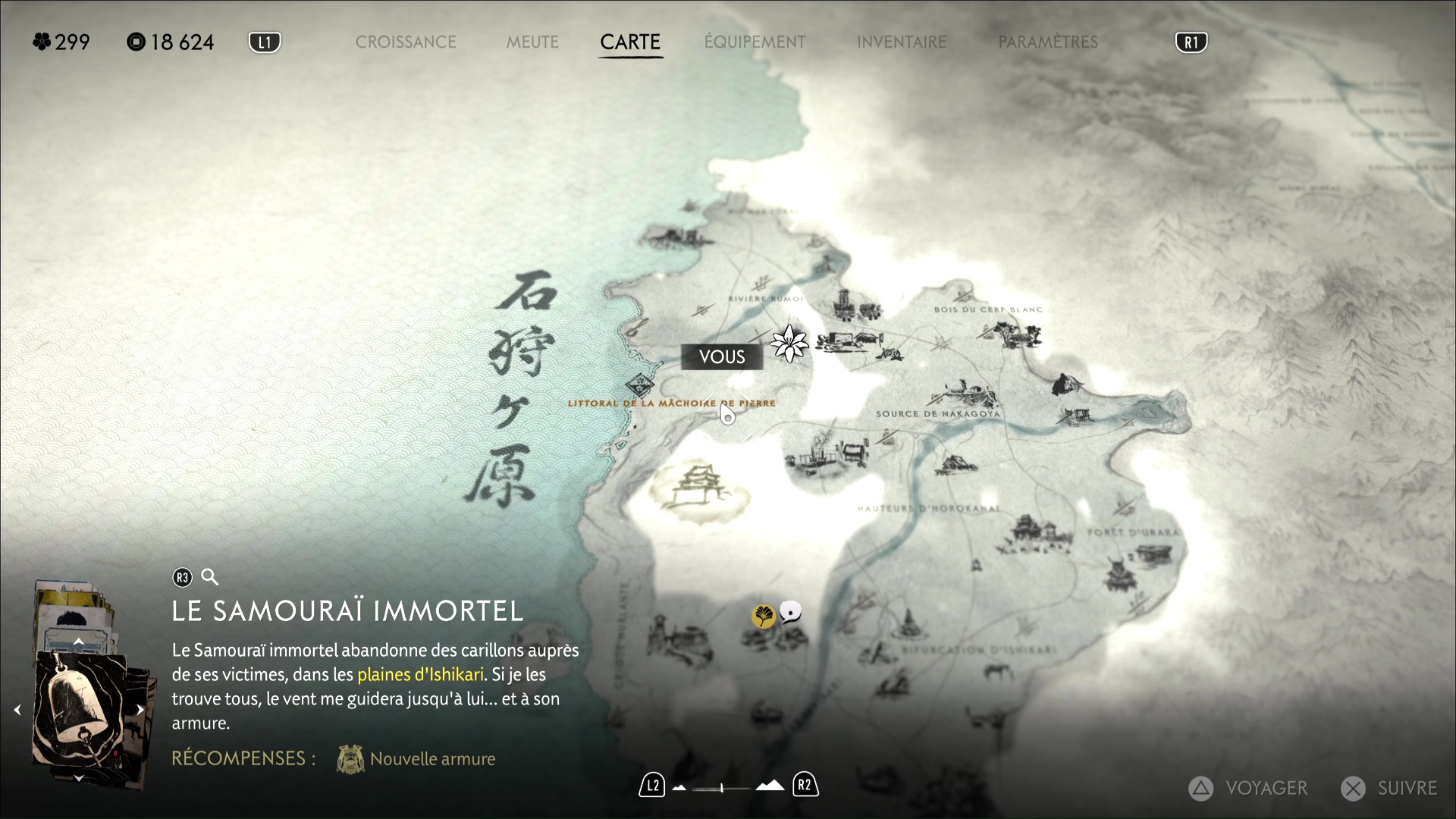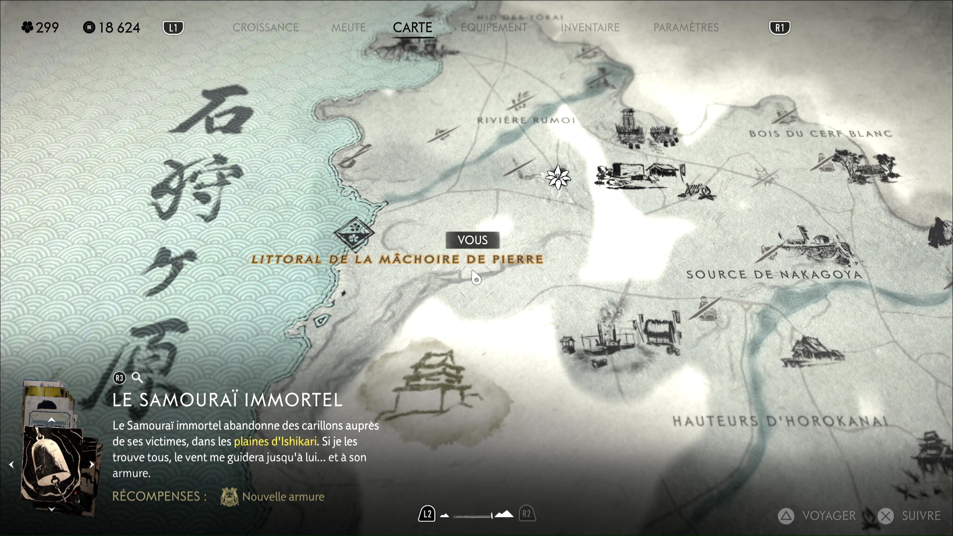 Une fois le samouraï vaincu, fouillez-le pour récupérer l’Armure de l’Immortel et les éléments cosmétiques qui vont avec. La quête mythique se terminera après qu’Atsu a fini son compte-rendu auprès d’Ugetsu. Vous gagnerez 200 pièces de sa part.