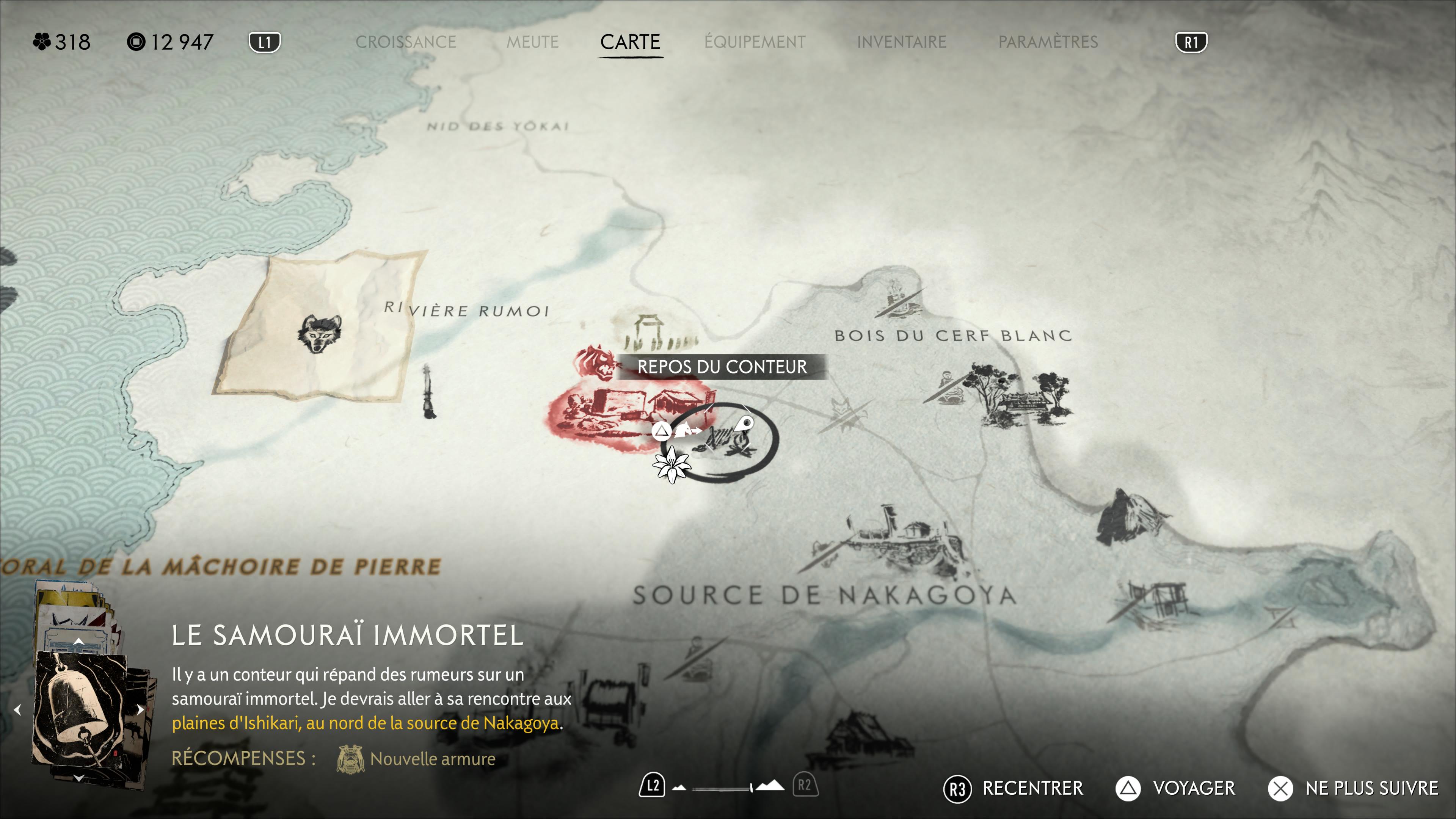 Au nord de la Source de Nakagoya, elle-même au nord des Plaines d’Ishikari, vous apprendrez l’existence d’un mythe local en vous rendant au Repos du Conteur.