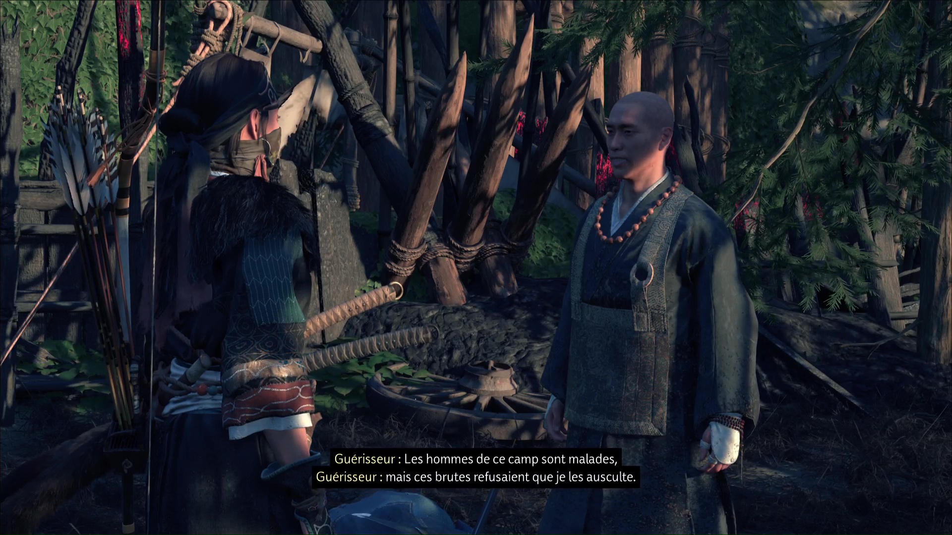Une fois ces quatre ronin morts, allez libérer l’otage. Vous apprenez qu’il s’agit en fait d’un guérisseur, et qu’il voulait soigner les ronin atteints d’une maladie. Si vous avez complété le récit « Le visage d’un démon », Atsu fera le parallèle avec ce qu’elle a déjà pu voir.
