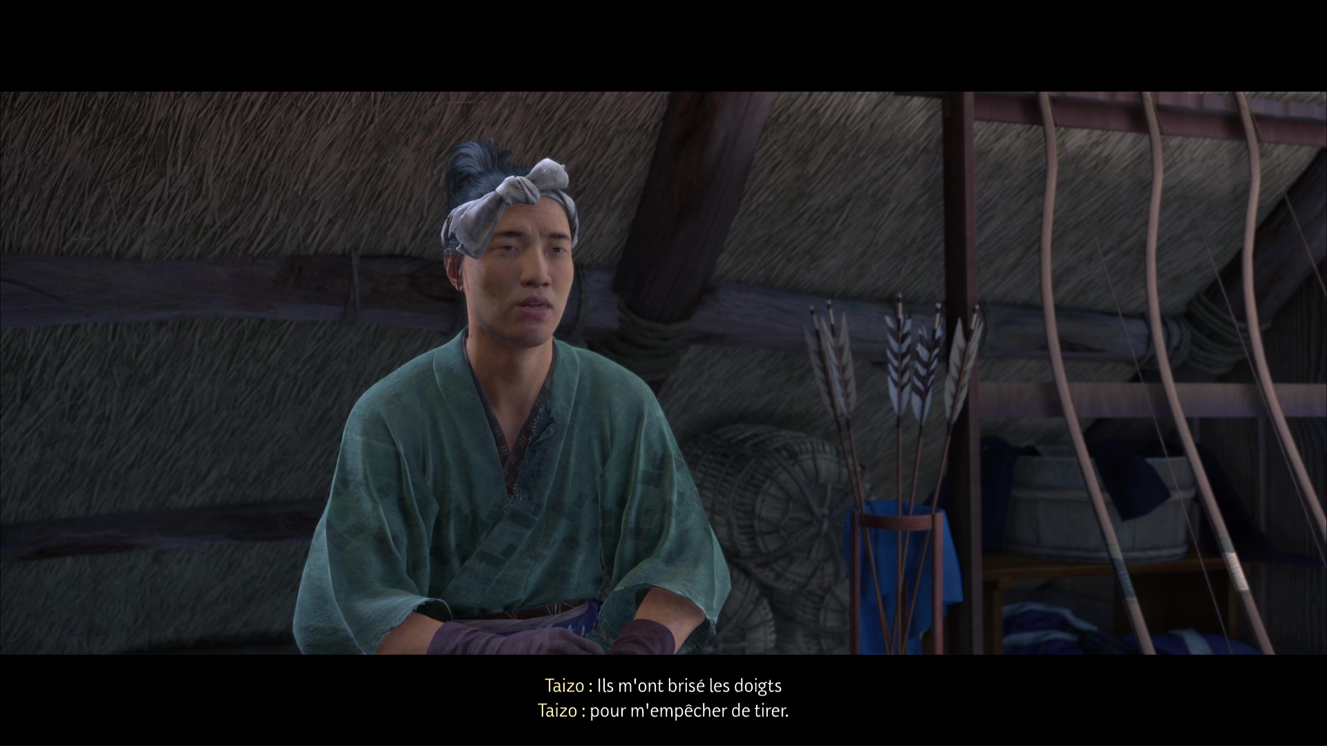 Il vous explique que les Neuf-Queues cherchent Ran. Elle est d’ailleurs bien consciente de cette traque et change régulièrement d’endroit pour leur filer entre les doigts. Le pauvre Taizo en fait un peu les frais et a les doigts brisés, l’empêchant de se défendre.