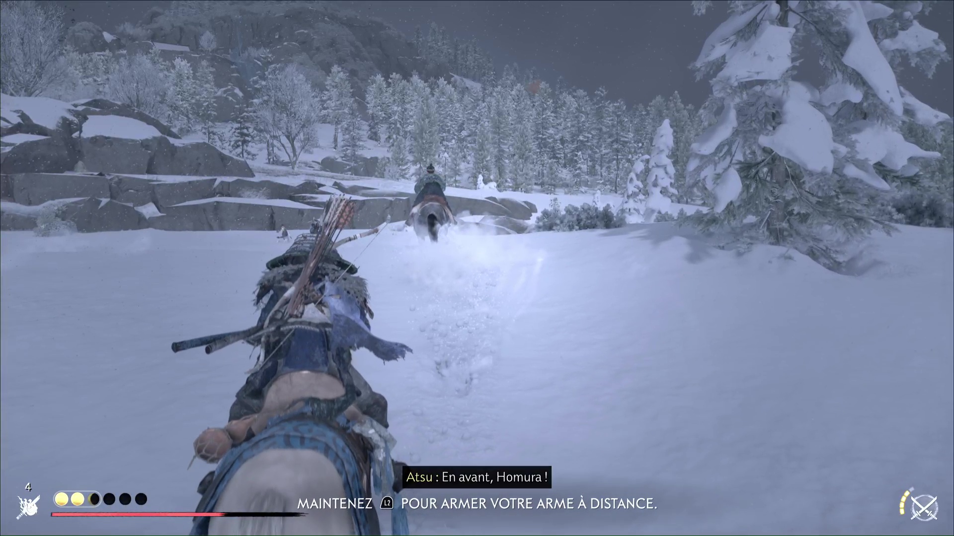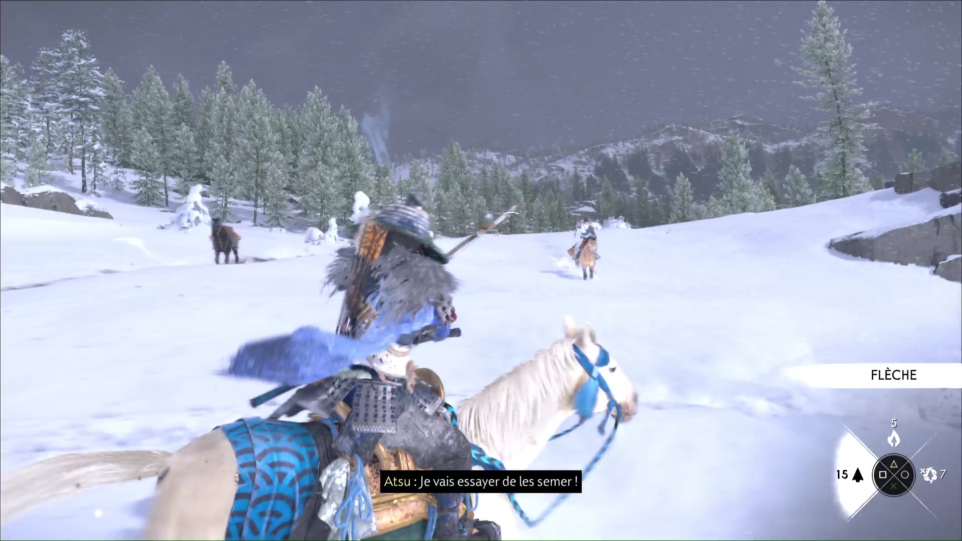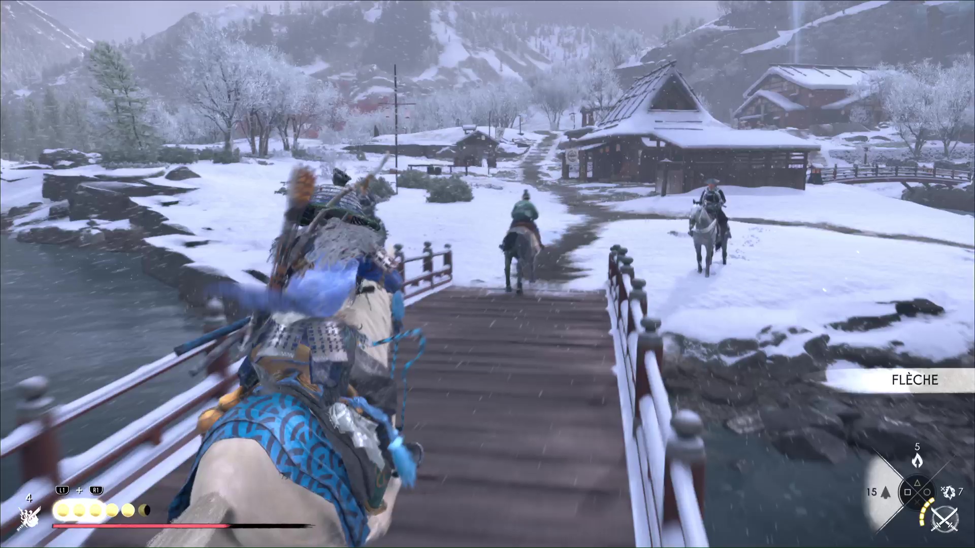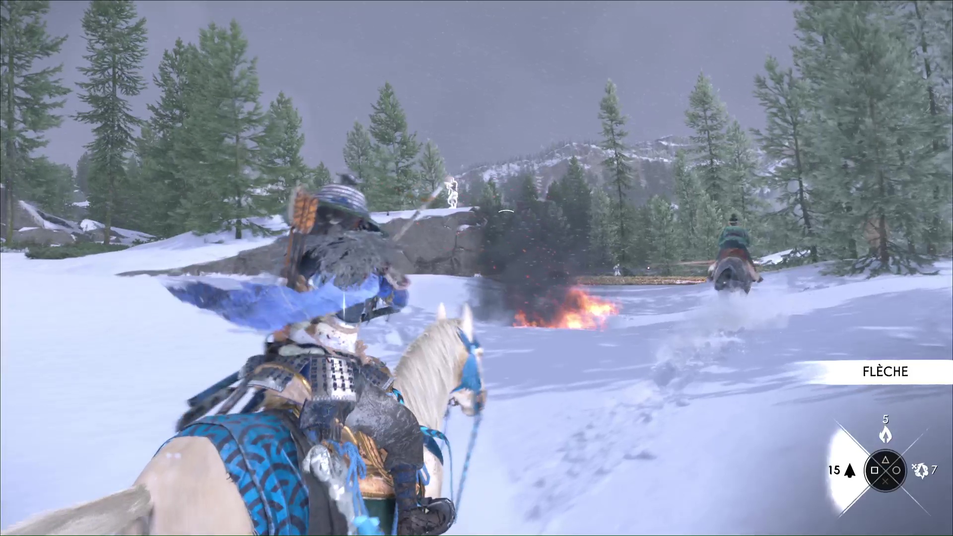 À partir de maintenant, et jusqu’à la fin du trajet à cheval, profitez du charme en tirant rapidement sur les ennemis que vous croiserez. Pensez aussi à éviter les zones embrasées pendant que vous galopez.