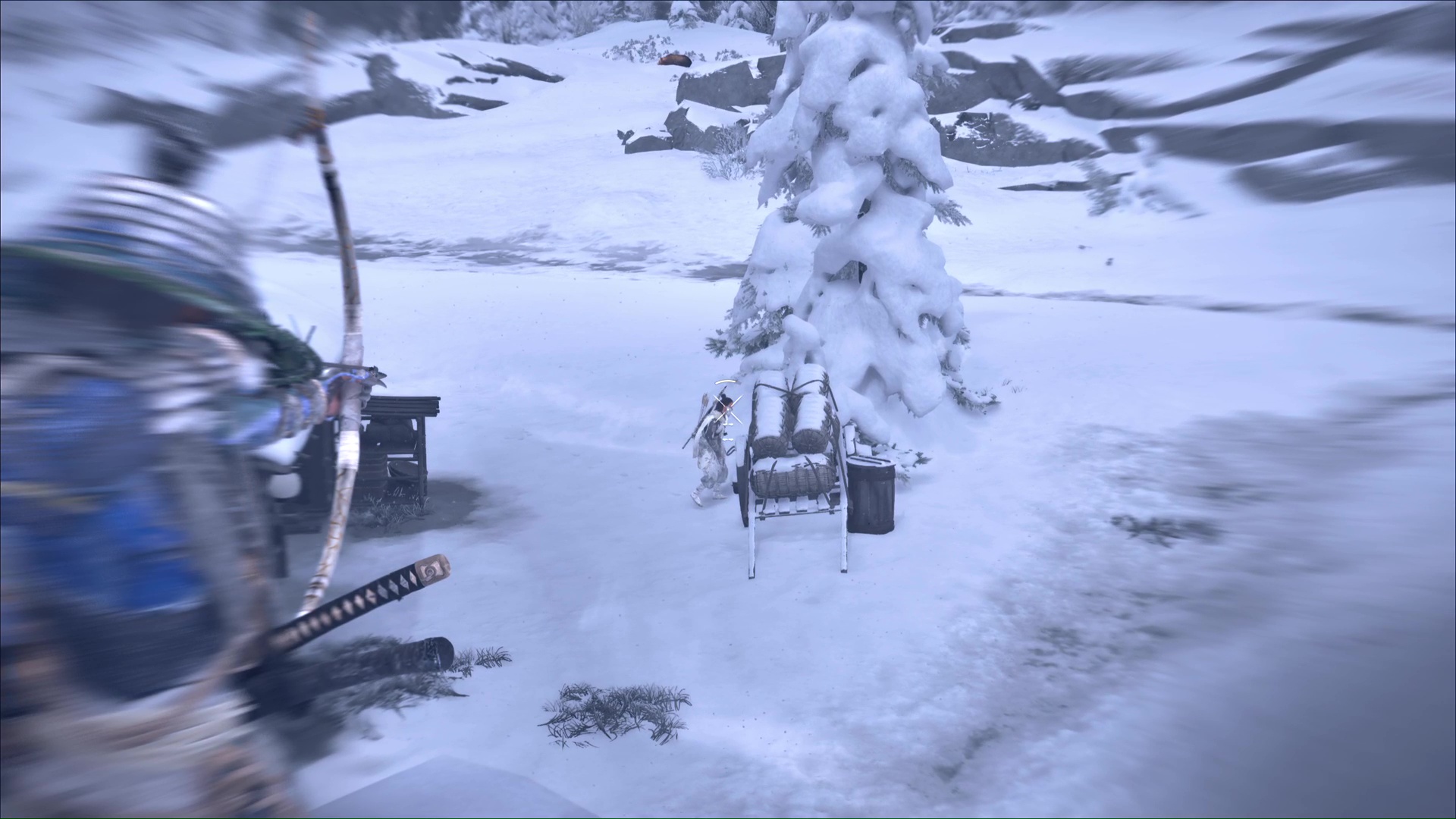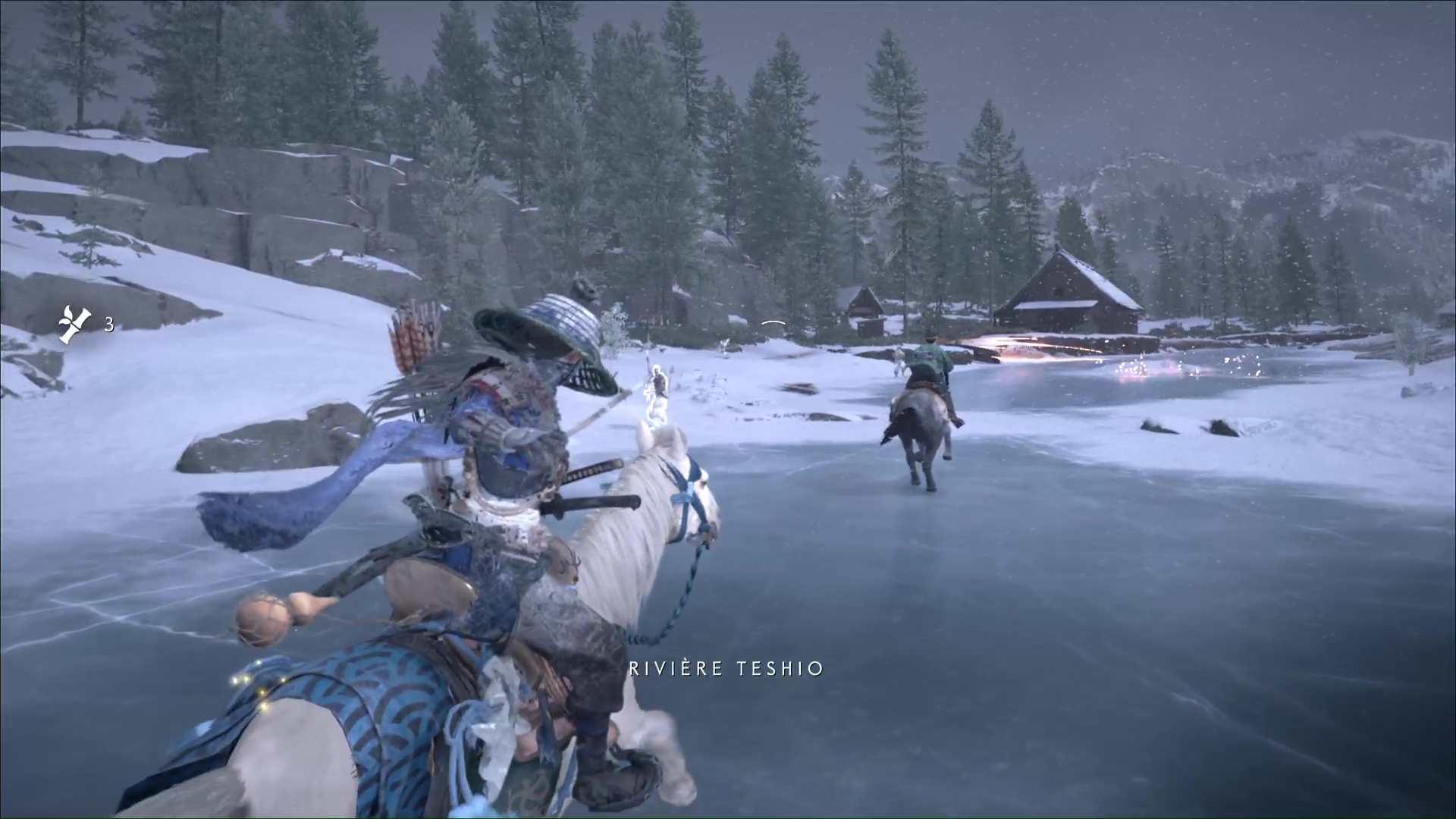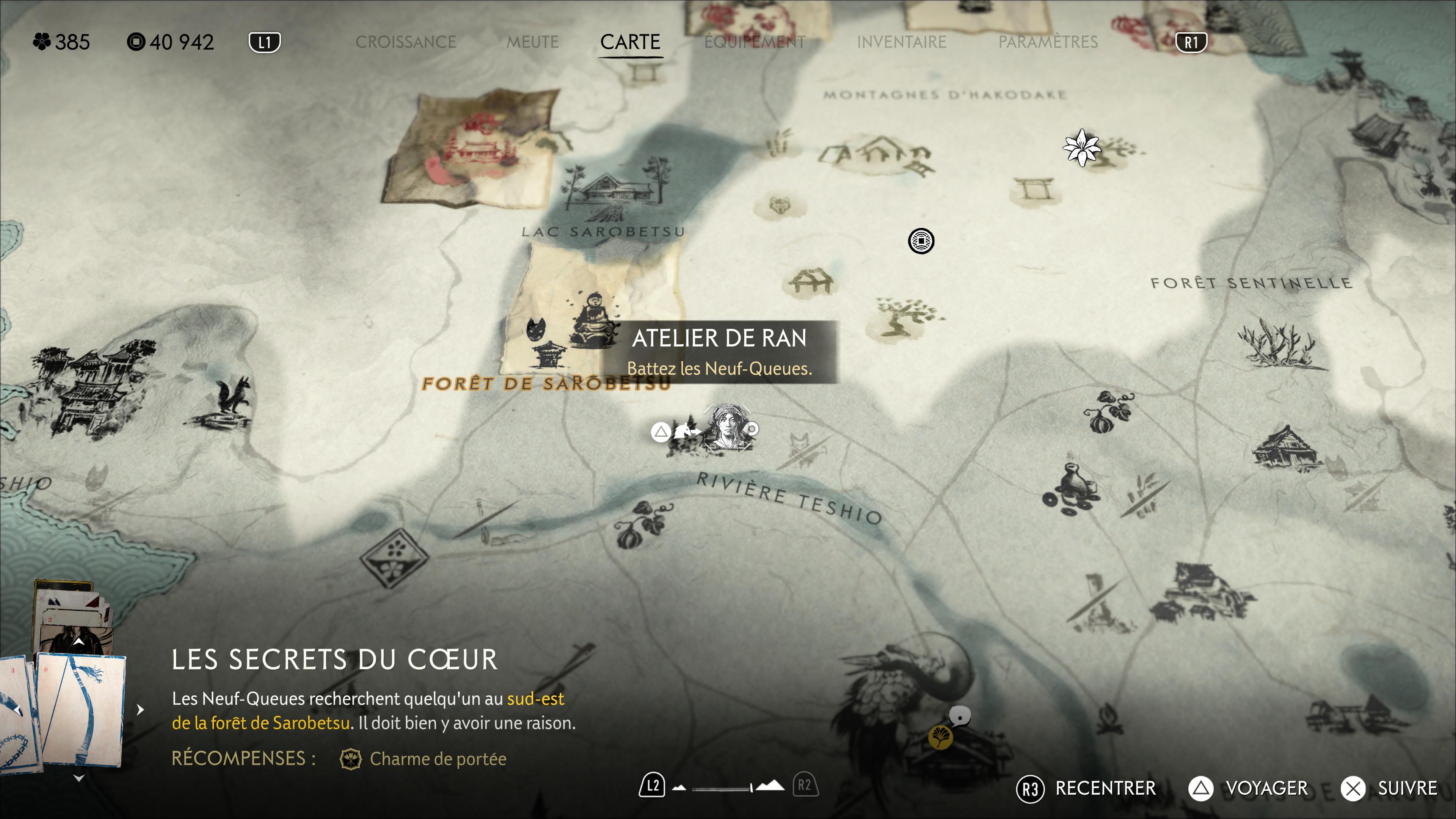 Entre la Rivière Teshio et la Forêt de Sarobetsu de la Crête de Teshio, un bâtiment est cerné par des Neuf-Queues, lesquels cherchent un certain Taizo. Ce bâtiment, c’est l’atelier de Ran, votre précieuse alliée qui vous vend et améliore de l’équipement lié à l’archerie.