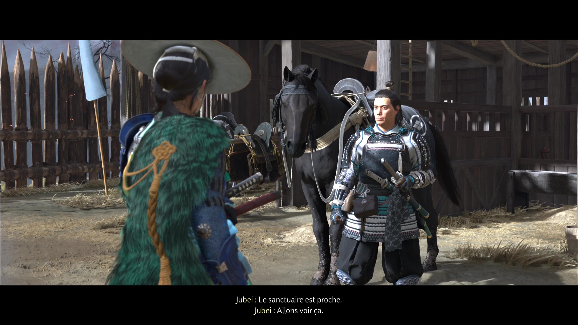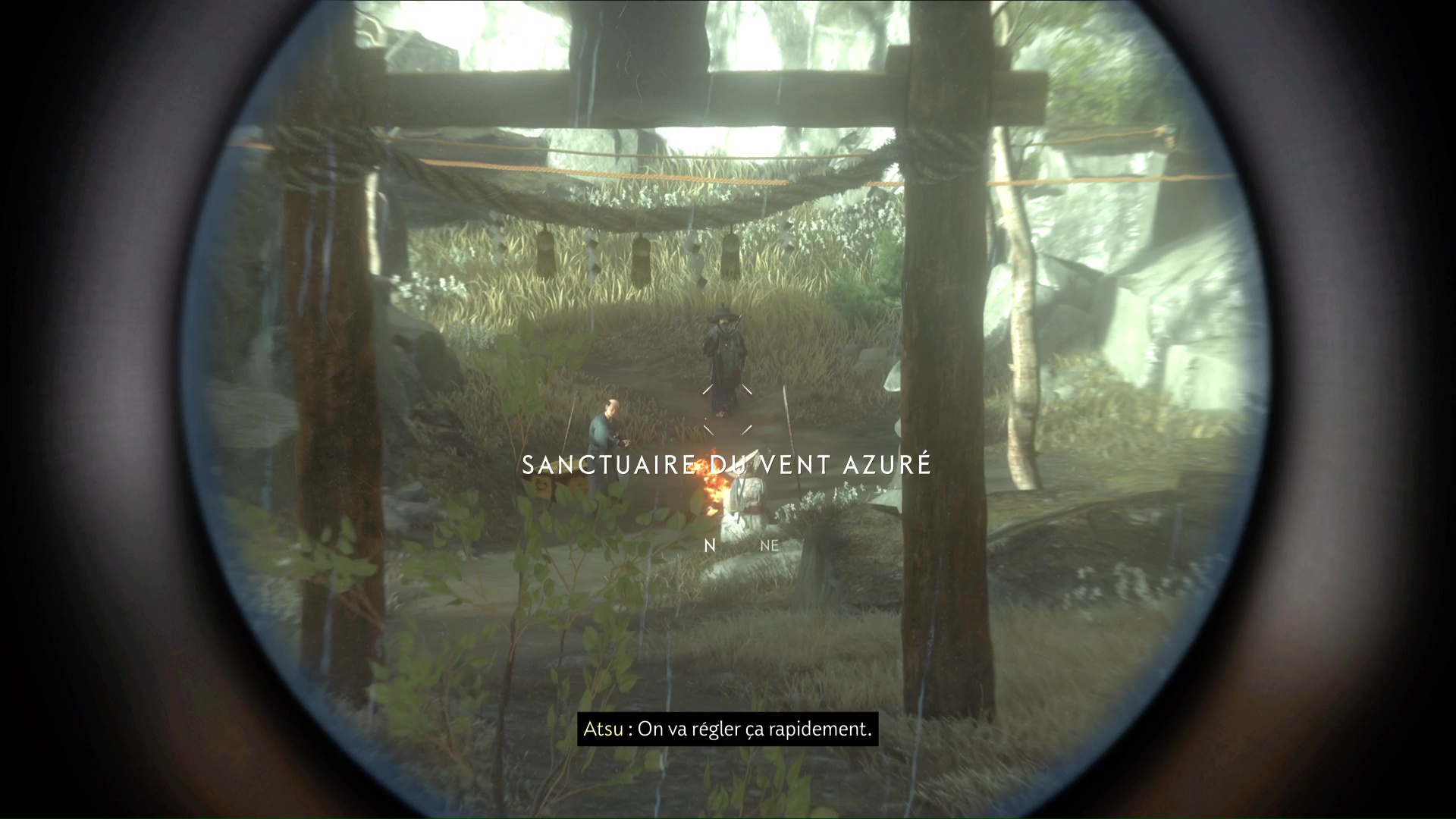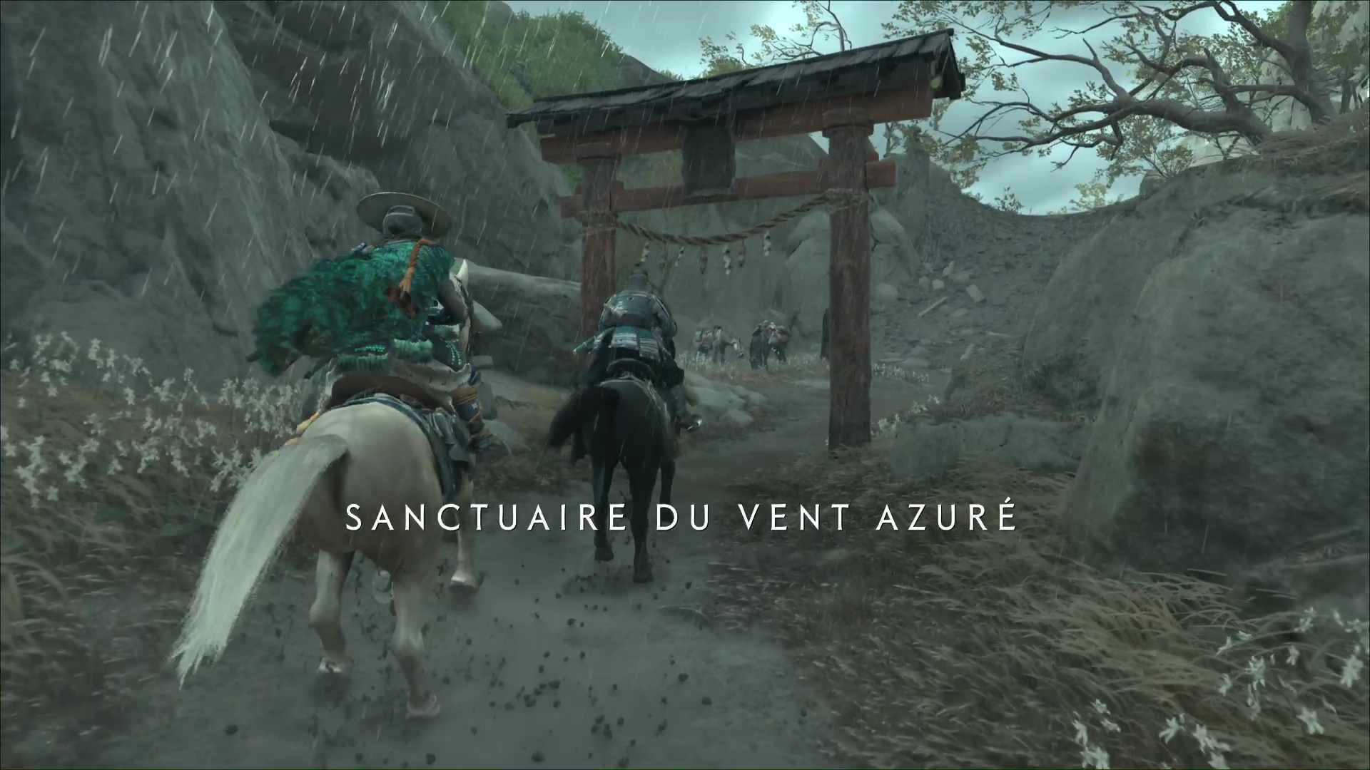 Vous voilà parti à cheval en direction du sanctuaire en question. Sur le trajet, assistez à une conversation entre les jumeaux, et notamment un mea-culpa de la part de Jubei. Au bout du trajet, vous arrivez au Sanctuaire du vent azuré.