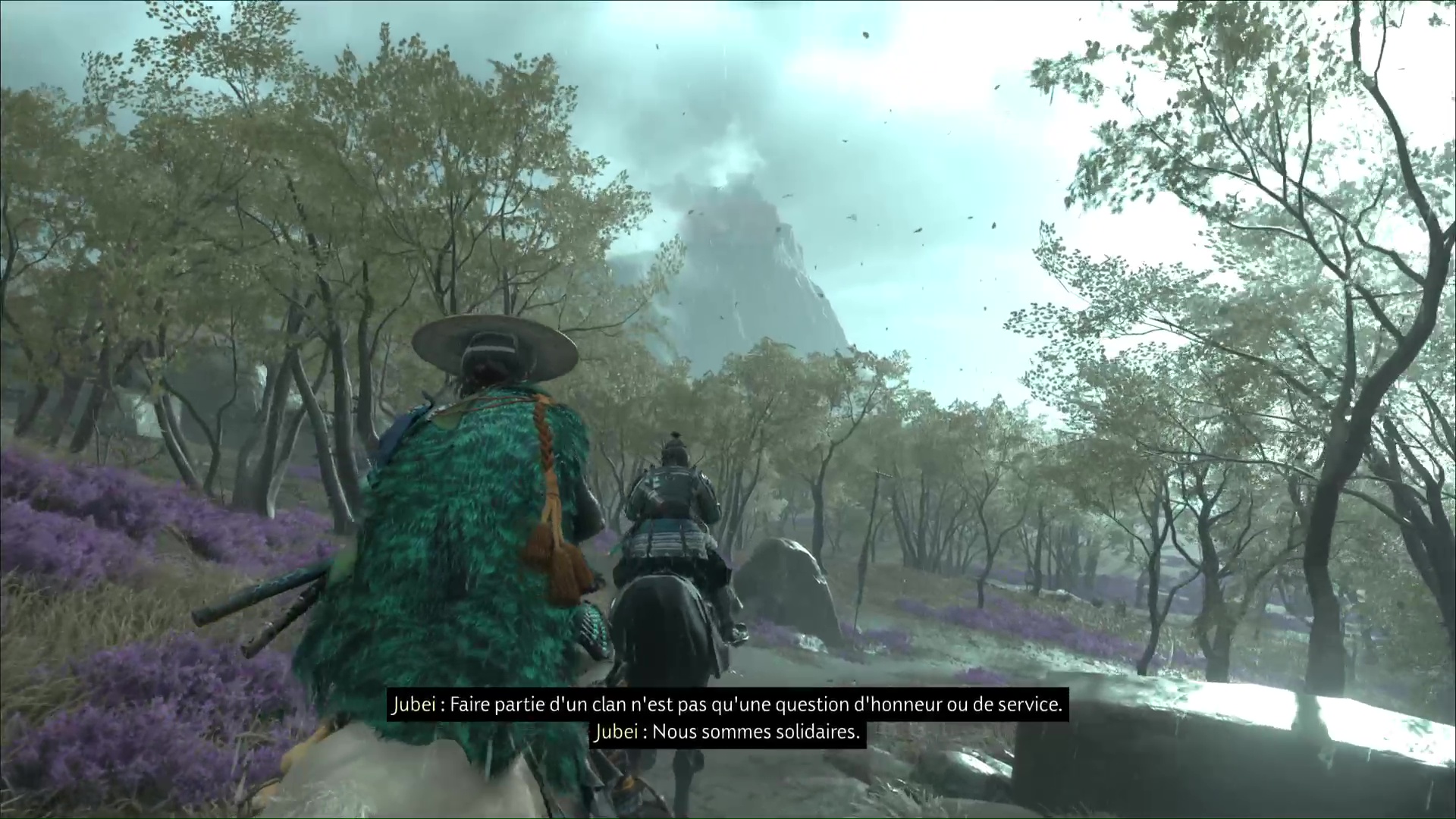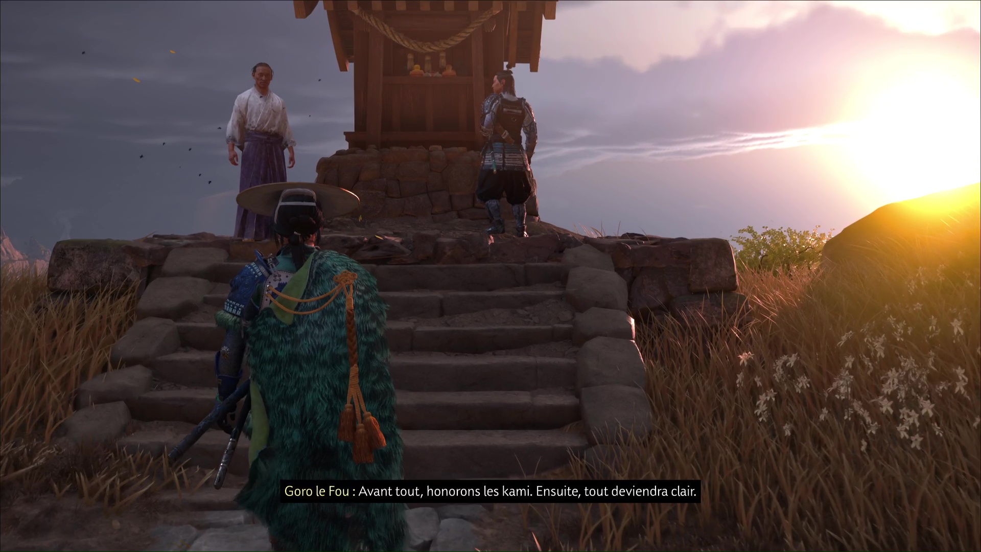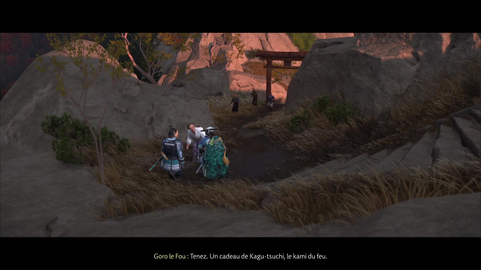 Vous voilà parti à cheval en direction du sanctuaire en question. Sur le trajet, assistez à une conversation entre les jumeaux, et notamment un mea-culpa de la part de Jubei. Au bout du trajet, vous arrivez au Sanctuaire du vent azuré.