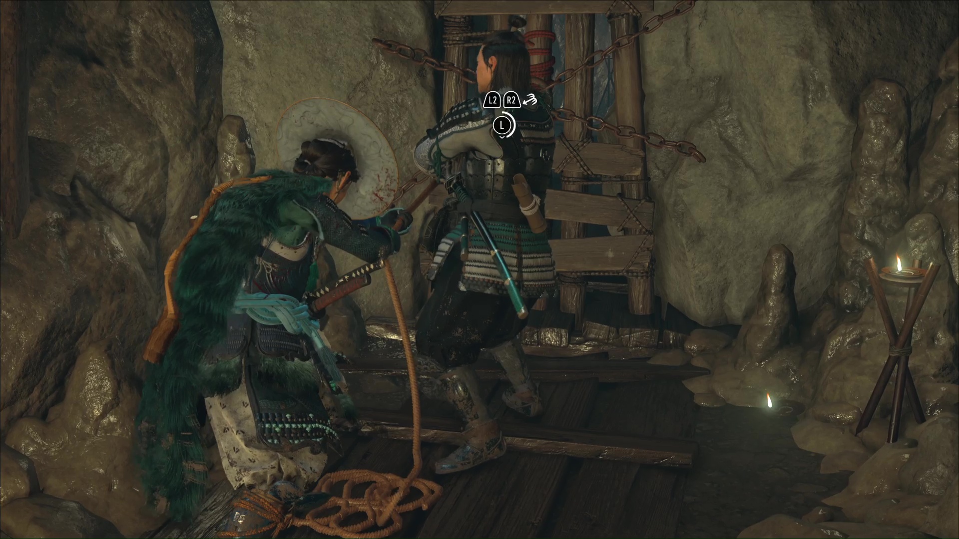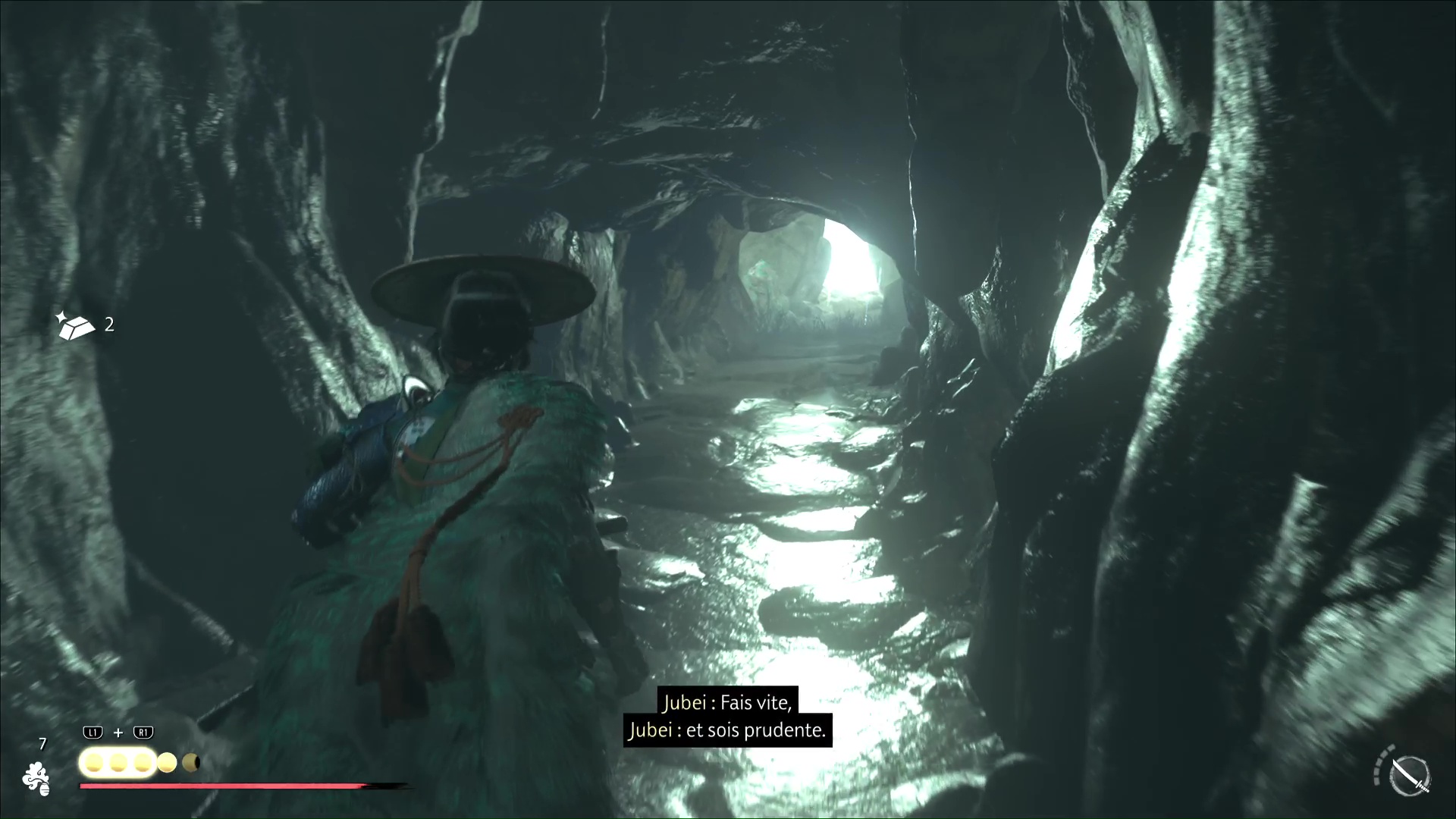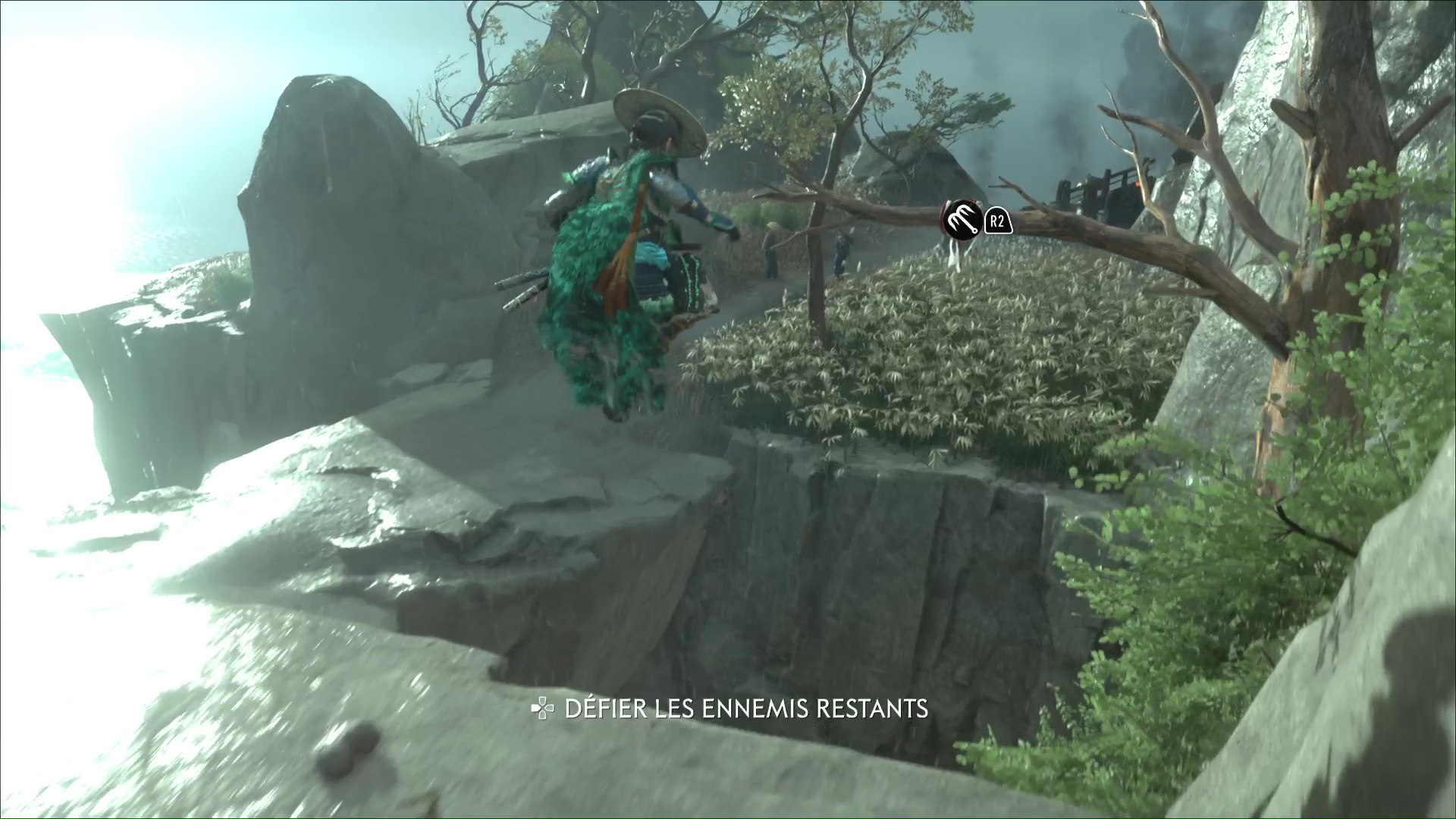 Jubei peut désormais vous rejoindre, et l’ascension peut reprendre. Suivez le chemin balisé et, rapidement, vous serez freiné par une barrière. Grâce à Jubei et votre grappin, tirez dessus pour vous libérer un passage. Continuez à progresser avant que le pont ne cède à votre passage.