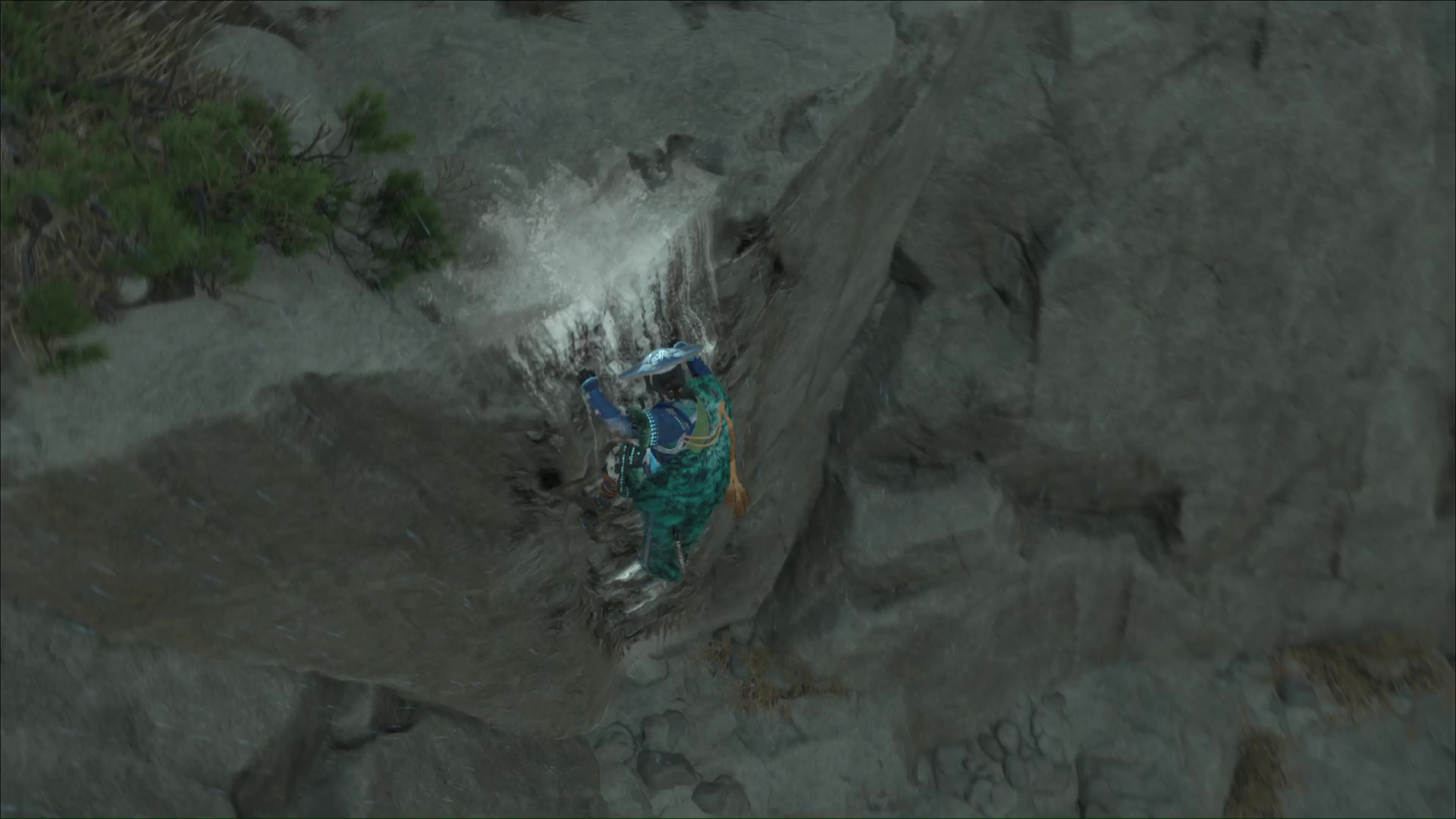 Faites un peu de grimpette pour arriver à une nouvelle branche à laquelle vous accrocher au grappin. Ne sautez pas immédiatement après le premier balancement et attendez d’ajuster la caméra, sinon il y a de grandes chances que vous finissiez dans le vide. Une fois rattrapé sur la paroi rocheuse, hissez-vous jusqu’en haut.