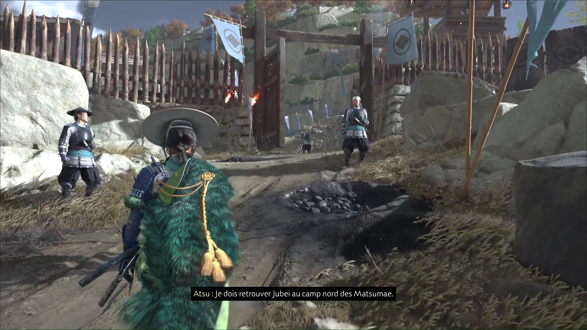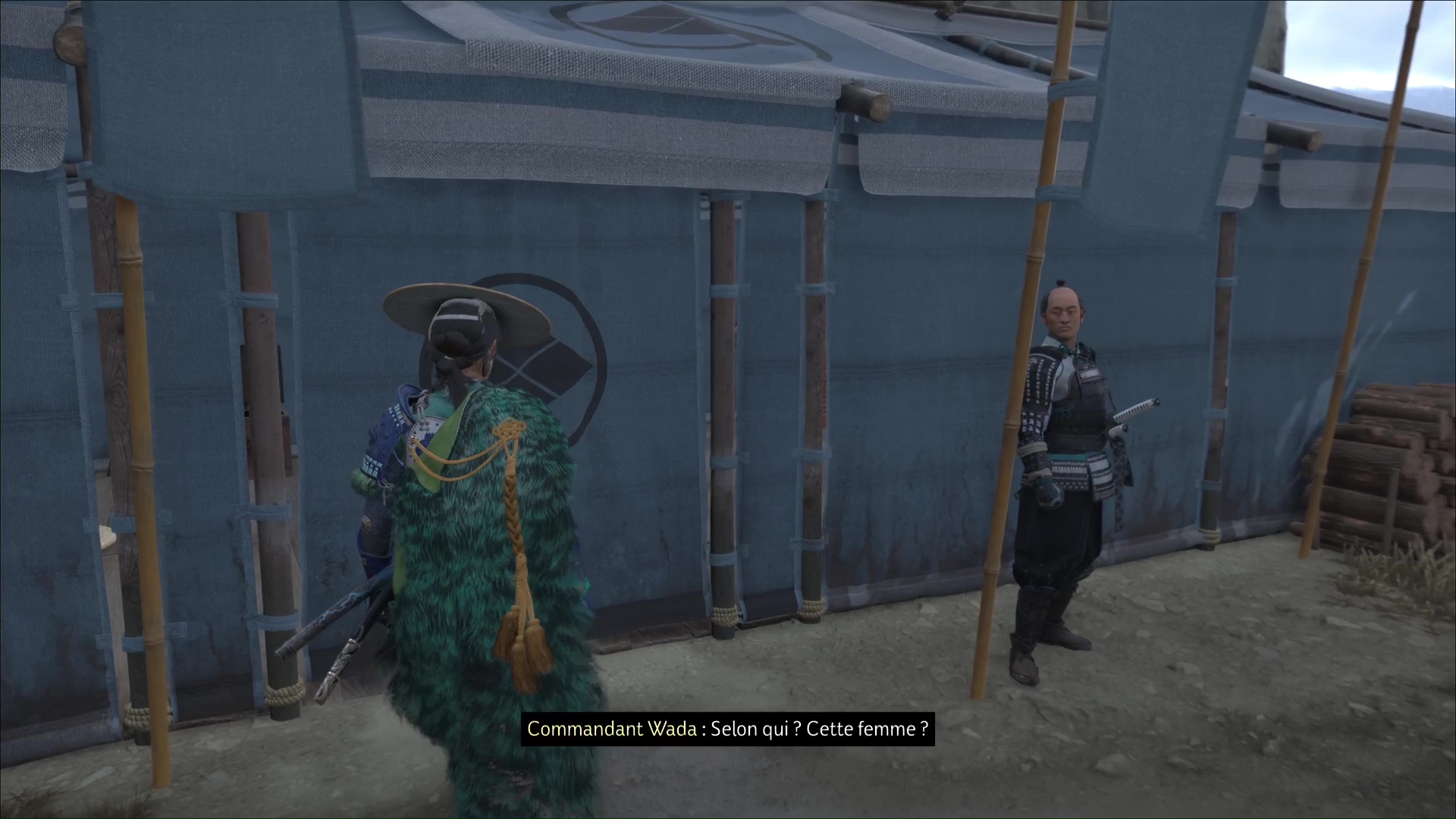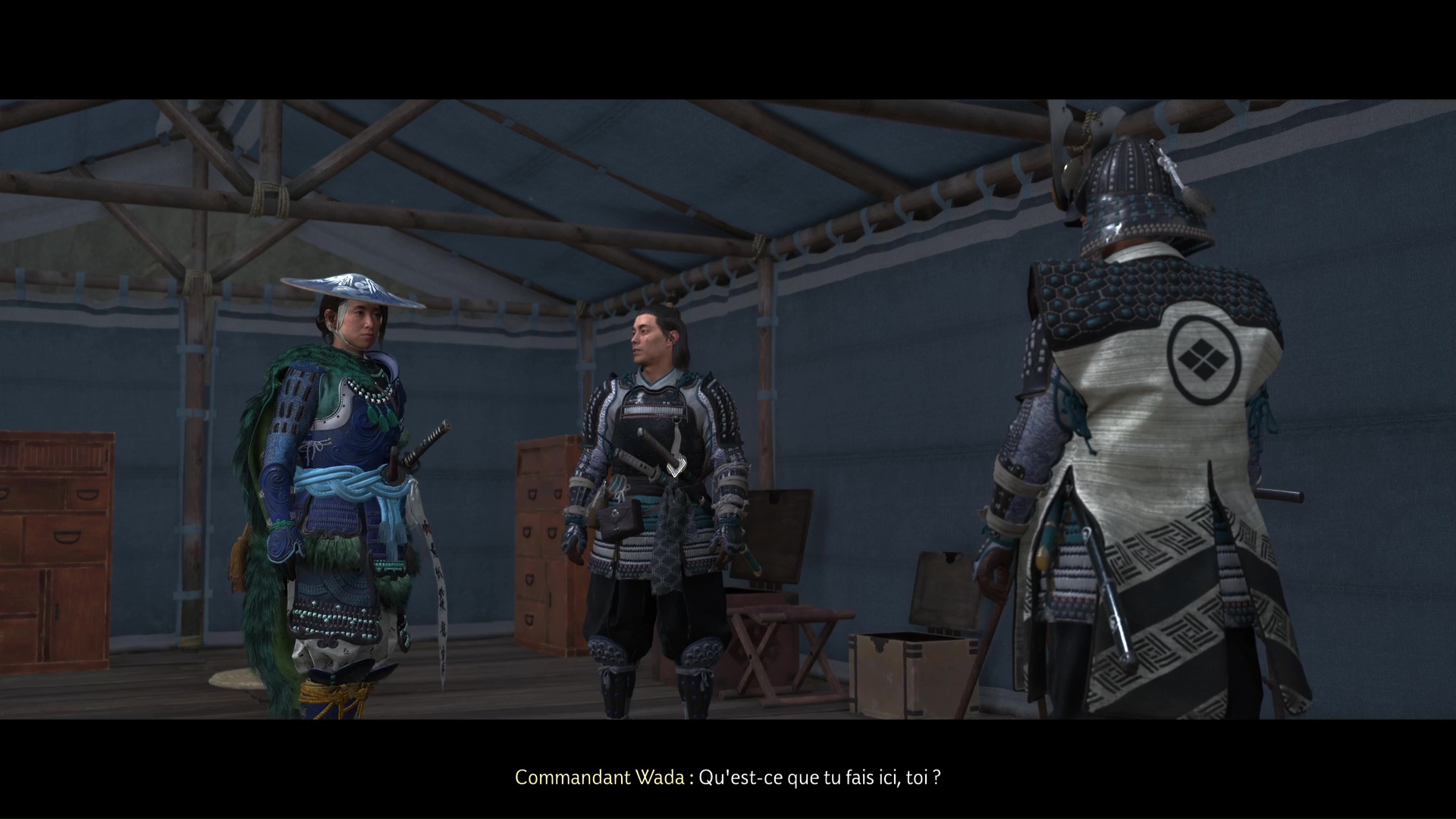 Et pour ce faire, direction le Camp des Matsumae au nord de la région. Et sur place, rejoignez la tente du commandant Wada, où il discute avec Jubei.