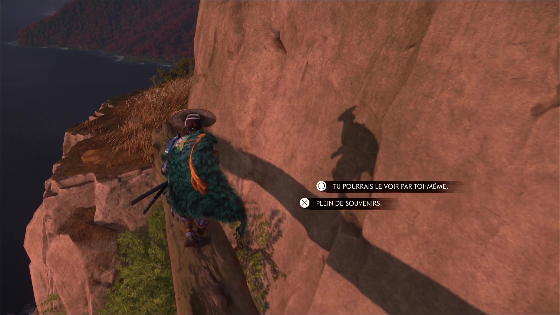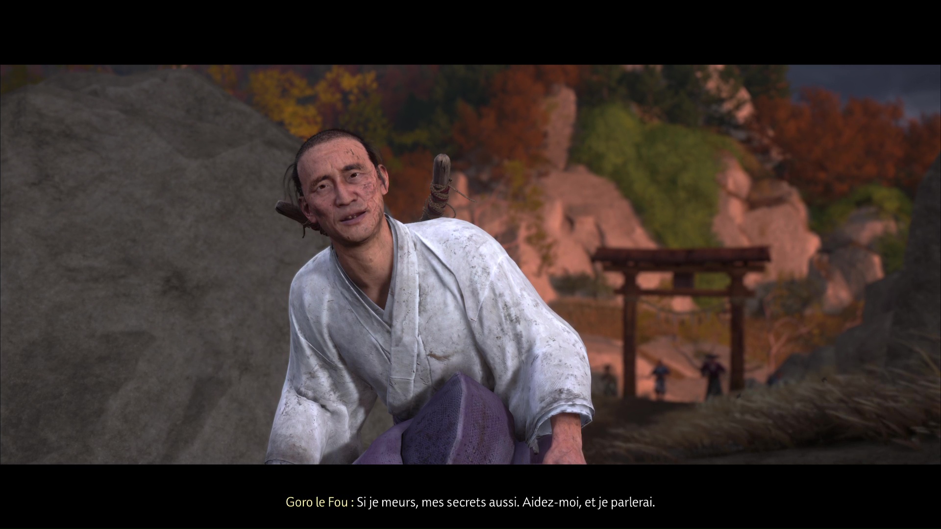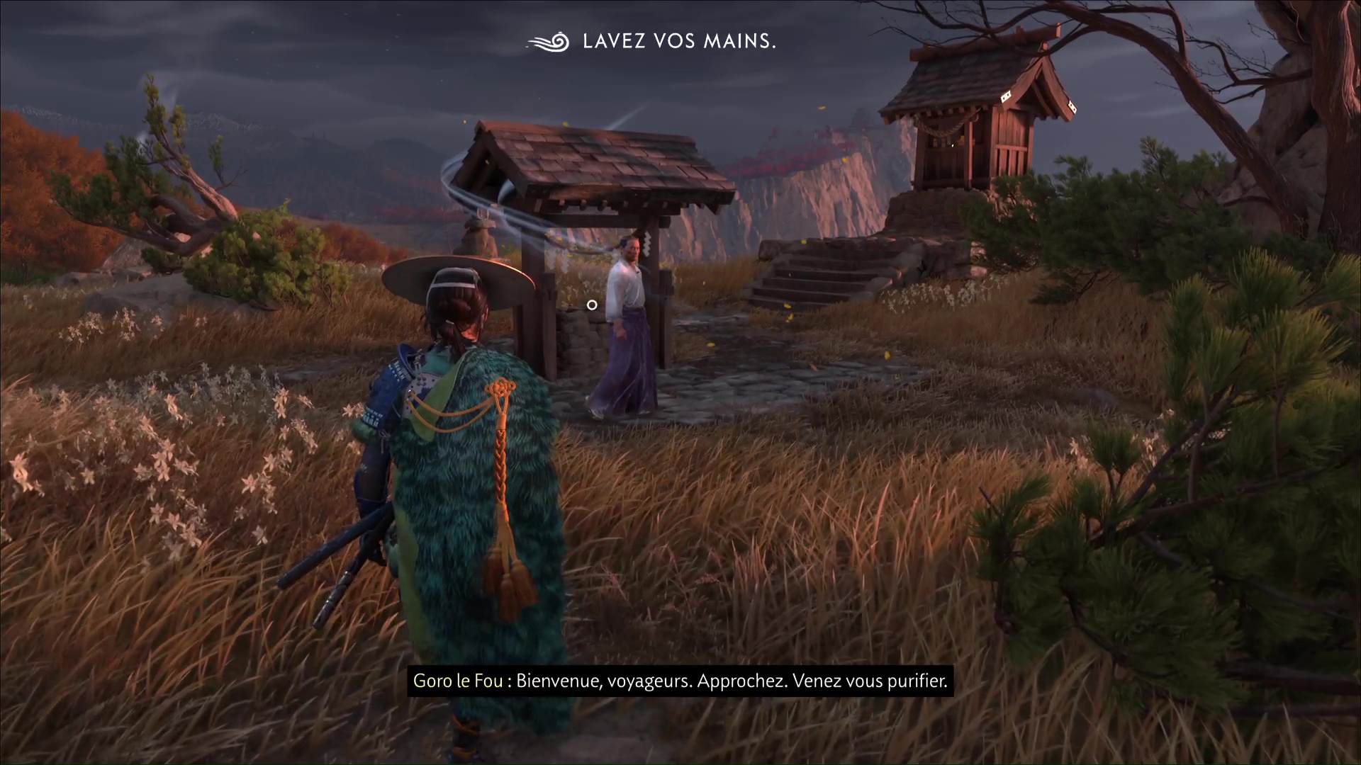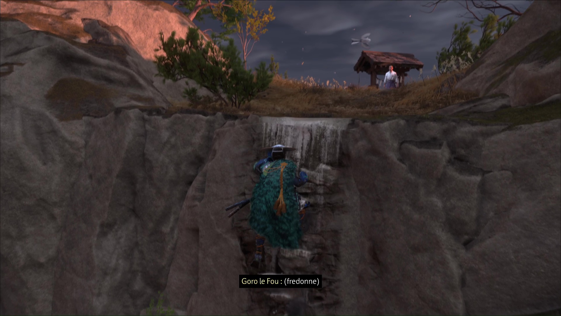 Sautez sur une dernière branche et hissez-vous grâce à d’ultimes prises rocheuses pour arriver auprès de Goro le Fou. Celui-ci vous invite à vous purifier.