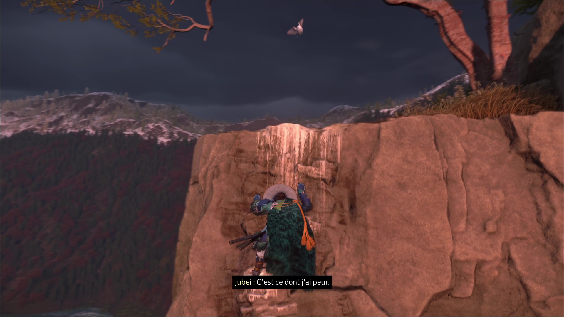 À présent, marchez sur un arbre mort afin de refaire un peu d’escalade et rejoindre enfin Jubei. De là, vous pouvez voir le château de l’Oni, et une conversation se lance. Les jumeaux se remémorent à nouveau leurs souvenirs d’enfance, et comment ils les ont construits par la suite.