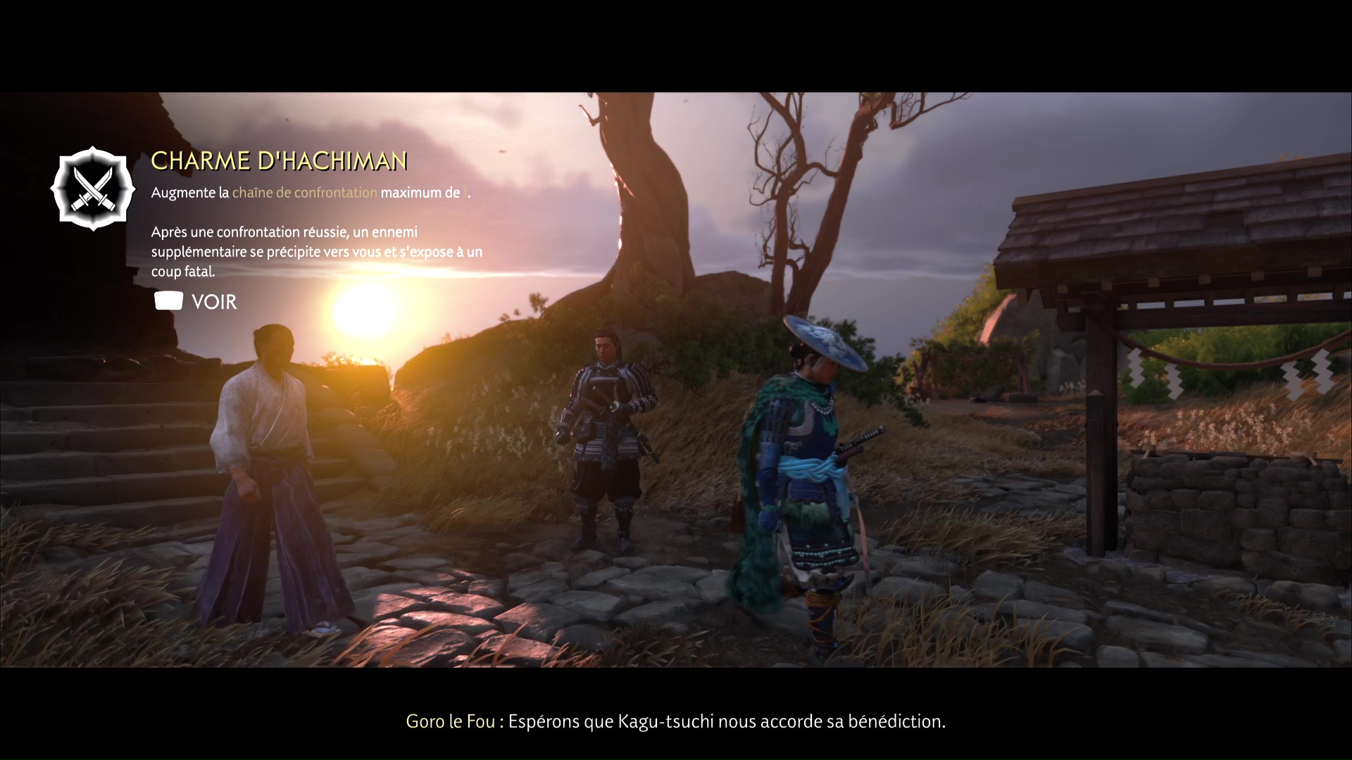Lavez vos mains au puits puis montez les marches jusqu’au sanctuaire pour prier. Après ce petit moment de méditation, vous récupérez le Charme d’Hachiman, qui augmente de 1 la chaîne de Confrontation.