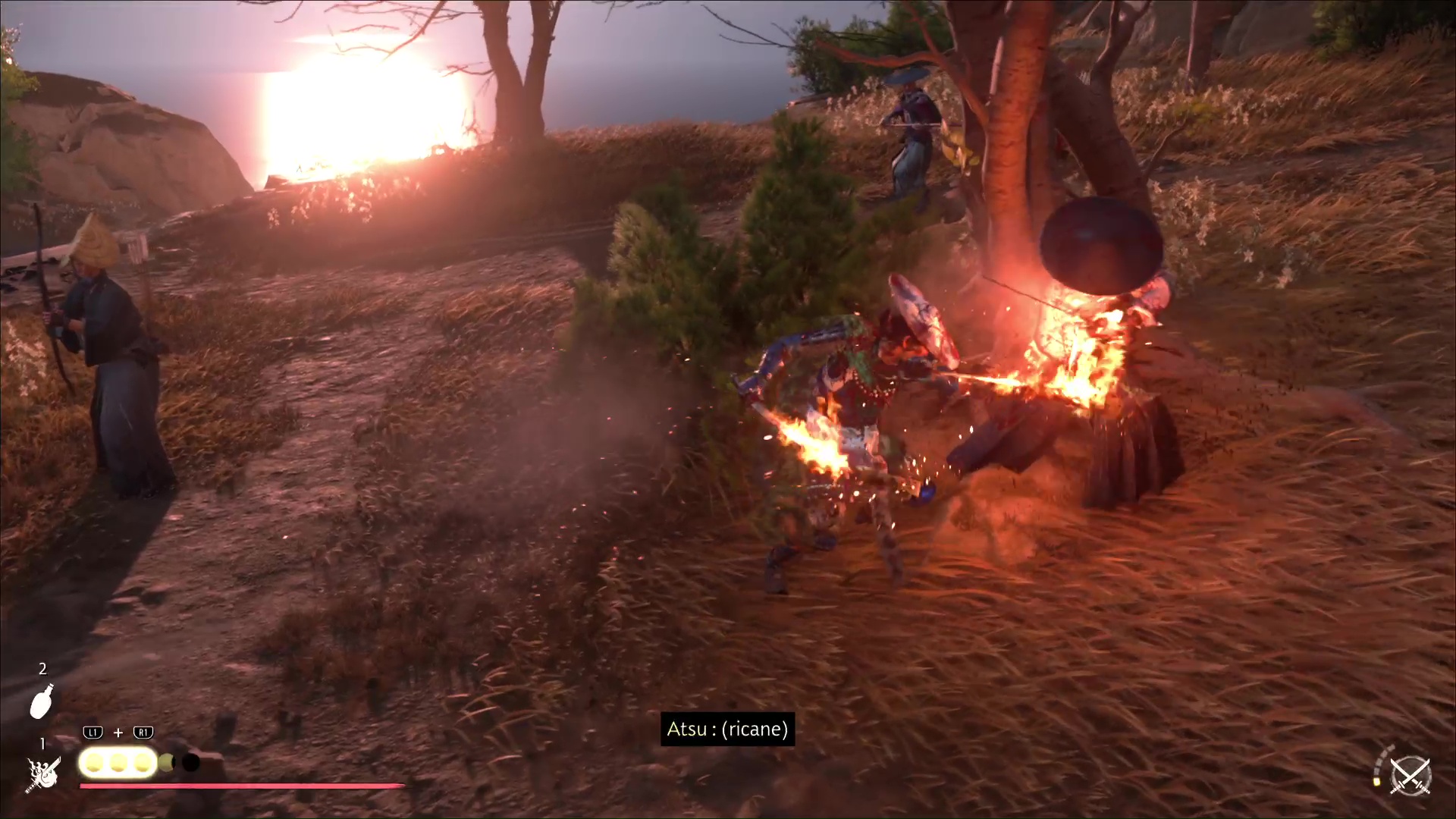 Soudain, d’autres chasseurs de primes viennent pour Goro. Vu l’importance qu’il revêt au vu des informations qu’il possède, Atsu et Jubei vont évidemment devoir le protéger. Goro a toutefois un petit cadeau pour vous : la Flamme de l’Oni. Il s’agit d’une arme à action rapide qui, une fois activée, enflamme votre arme, quelle qu’elle soit.