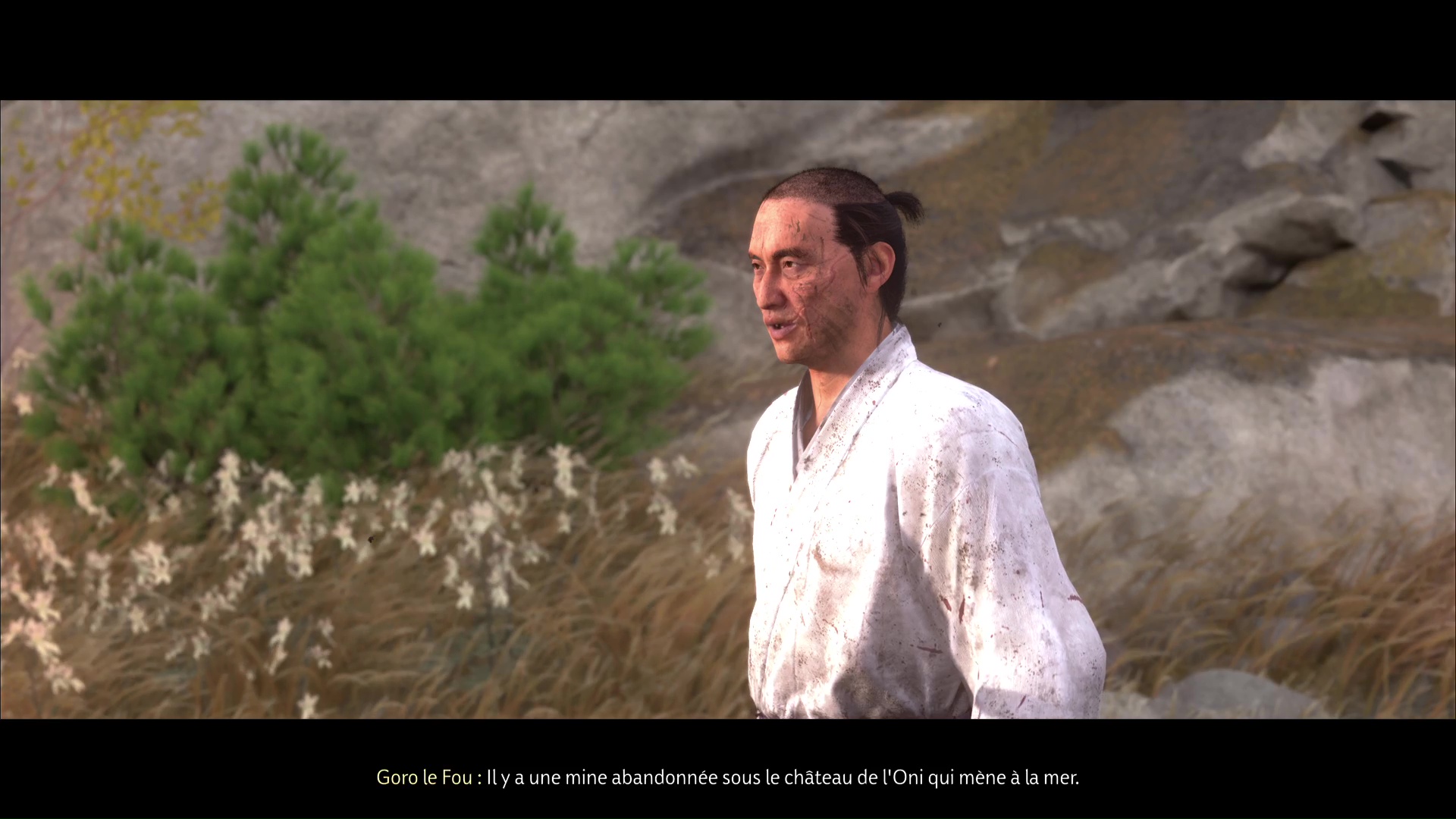 Goro tentera ensuite de vous quitter avant que vous lui rappeliez l’accord passé plus tôt. Goro vous informe donc qu’il y a une mine abandonnée permettant de rejoindre le château. Le bougre vous quitte, et Jubei vous donne rendez-vous au bateau abandonné par Goro. « Le conte de l’Oni » vous attend.