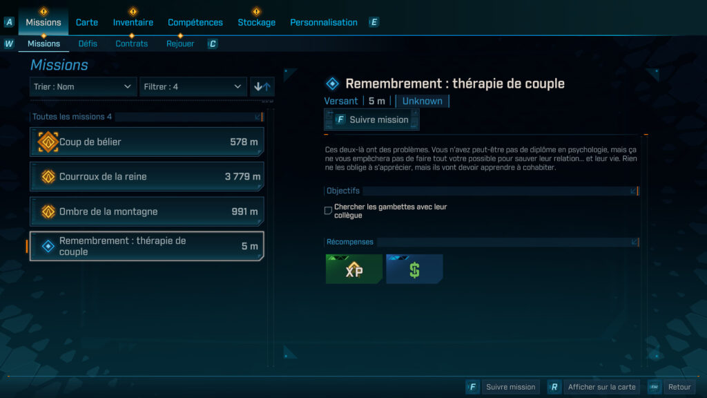 - Pré-requis : Terminer les missions secondaires « Où sont mes gambettes ? », « Remembrement » et « Remembrement : Encore »