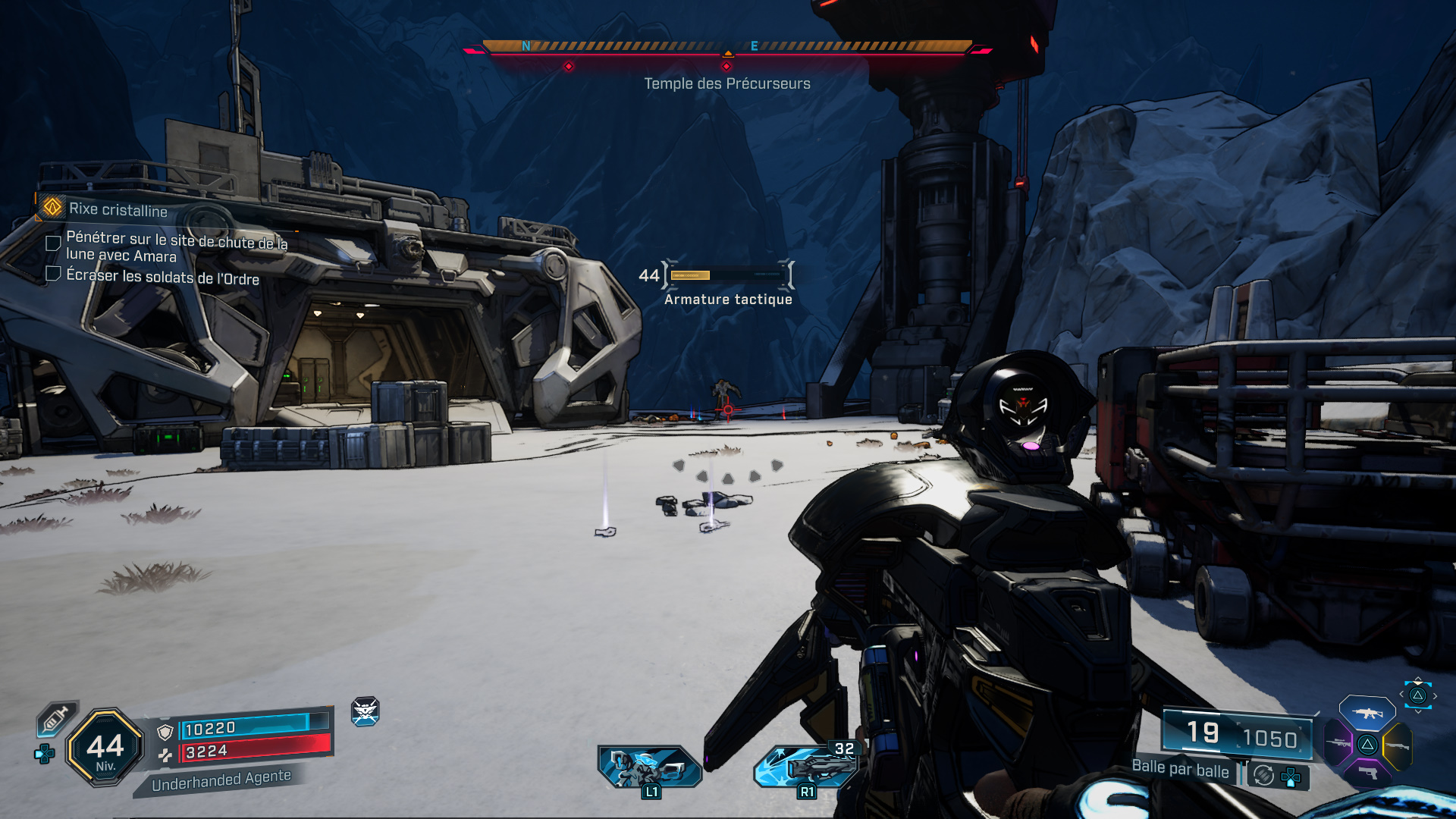 Suivez-la à l’intérieur du vaisseau, ou du moins ce qu’il en reste, pour qu’elle vous donne alors rendez-vous sur le site de la chute de la lune, au nord-est de votre position. Suivez donc votre boussole au fur et à mesure du trajet pour finalement retrouver Amara et vous rendre sur le site de chute de la lune avec elle. Non sans avoir à vous débarrasser de nombreux soldats de l’Ordre en arrivant au Temple des Précurseurs.